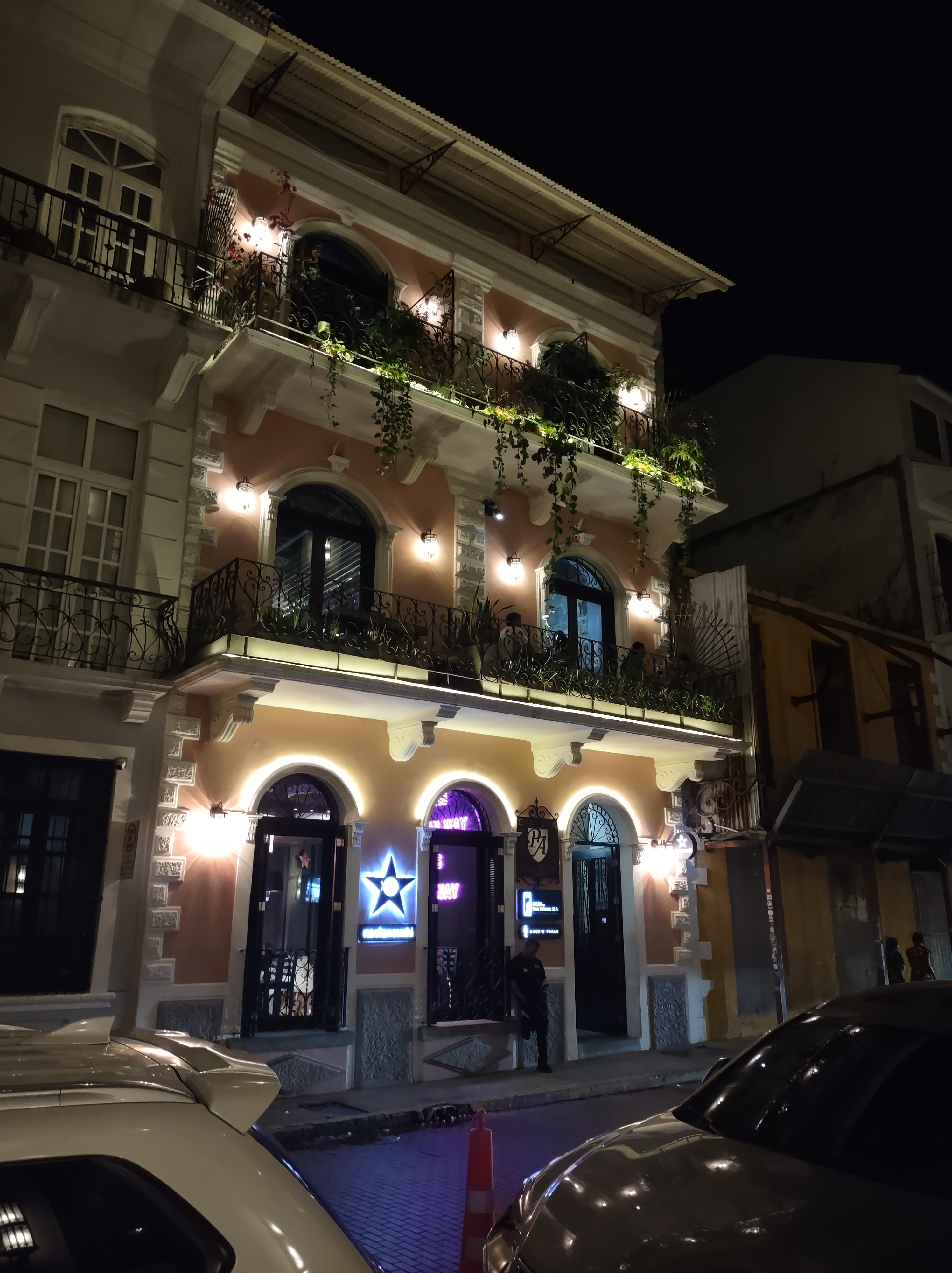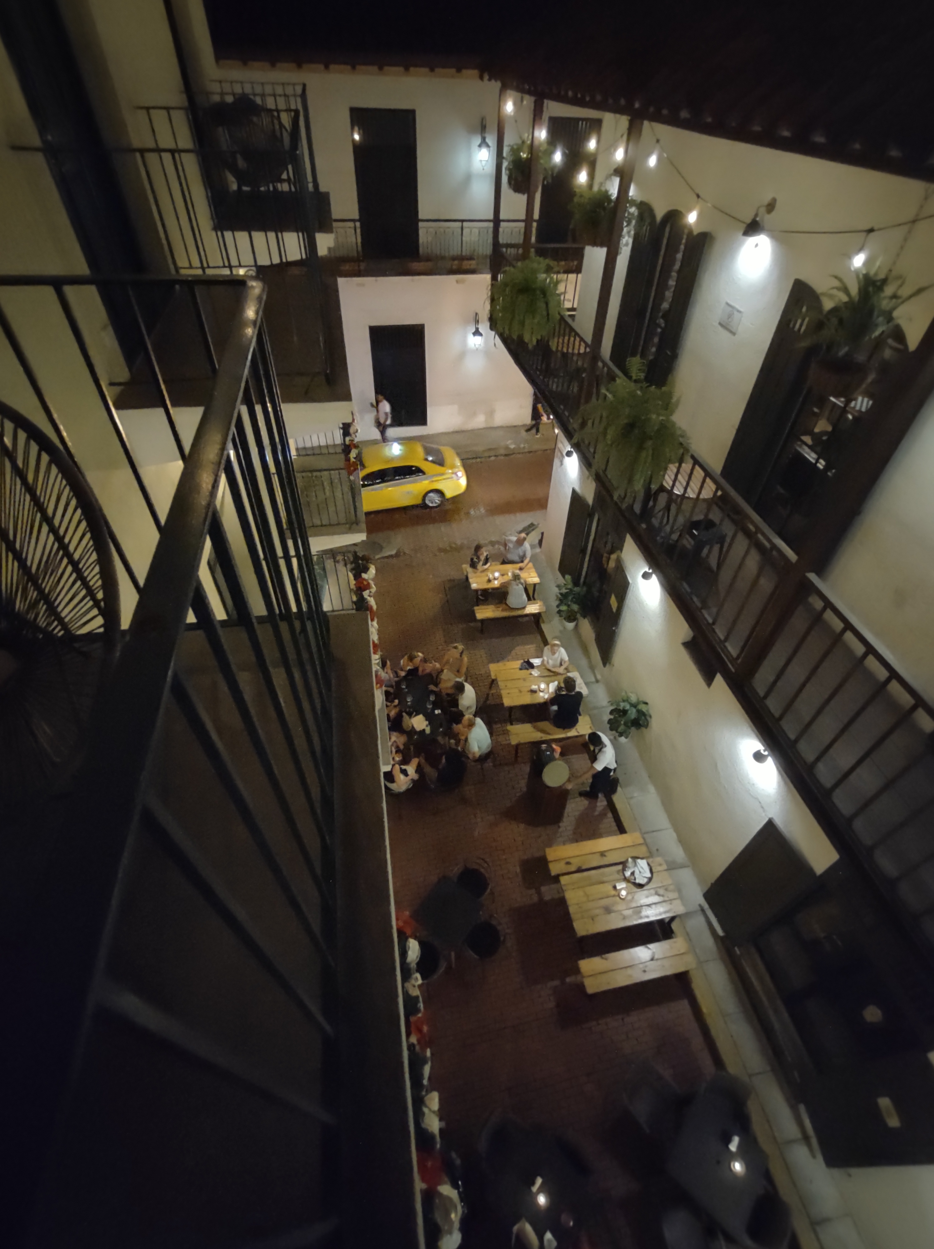 We stayed in a place in Casco Viejo, the old historic district. Ritchard was thrilled to find that our place was directly across an alley (Caye Boquette) from La Rana Dorada (the Golden Frog) brew pub which he had targeted to visit. Even better, at night Caye Boquette was turned into a beer garden which our room overlooked!