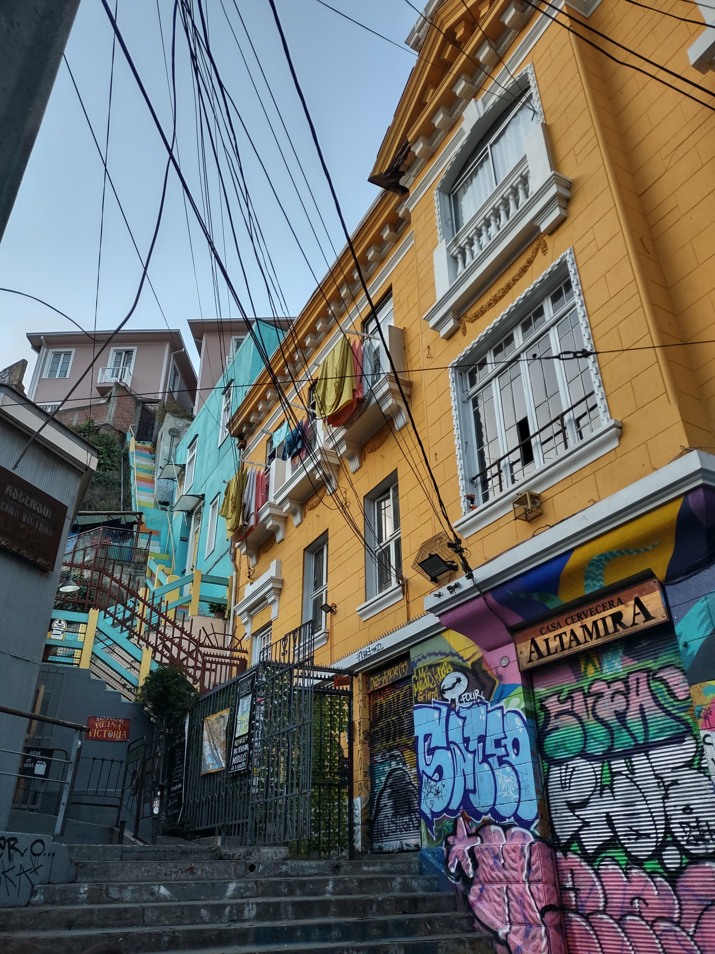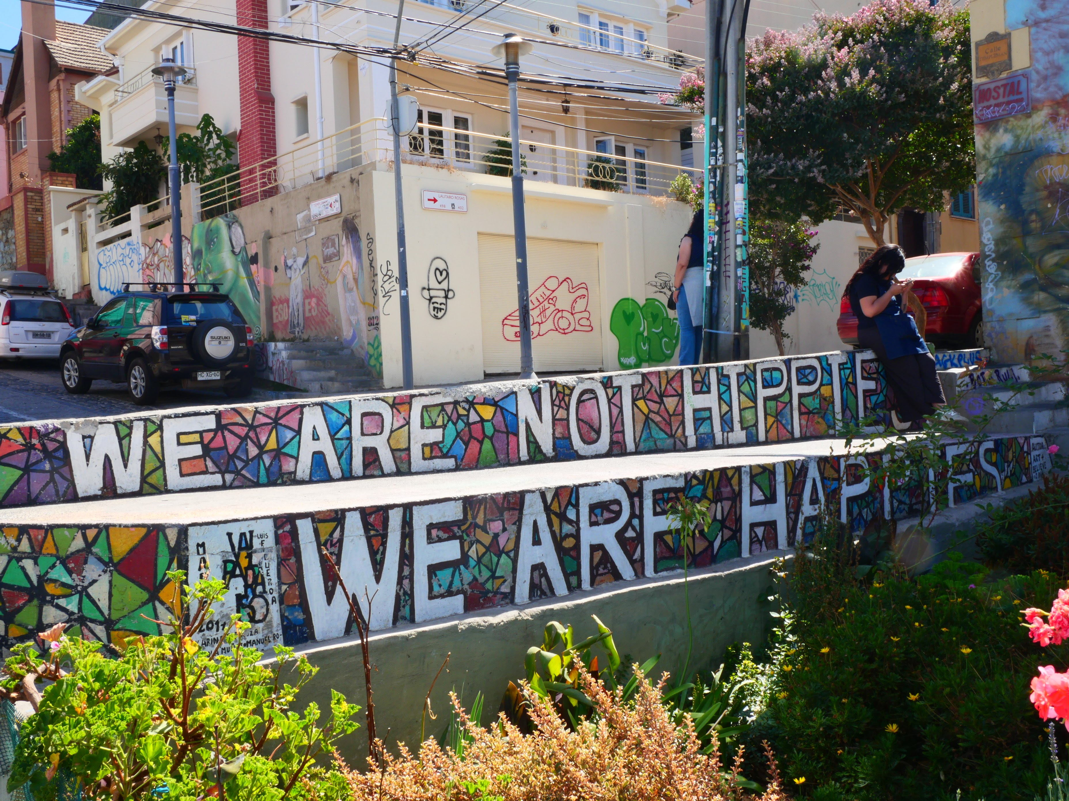 Valparaiso is a city of about 300,000 (1,000,000 in the metropolitan area) 1-1/2 hours west of Santiago on the Pacific coast of Chile. While it has a reputation for being a fairly dangerous city, we found it to be incredibly welcoming and friendly for the most part (there are some areas to avoid).