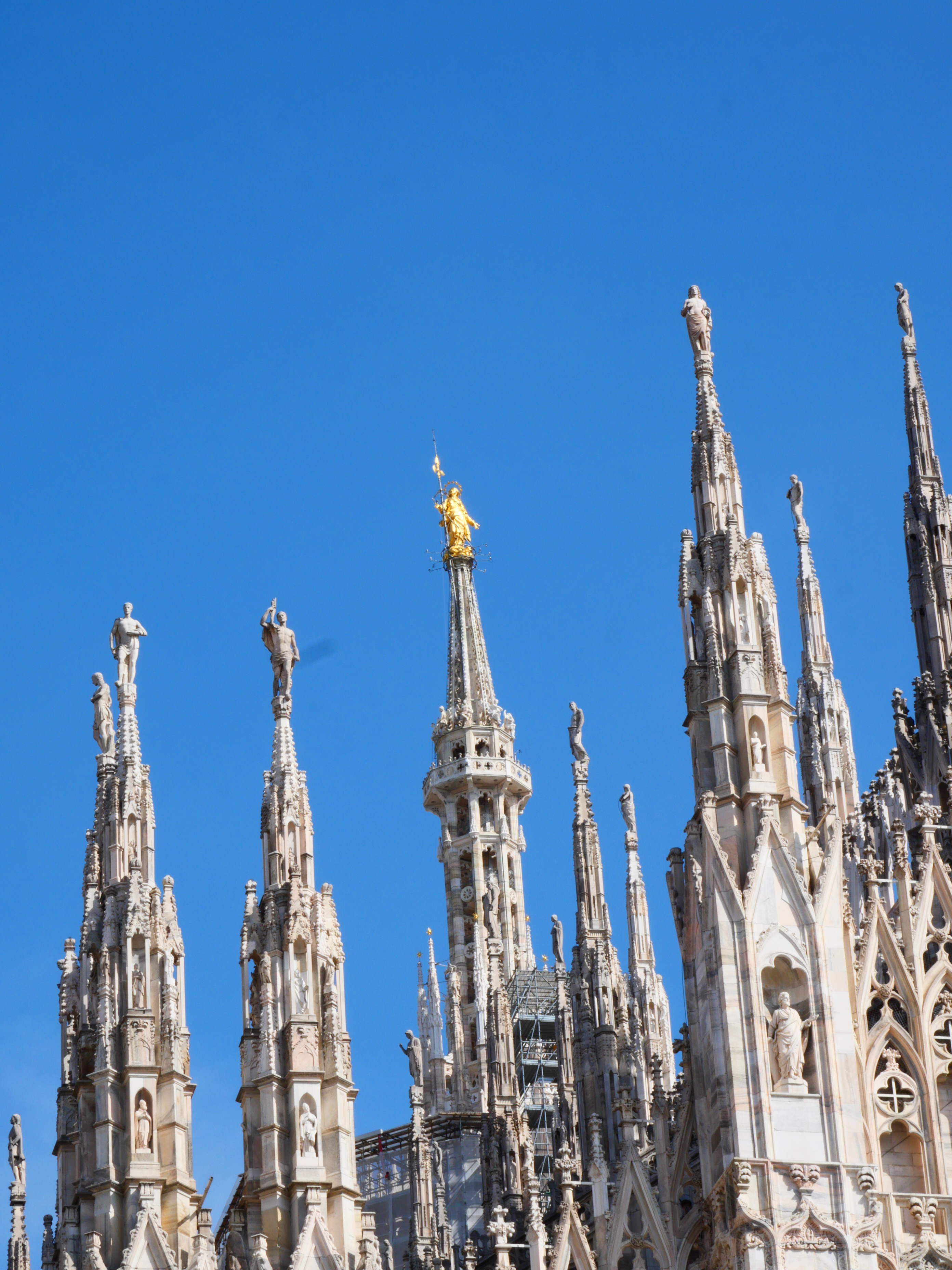 Chief of these is Milan’s cathedral, the Duomo, an enormous gothic style church which dominates the square with its presence.  It is one of the largest catholic churches in the world, seating 40,000 and it and its construction, begun in 1386, took nearly six centuries to complete.  Not only is it huge, but it is also probably one of the most ornate and opulent churches you will ever see. (Don’t know how to fact check this, but pretty sure it has more spires than any other church in the world, and everyone one of them has a statue on top!)