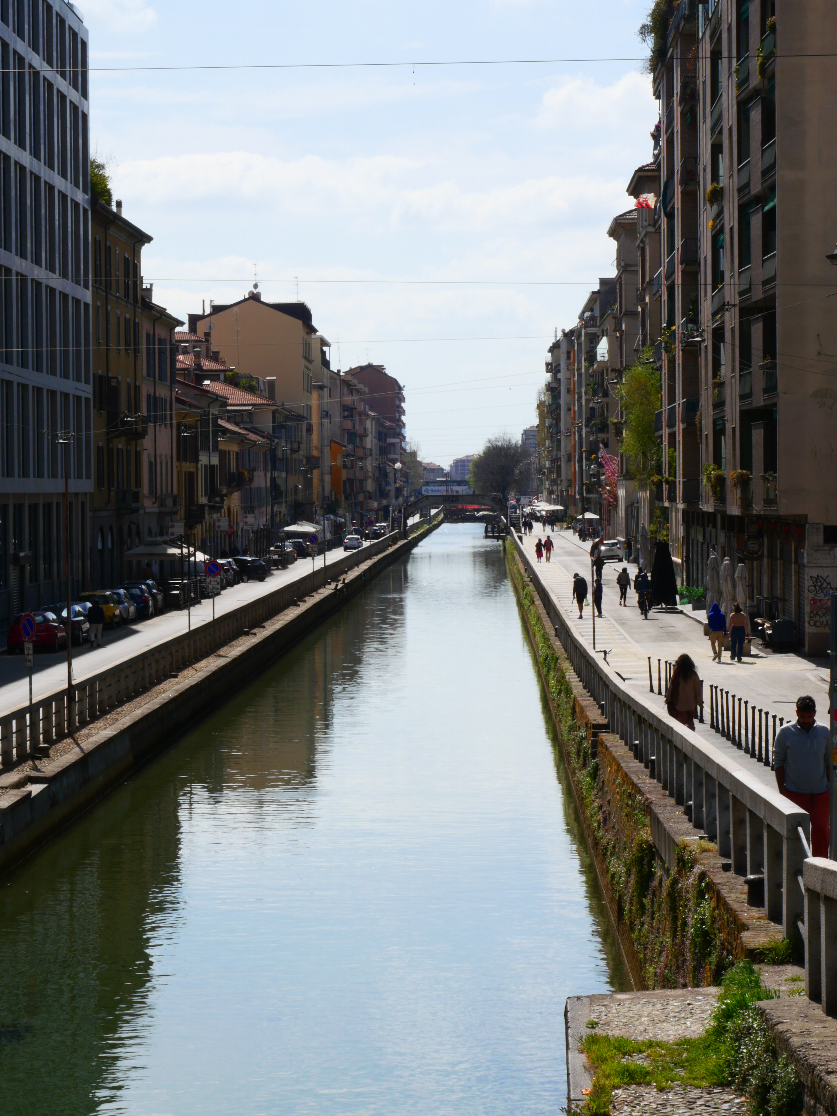 The Naviglio Grande (Grand Canal) of Milan could be in Venice, but, unlike most of Venice’s canals, it has wide pedestrian walkways which allow the numerous cafes and bars along it to provide plenty of outdoor seating.  The sunny north side of this canal is closed to motor vehicles, so it was a particularly nice place to stroll this time of year.  The Naviglio Pavese is more residential and has fewer restaurants but is also a very nice stroll.