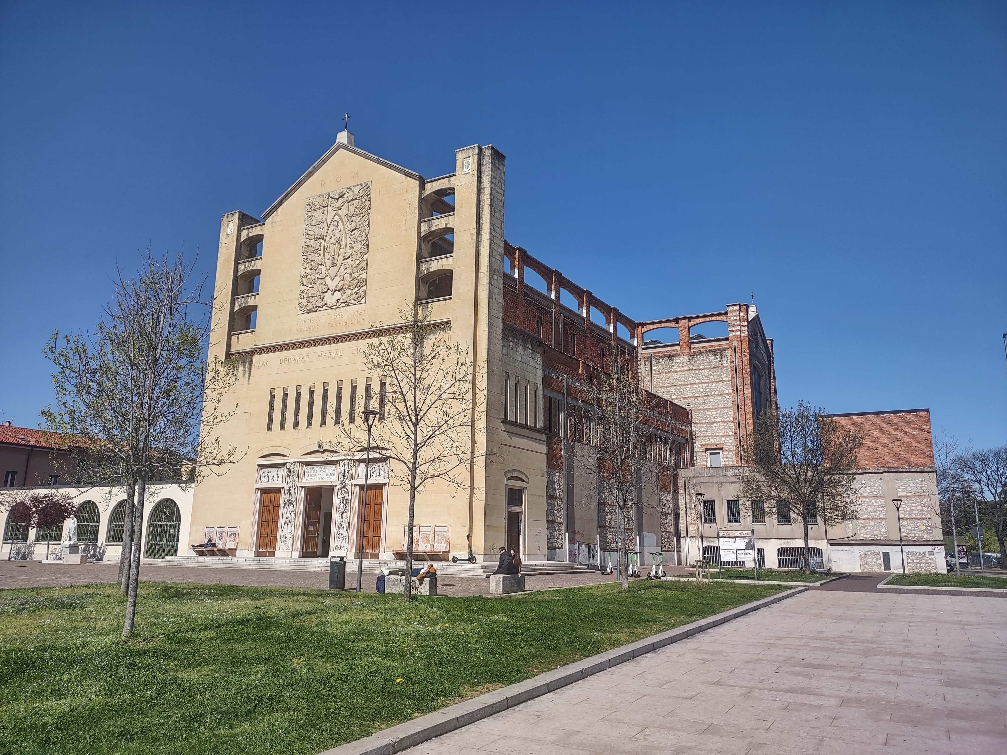 At a stop near the Verona train station, we discovered an interesting church built in the 1950’s which is kind of Brutalist Neo-Romanesque building with flying buttresses (which Colleen can now identify).  Not something we would have ever seen if we were flying. (Just saying.)