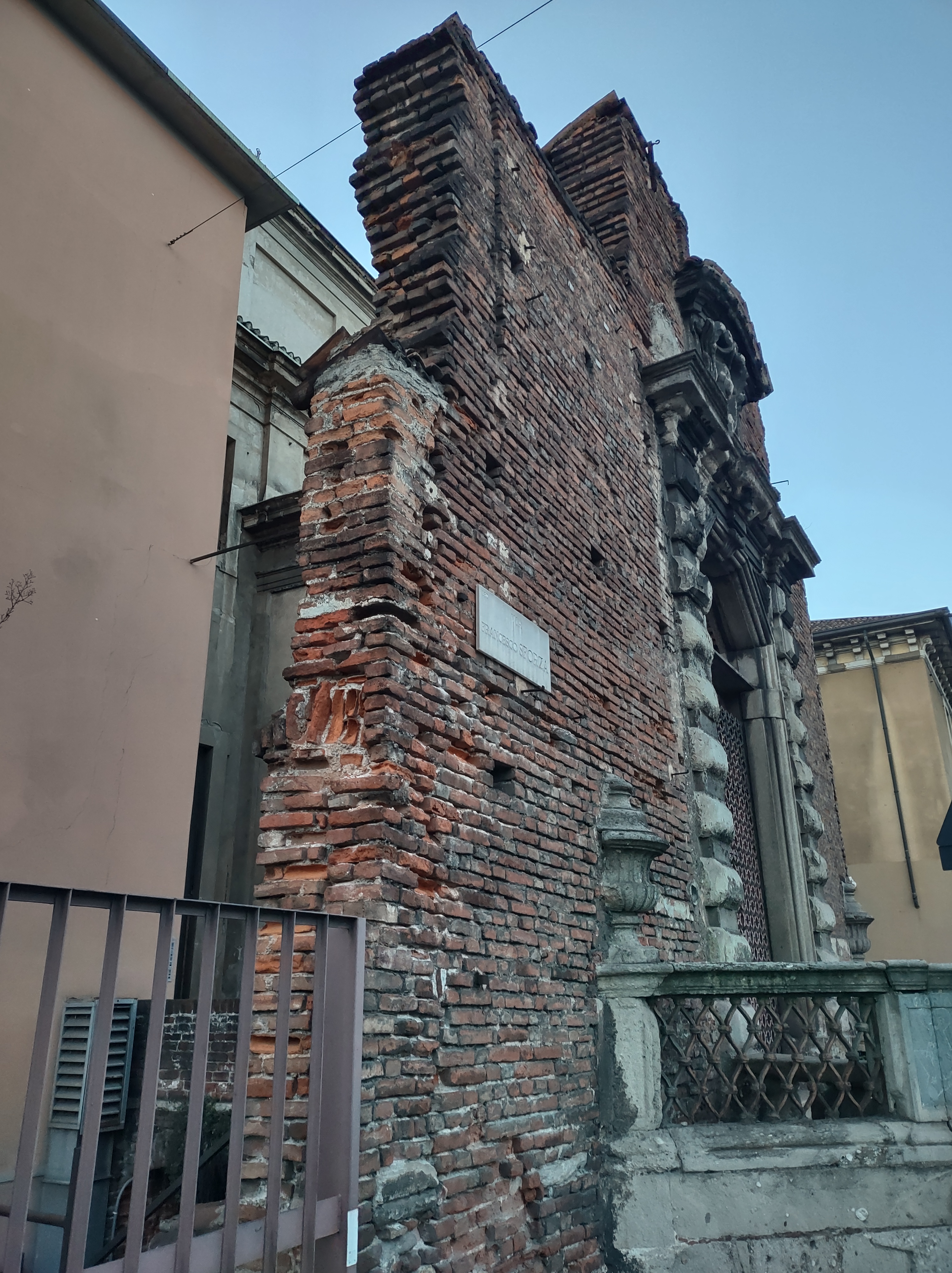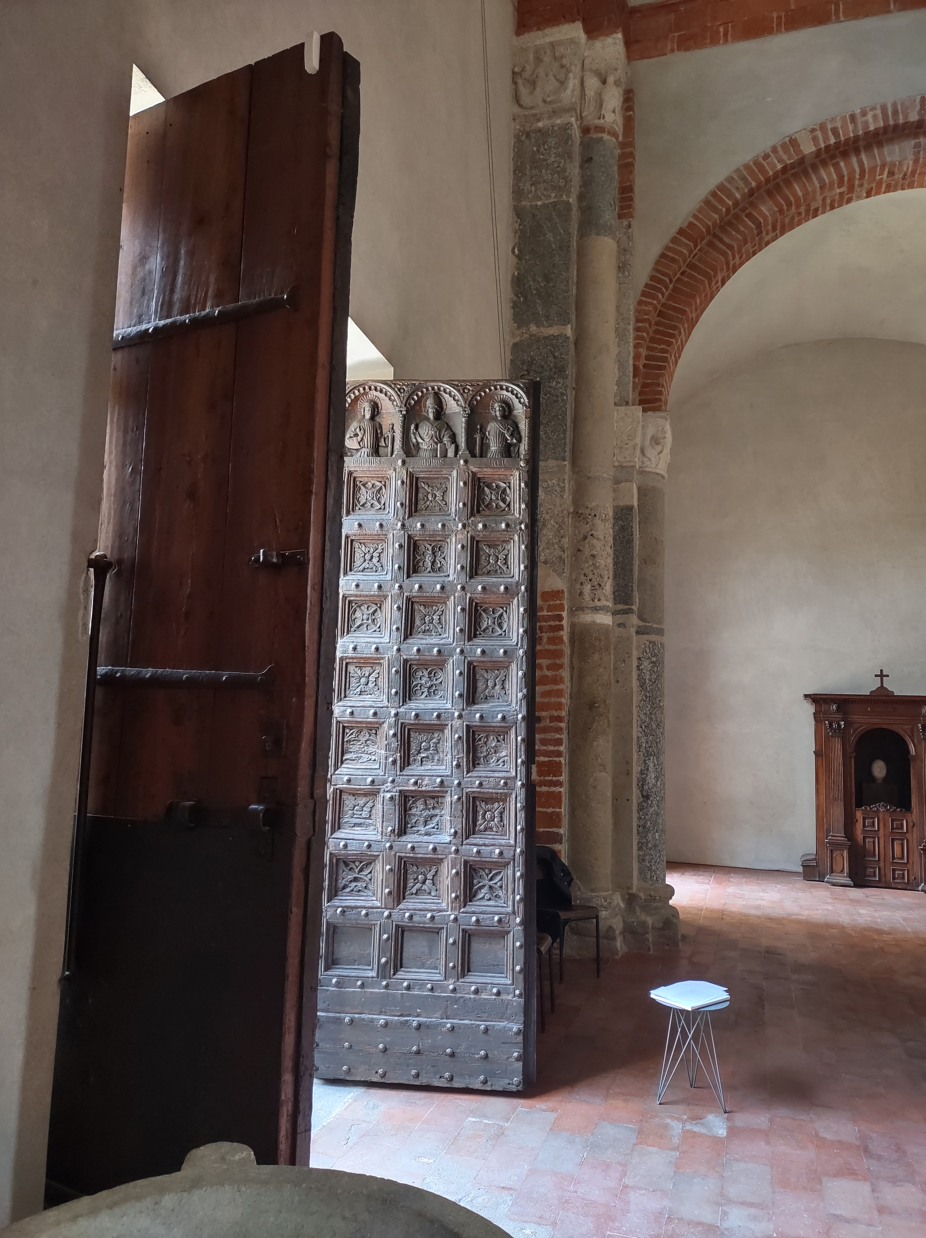 The portico of Santa Maria adjoins a fenced yard which serves as the formal entrance to San Celso, with an allee framed by some very ancient looking trees.  The combination of all these elements – the two churches, the tower, the arcade, the churchyard and the plantings – is hard to describe, but it creates an incredible and authentic sense of place that continues to resonate for us every time we look at these photos.