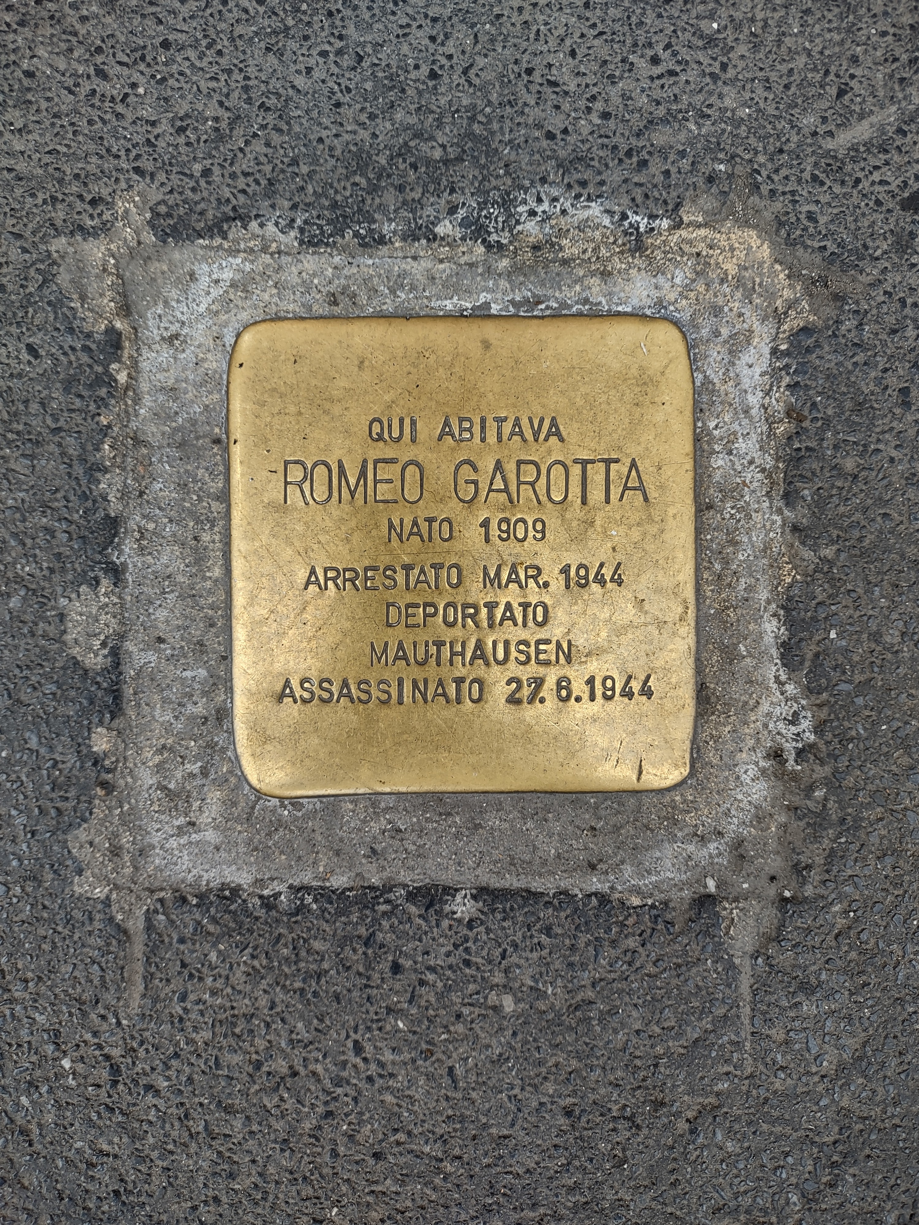 We came across three more Stolpersteine (Stumbling Stones) during our walks in Milan: those of Romeo Garotta, Umberto Recalcati, and Luigi Monti, all of whom were arrested, deported to and killed at the Mauthausen concentration camp in Upper Austria.