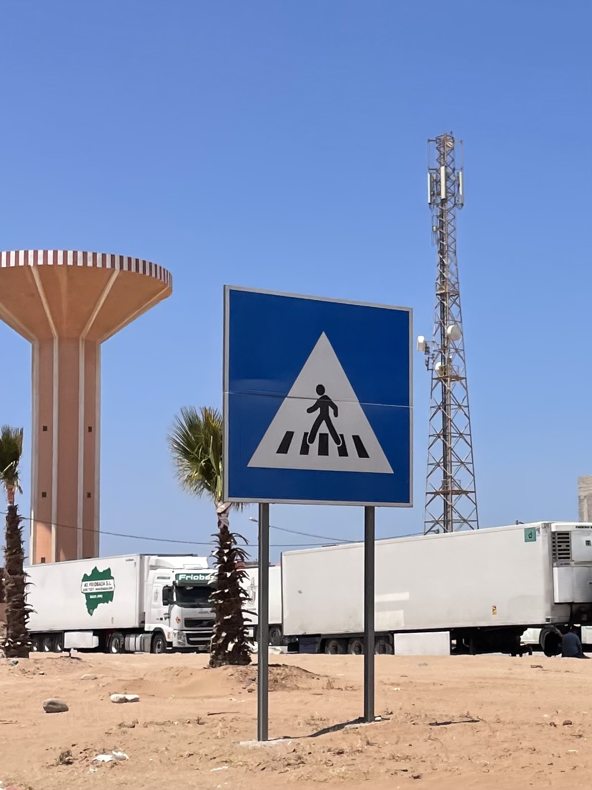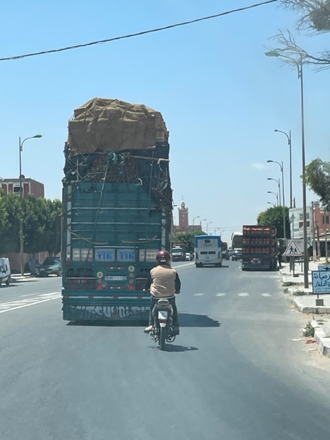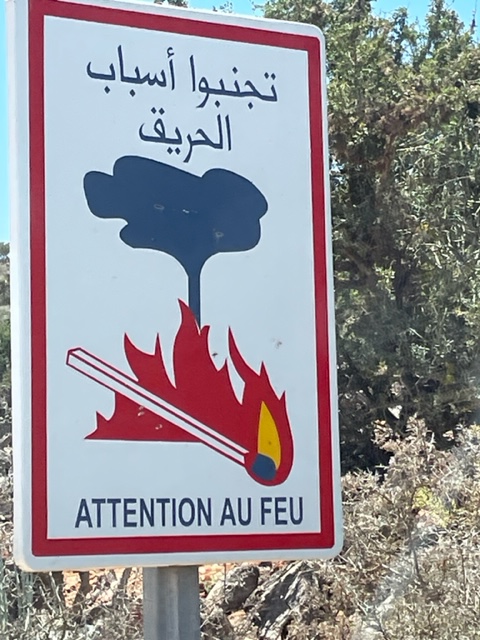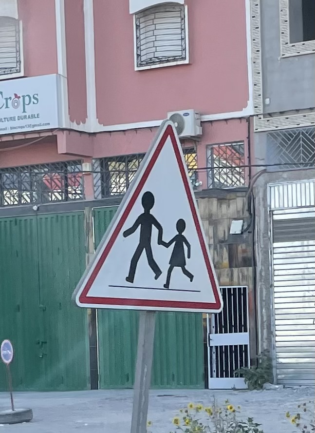 Because we had started so early, the drive back to Essaouira was pleasantly cool and we enjoyed the scenery just as much as we had on the way down (just in reverse). Over our two days of driving in Morocco, we couldn’t help but take notice of some of the road signs which are a bit different than what we have at home. It was interesting to note that there are two different types of pedestrian crossing signs, one of which depicts what appears to be a man calmly crossing the street and another which appears to depict a parent and child fleeing oncoming traffic. (We later speculated that maybe the latter were school walker signs?) Our favorite was the exclamation point sign which appeared to be a sort of all-purpose caution sign for any number of events (hills, turns, falling rock, etc.).