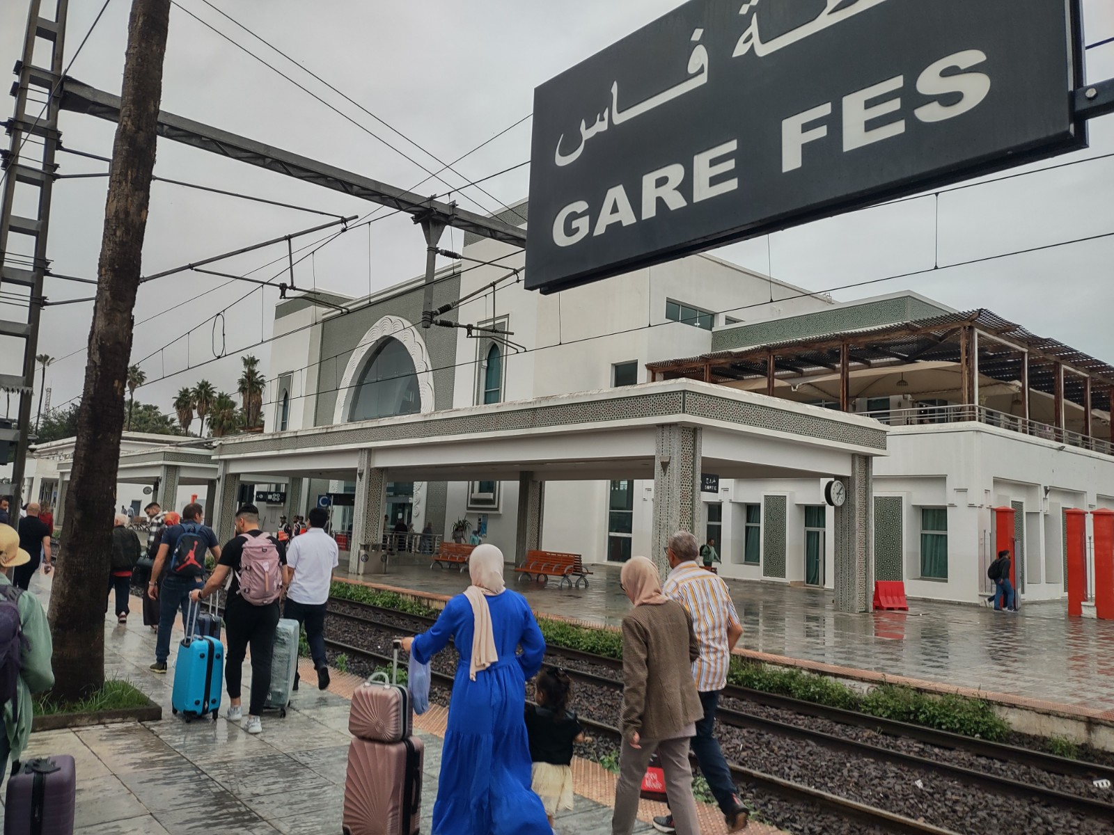 We had booked two second class tickets ($19 each) which put us in a semi-private compartment with six other people in a car which seemed to have air conditioning. Ritchard breathed a sigh of relief when we pulled out of the station with no sign of the Real Housewives (au revoir!). The train route to Fes is a bit circuitous as it goes north through Casablanca and Rabat before turning east to Fes. We were with five Moroccan women who were actually pretty friendly (particularly after Ritchard, the only male in our compartment, offered to bet everyone’s luggage in the overhead bins), but over the course of the trip our seatmates came and went. It was surprising to see that, although this was a long-distance train, it also served as a local as we passed through the cities of Casablanca and Rabat where there were multiple stops, with people jumping on and off for one or two stops.