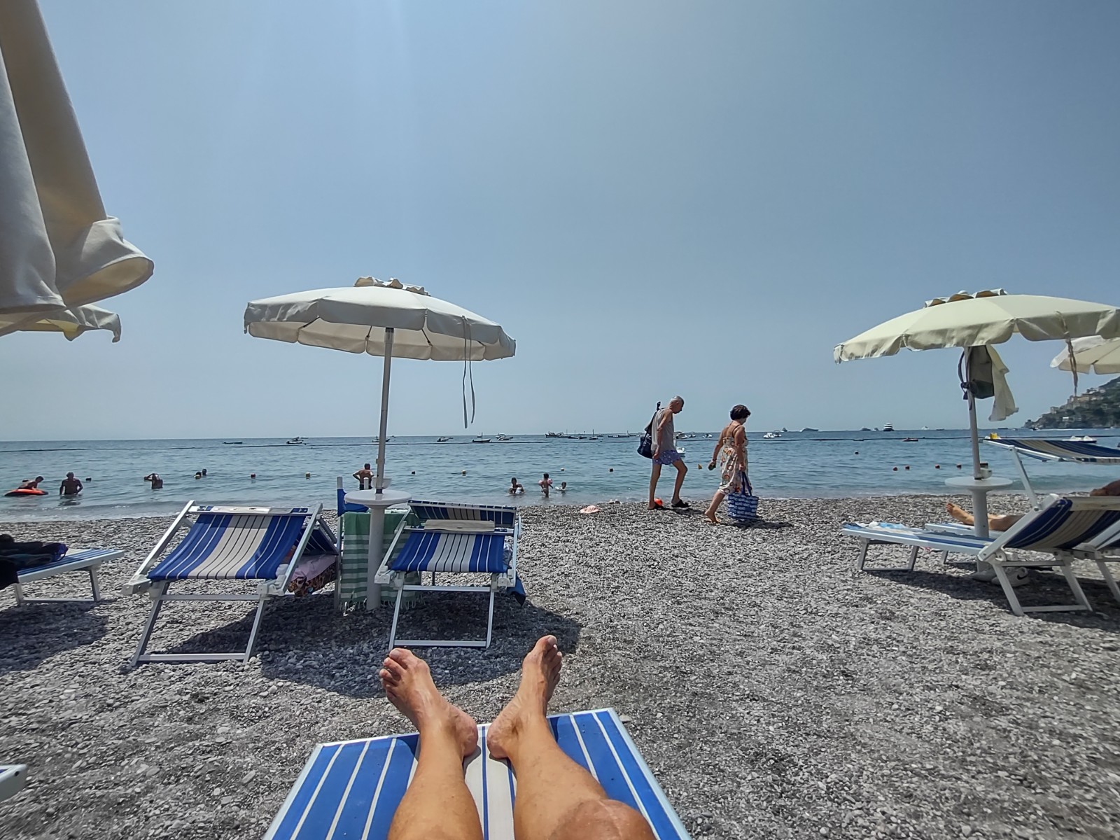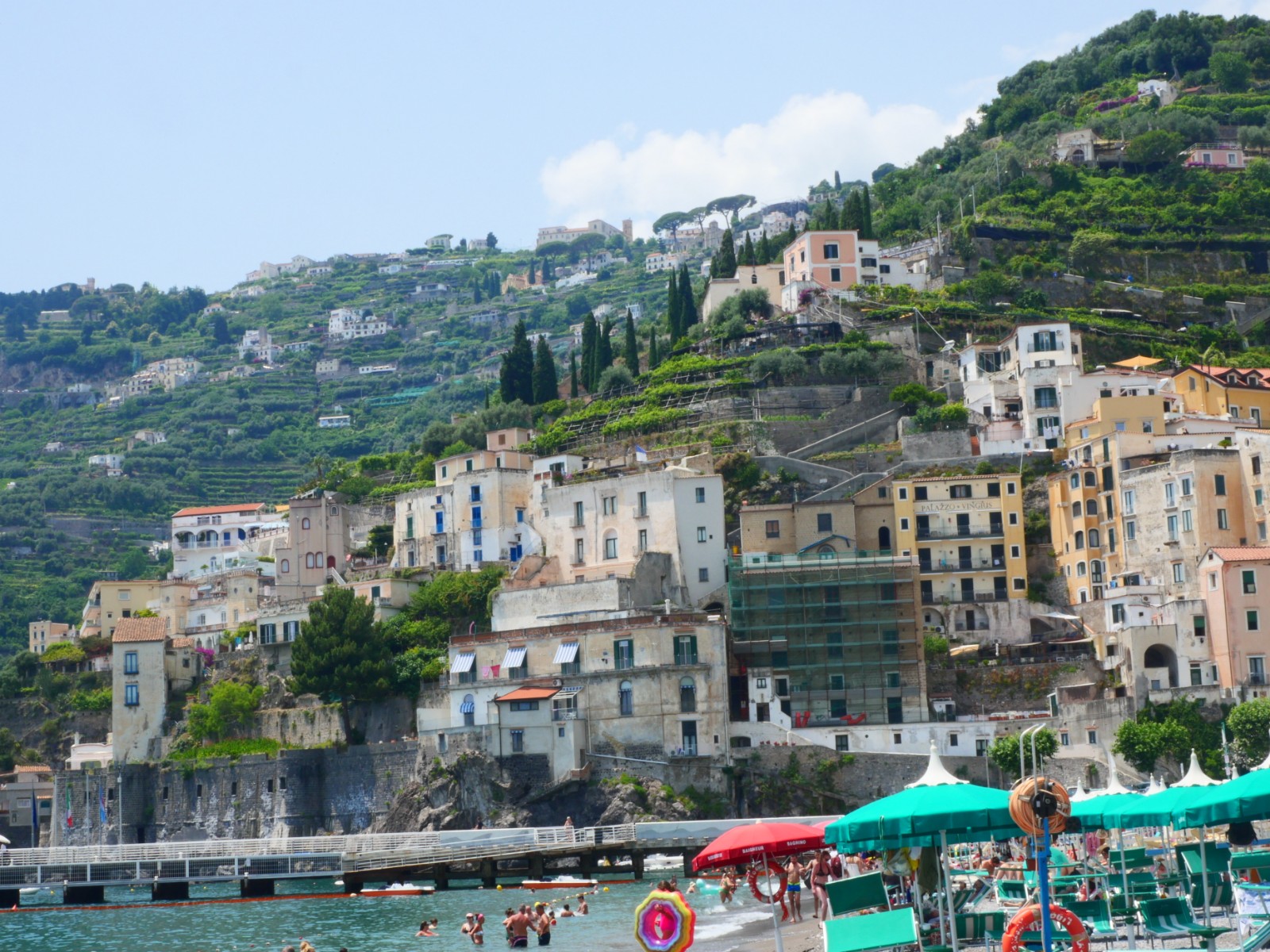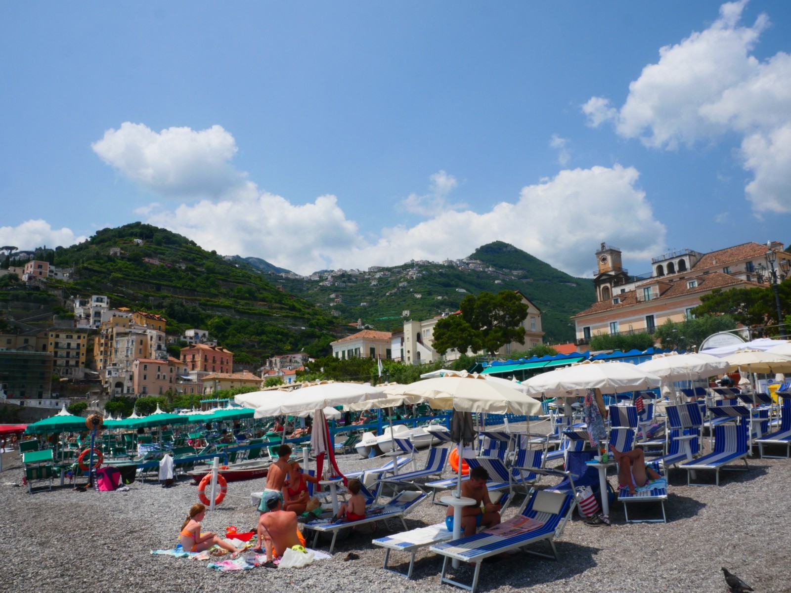 Mostly because of the view but, OK, also because of the incline, we were pretty content to laze about our new place just enjoying the view and were pretty selective in regard to our ventures out. Before arriving, we had committed to making our way to a local beach one day but, after having already seen what a zoo it was in Amalfi, we decided to hike down the mountain to a much smaller town called Minori. In addition to wanting some beach time, we were in need of a better grocery store, which we hoped to find in Minori, and we were also on the hunt for a special local pastry we had heard about.