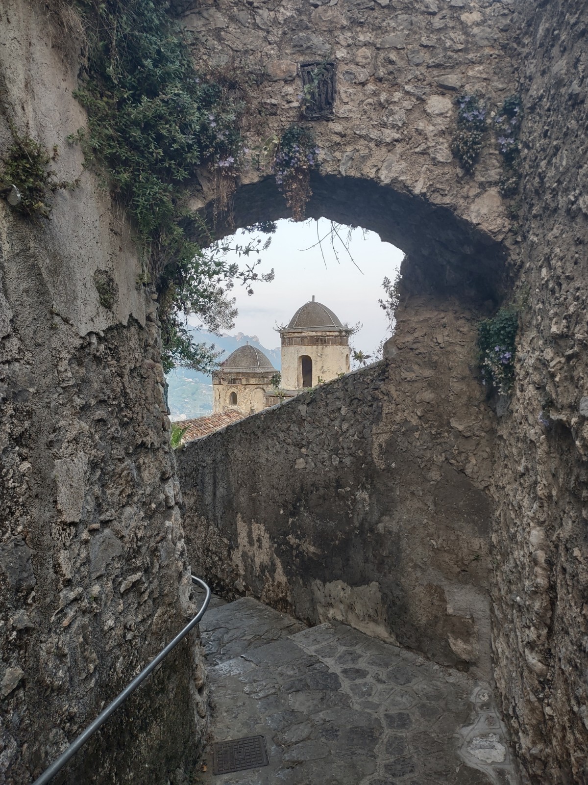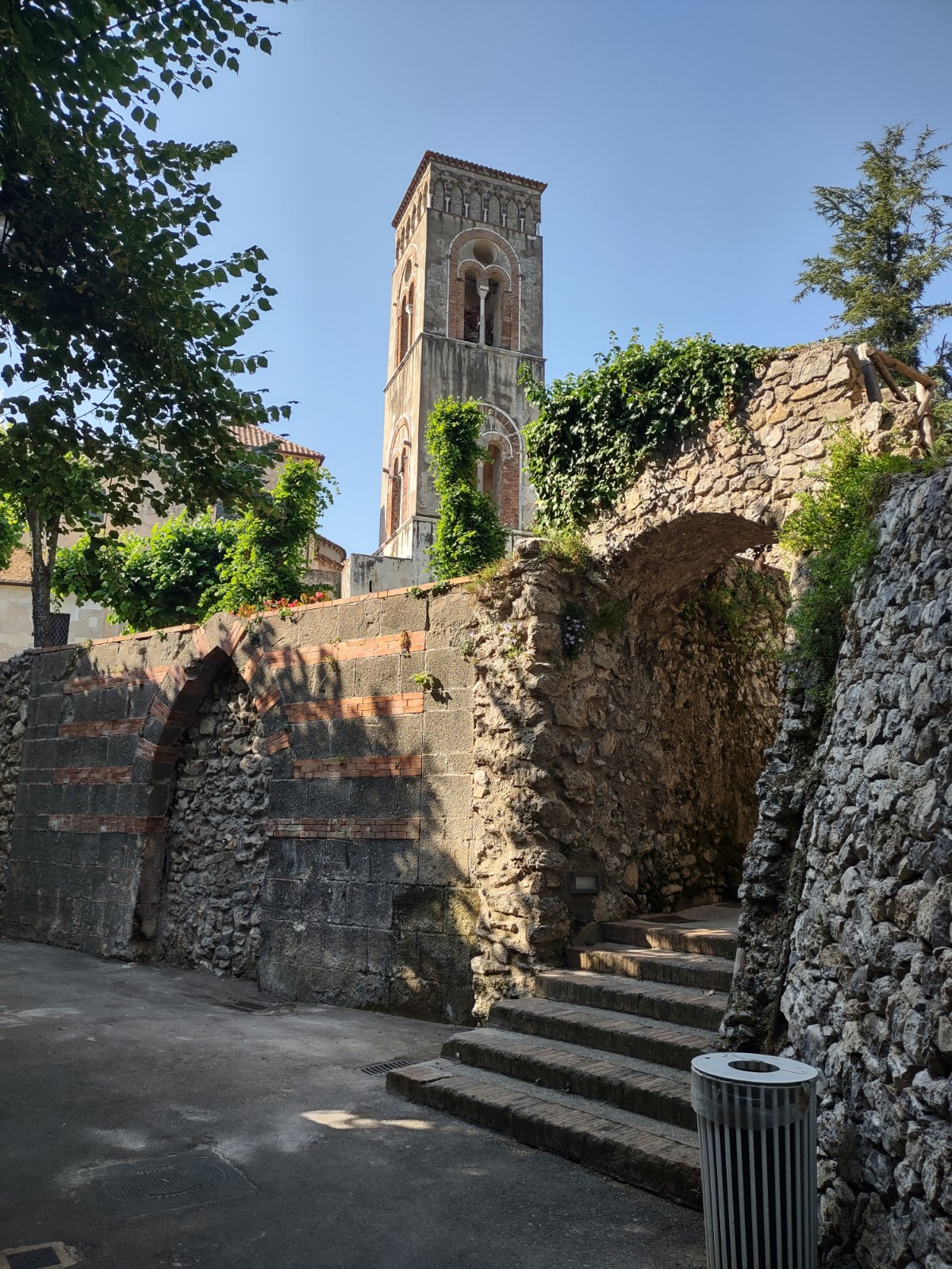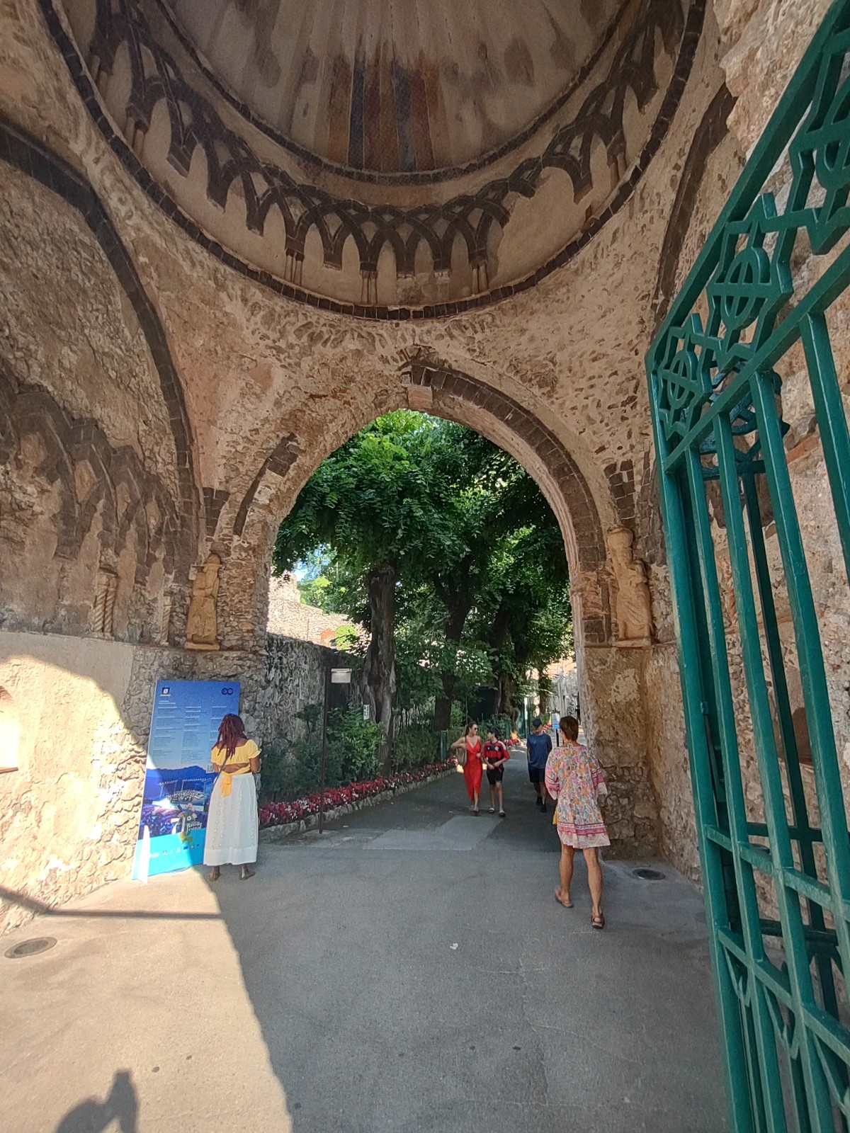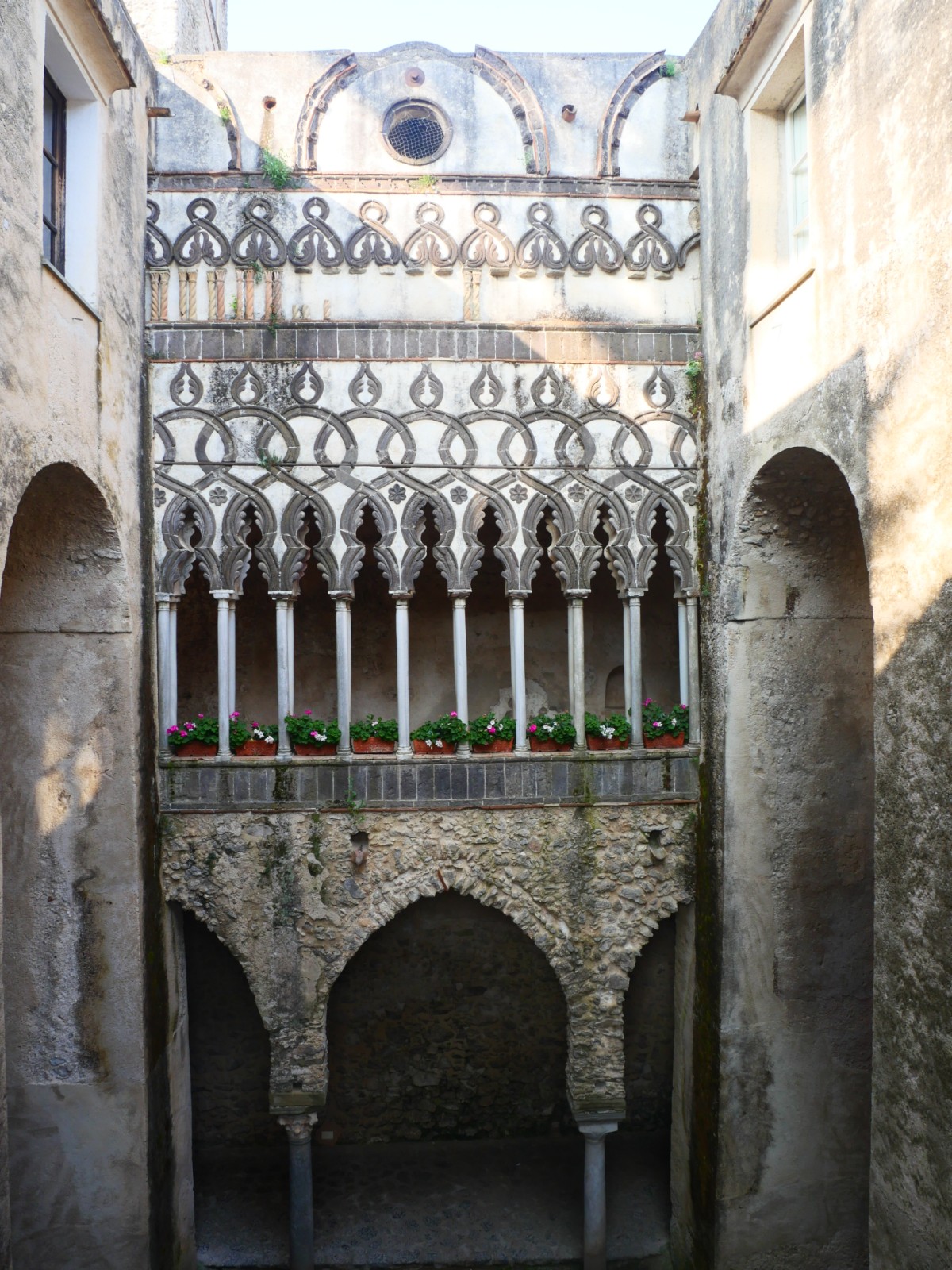 Our other venture out in Ravello was a visit to the Villa Rufolo, an incredible place (really, a palace) built by a wealthy merchant family of the same name in the 12th century. The Villa Rufolo overlooks the Piazza Vescovado to the north and steps down the mountainside to the south with expansive views of the coast and sea far below. The building, which is an eclectic assemblage of Roman, Norman, and Arabic architecture was said to boast “more rooms than the days in the year” (apparently so many that some were lost and then rediscovered centuries later). With the economic decline of Ravello and the Duchy of Amalfi, the Villa feel into disrepair but was purchased by a Scottish aristocrat Francis Neville Reid who set about restoring and rebuilding it. Today it serves as the headquarters for the Foundazione Ravello and some other local cultural organizations including the Ravello Festival which it serves as a venue for.