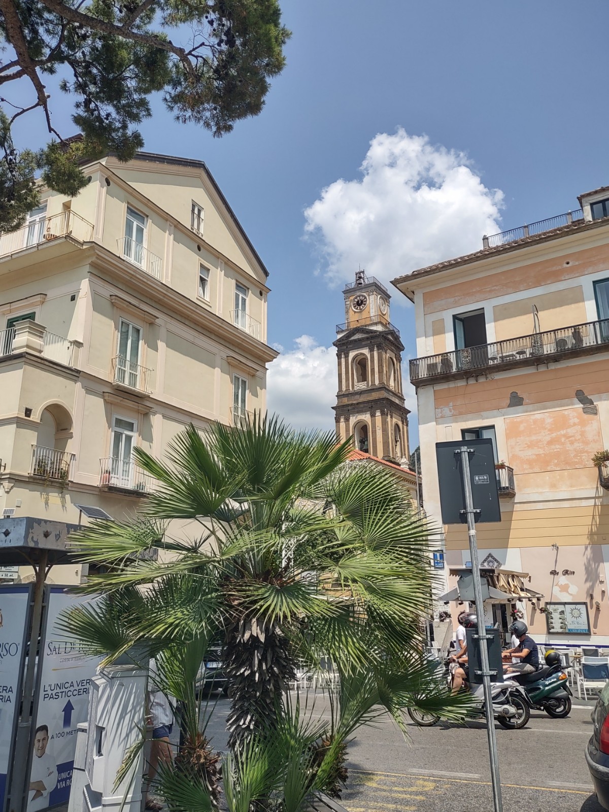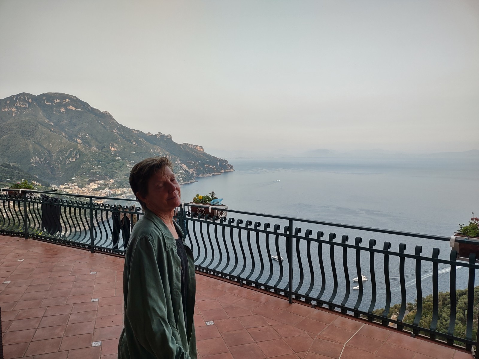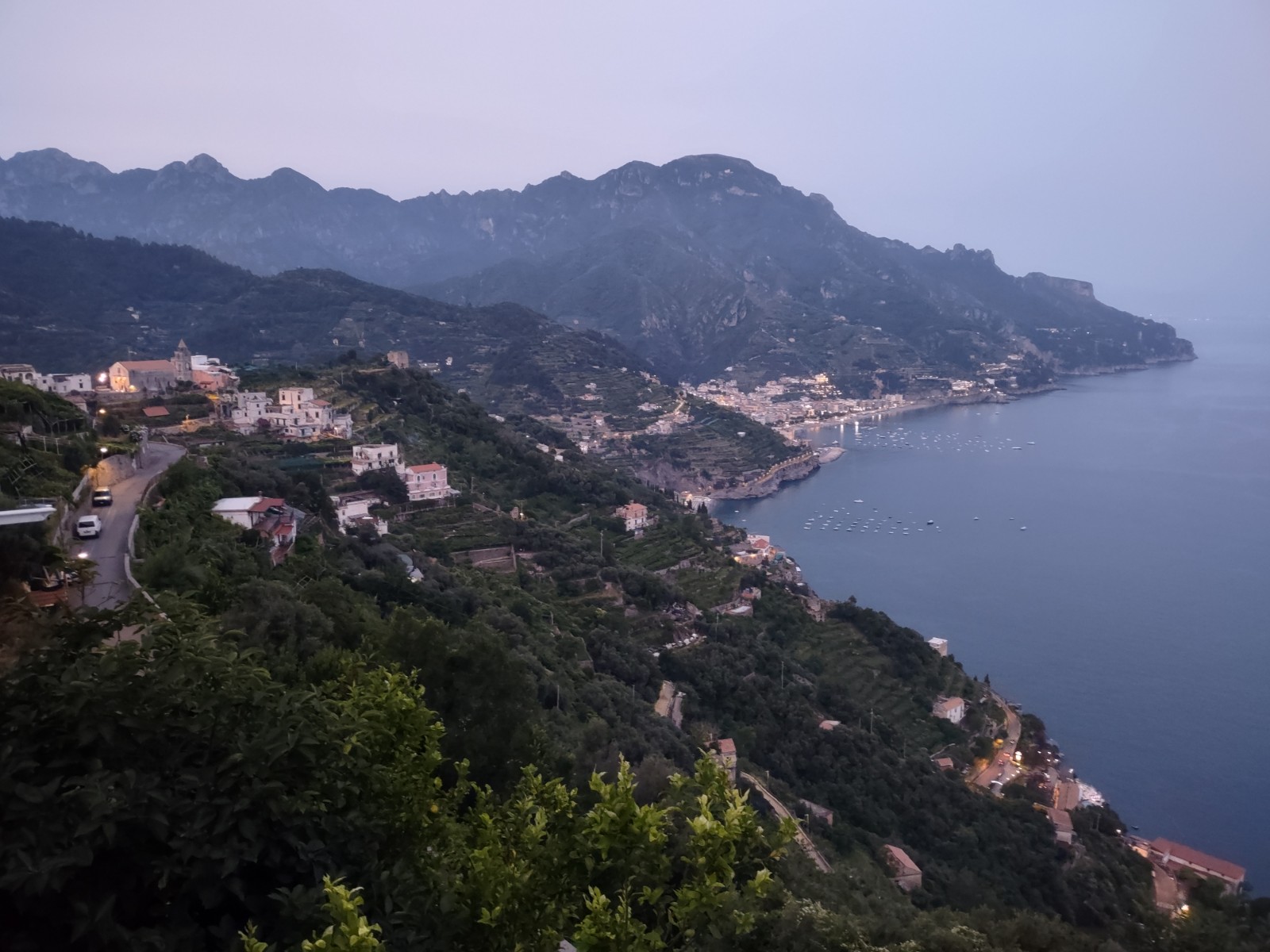 The train ride was great with wonderful views of the Italian countryside, but our issues started in Palermo where we discovered that, despite information to the contrary, there is apparently no direct bus from Palermo to Ravello. And so, we boarded a bus for Amalfi where (maybe?) we could catch a bus to Ravello which (of course) was not the case. What followed was a very memorable bus ride from Palermo to Amalfi with amazing views of the towns and coastline sliding past us as the bus flew around hairpin turns on a narrow road which was, for the most part, high above the water hugging the sides of steep cliffs. (Colleen later confirmed that this ride was definitely in the top five of the list of near-death experiences.)