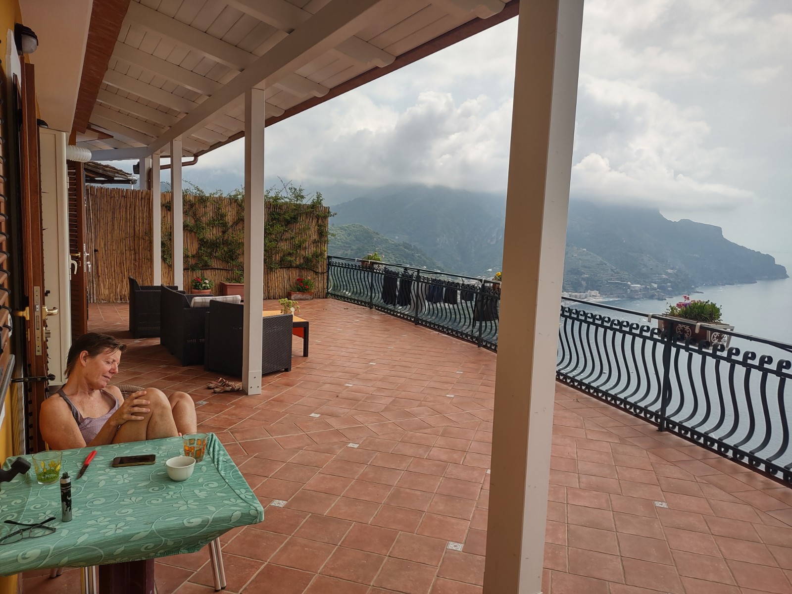 There is a peninsula south of Naples which stretches from Palermo to Sorrento with the Isle of Capri just off its tip. A narrow road runs along this coast through a number of small sea-side towns including the well-known Italian beach towns of Positano and Amalfi. This stretch, commonly known as the Amalfi Coast, is more or less the Italian Riviera with multi-million dollar yachts cruising up and down the coast and Lifestyles of the Rich and Famous definitely playing out in some places. Crowded and expensive or not, it was a part of Italy we really wanted to see and, in researching the area, we came across what appeared to be a reasonably priced house with an amazing view in the town of Ravello, which sits on a high plateau overlooking a stretch of this coastline which extends from Amalfi east toward Palermo. We came to Ravello hoping to find it less crowded than Amalfi or Positano, which it was, but we discovered that there were reasons for the uncrowdedness and that it came with a bit of a price (or at least some trade-offs).