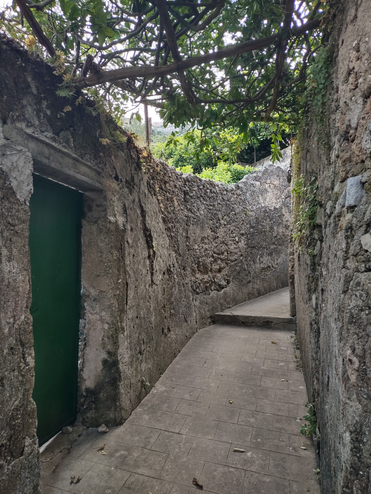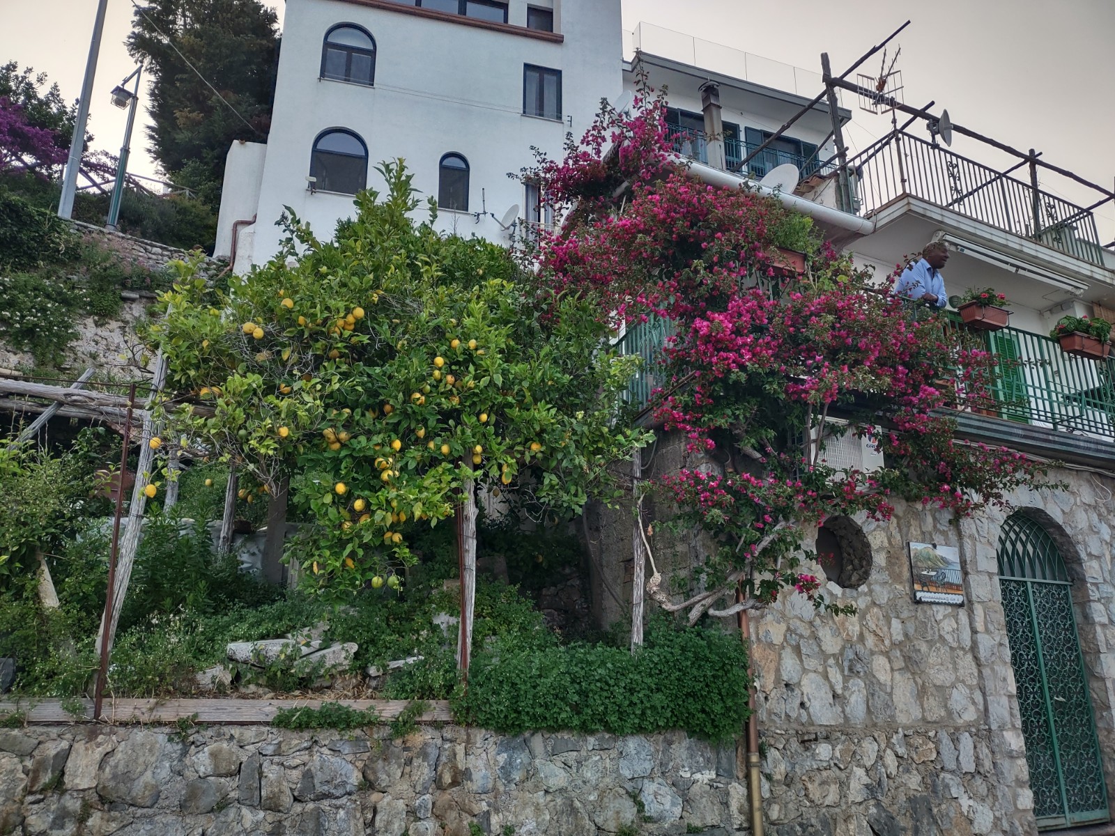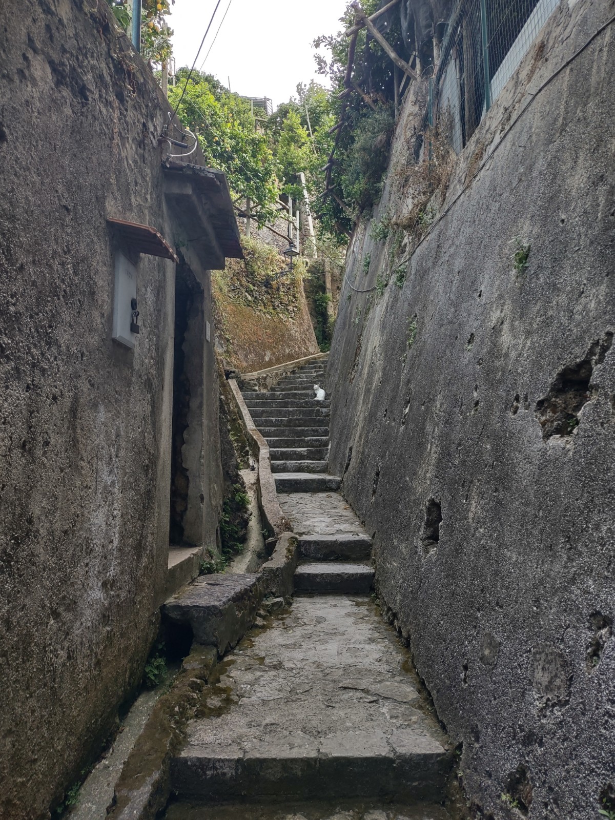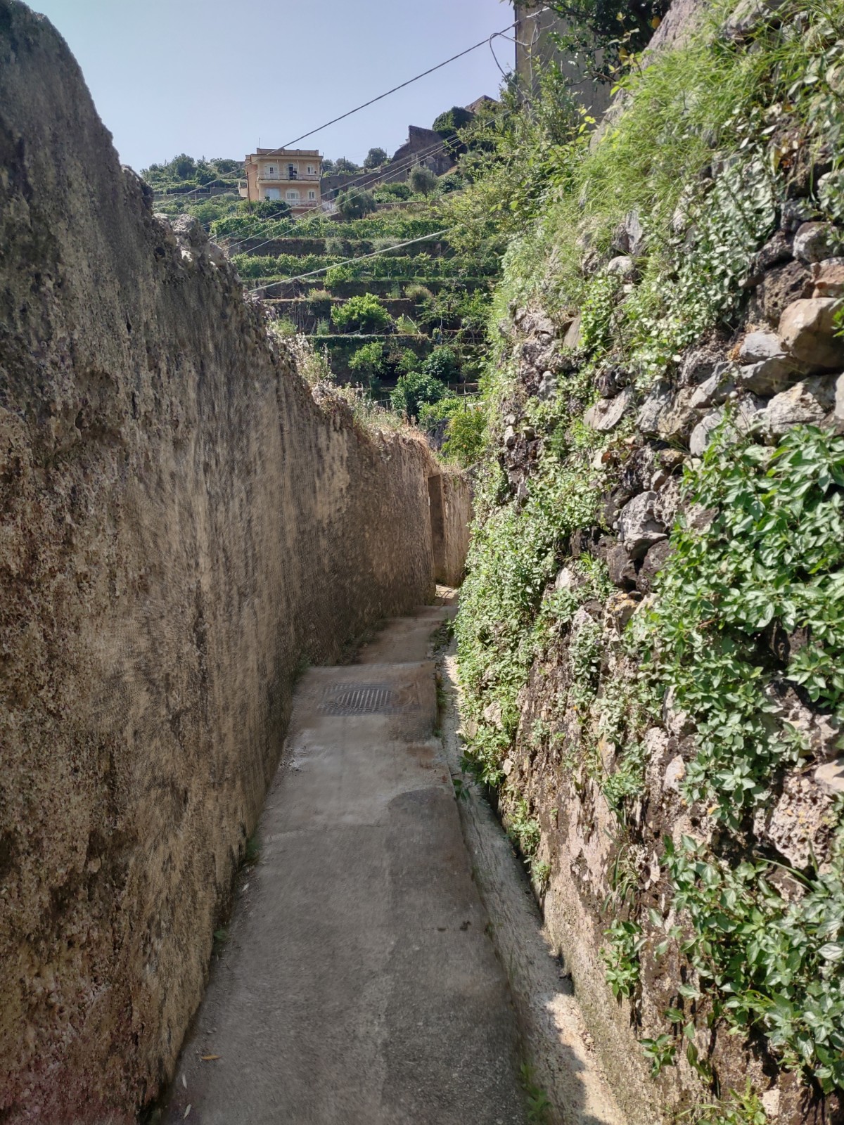 So, this was the point in our visit to Ravello where theory about what the place would be like met reality in a very physical way. While we could see the distances between places (like the town center and our house) on Google Maps, even with the terrain layer on, it’s very difficult to judge how much change in elevation there is. (We later discovered the way to determine this is to plot the route by bicycle which will give you the total vertical distance travelled up, down, and net.) So, while the walk between the Ravello town center and our house was between a half and about a full kilometer in distance (depending upon which of several routes you took), it was important to realize that there was also over 115 meters of vertical difference between the two. (Once this clicked for us, we began thinking about the route between places in terms of the number of stair steps – standard 8 inch risers – it equated to.)