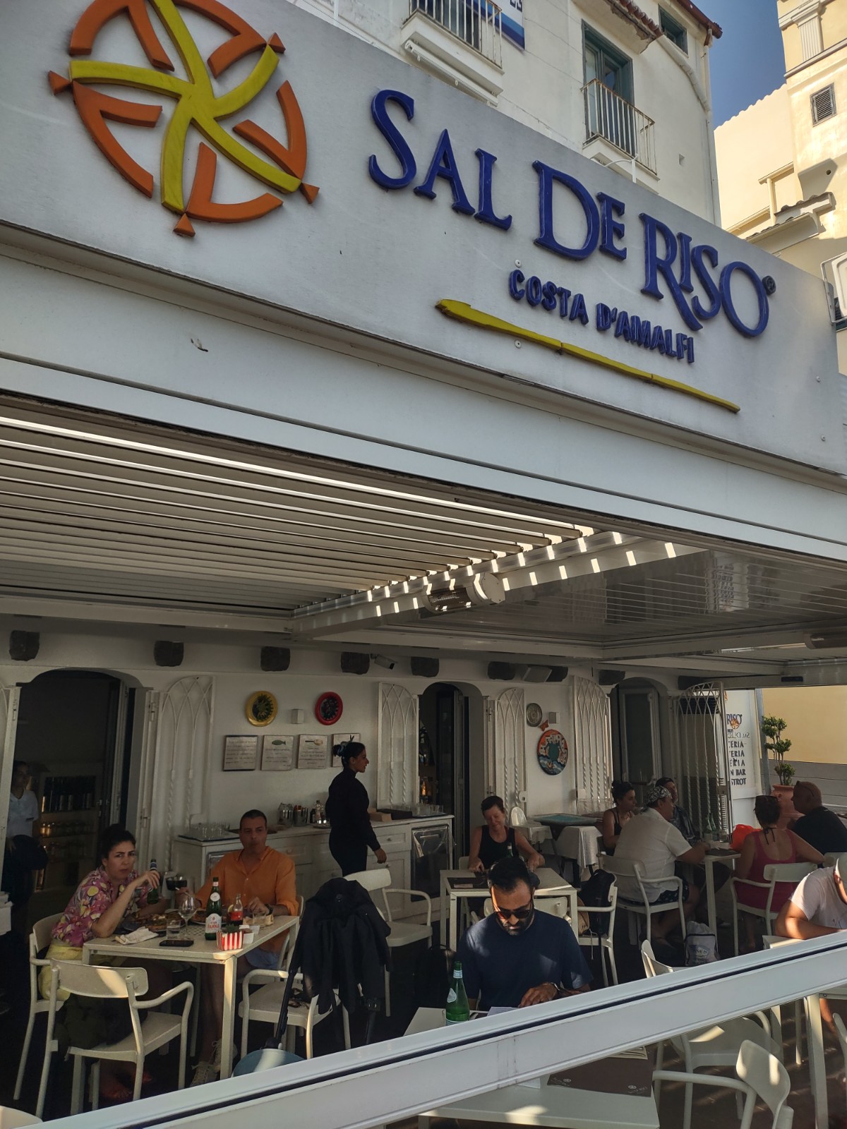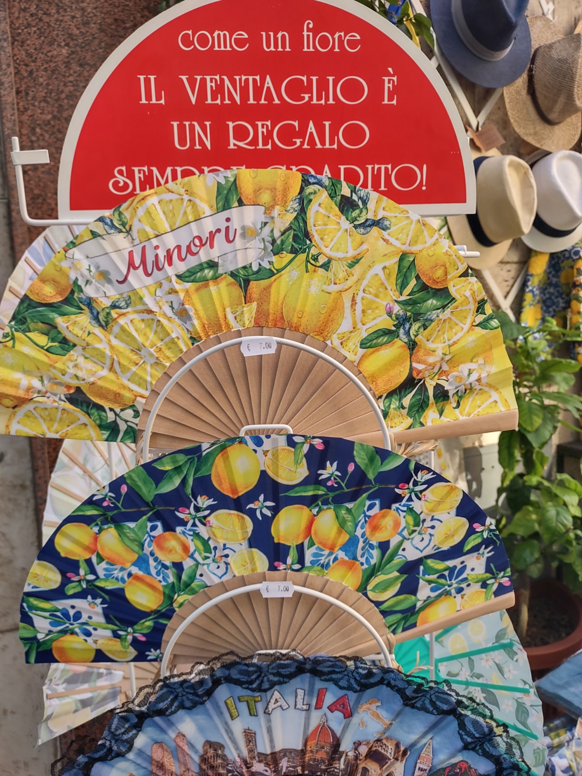 After lunch we headed for our ultimate destination in Minori, a place called Pasticceria Sal De Riso, which, as we learned of from an episode of Stanley Tucci’s Searching for Italy, is the place where a special local pastry known as a “Lemon Delight” originated. It consists of a lemon sponge cake which is filled with lemon cream, then dipped in lemon frosting and then topped with more lemon crème, lemon zest, and some spun sugar. Lemons are everywhere on the Amalfi coast – in the trees, on pottery, lemonade and clothing – but this is without doubt the most delicious and decadent way to enjoy them.