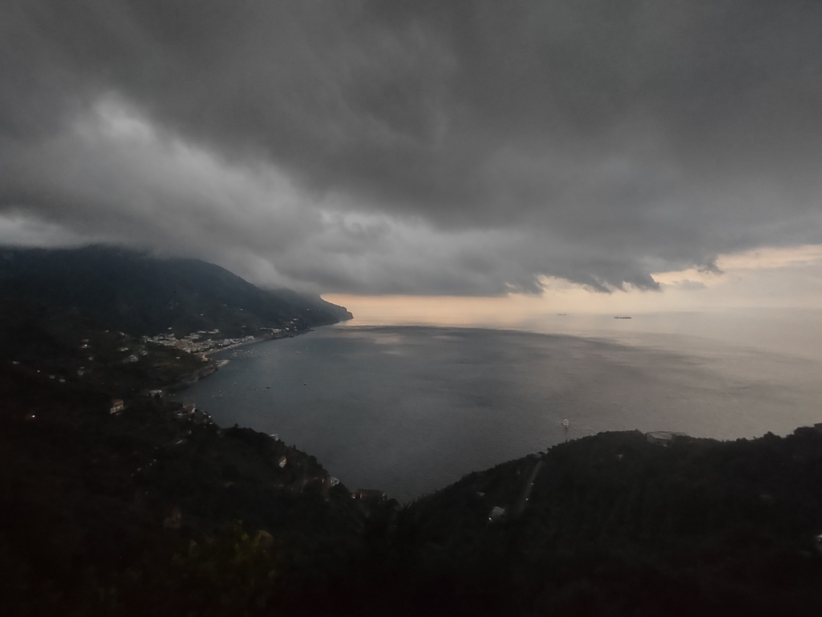 I mentioned at the start of this installment that one of the great things about the view from our house in Ravello, which we have learned from staying in other places with views of the ocean like this, was that it always changed over time. It really is amazing how the position of the sun, shade, clouds (or none), rain, and fog can change exactly the same view over the course of minutes, hours, and days. On our last night we were even treated to a summer storm with hail and some very loud thunder and lightning over the ocean. I was reminded of a house in Bequia in St. Vincent, where we stayed some years ago with some friends, with similar views of the ocean which we all ultimately agreed was better than television because there were never any re-runs.