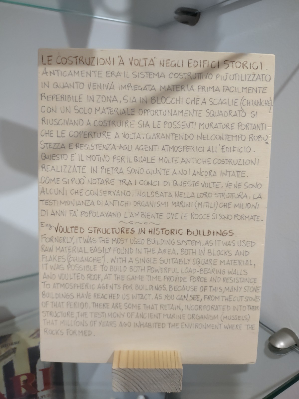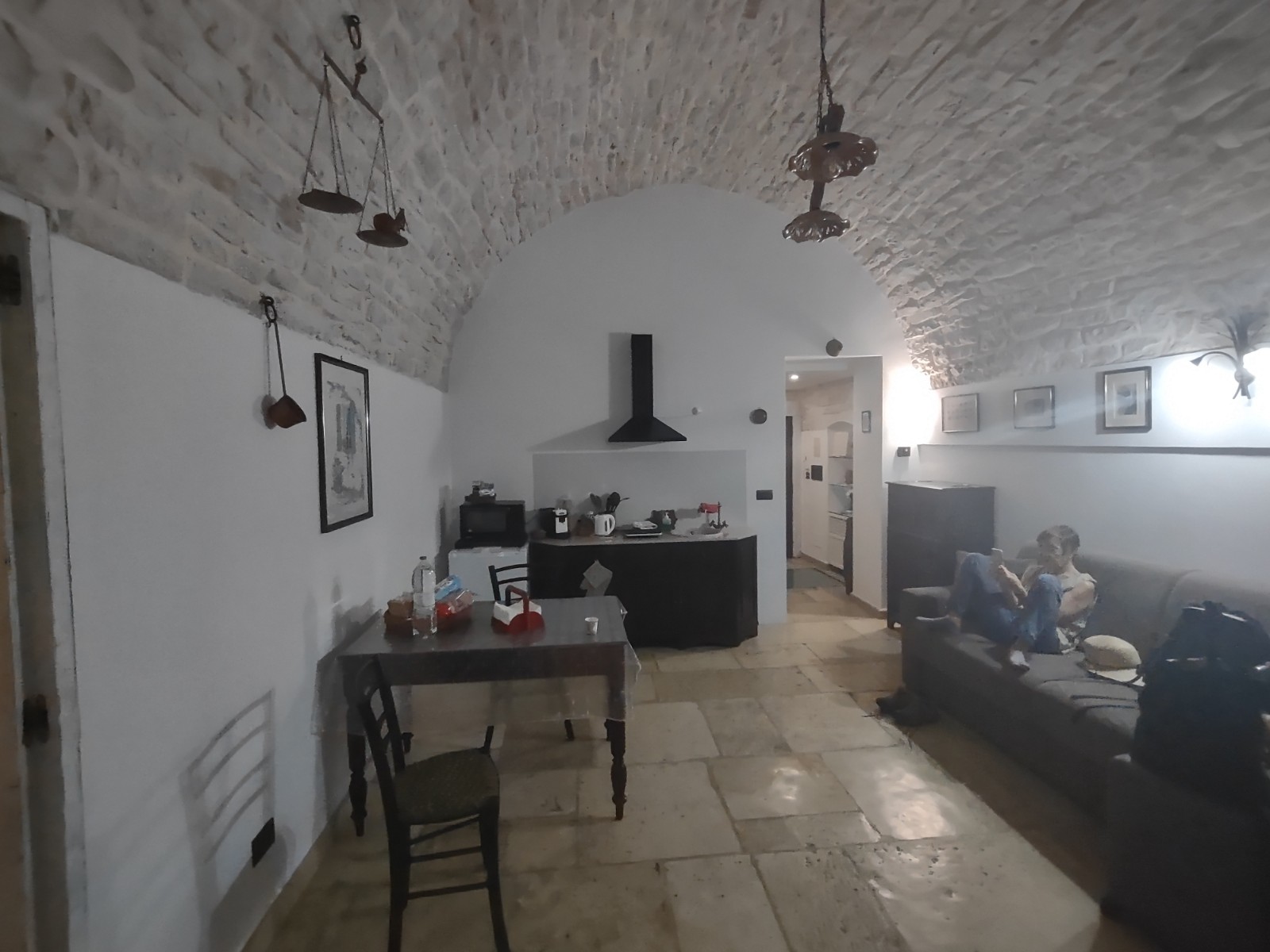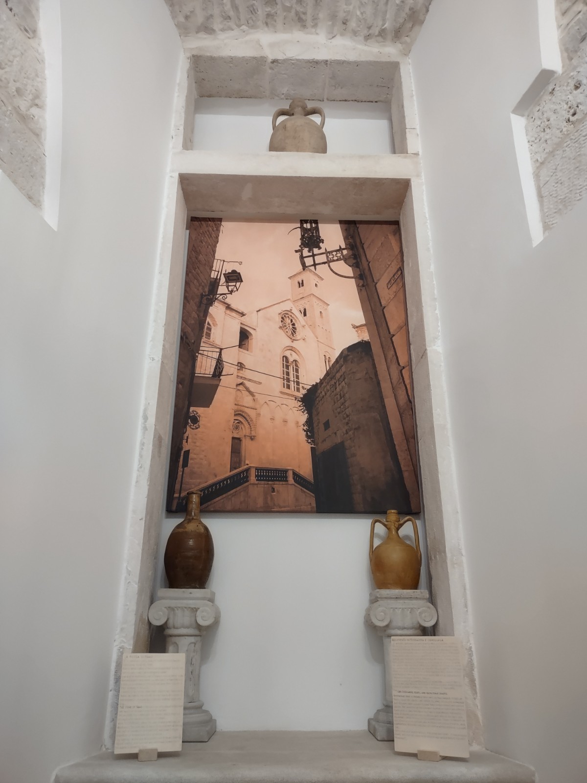 Long story short, Giovinazzo turned out to be everything we hoped for and then some, starting with the place we were staying, Piazza Porto 20, a first-floor apartment in an 18th century building with much of the original stone floor, walls, and vaulted ceilings exposed. There were displays of various artifacts related to local history and the construction of the building scattered about with placards describing (Italian and English in beautiful architectural hand lettering) what each artifact was with explanations of its purpose and use. It was almost like sleeping at the museum!