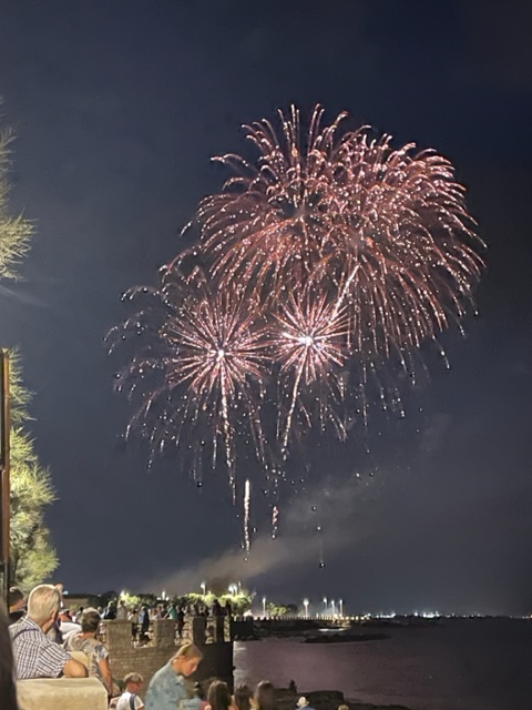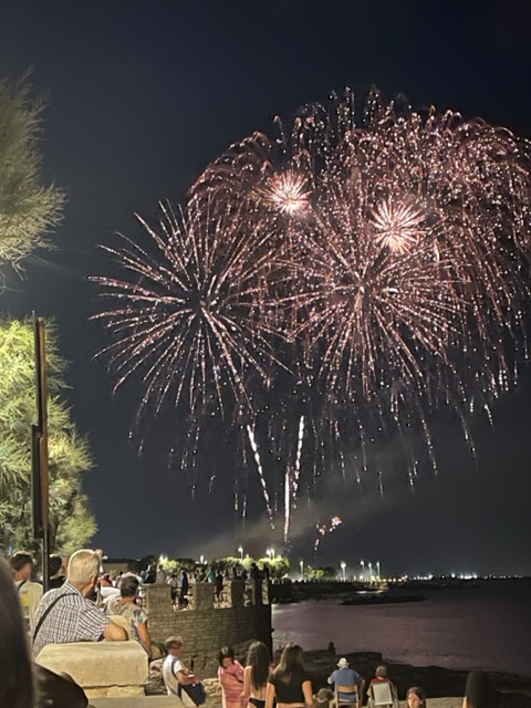 The only other particularly noteworthy thing that happened in Giovinazzo while we were there were the fireworks. On Sunday July 2nd, we were already in for the evening when we heard fireworks in the harbor. We were pretty certain that there had been no fireworks on Saturday night but, just to be safe, we made a point of being out later the following night (Monday) and, while we were sitting in the harbor plaza enjoying our gelato, a couple of warning shots were fired followed by a really nice fireworks display over the coast. There were no more fireworks for the rest of the week and we never quite figured out why there were any on Monday night but were happy nonetheless to have seen them.