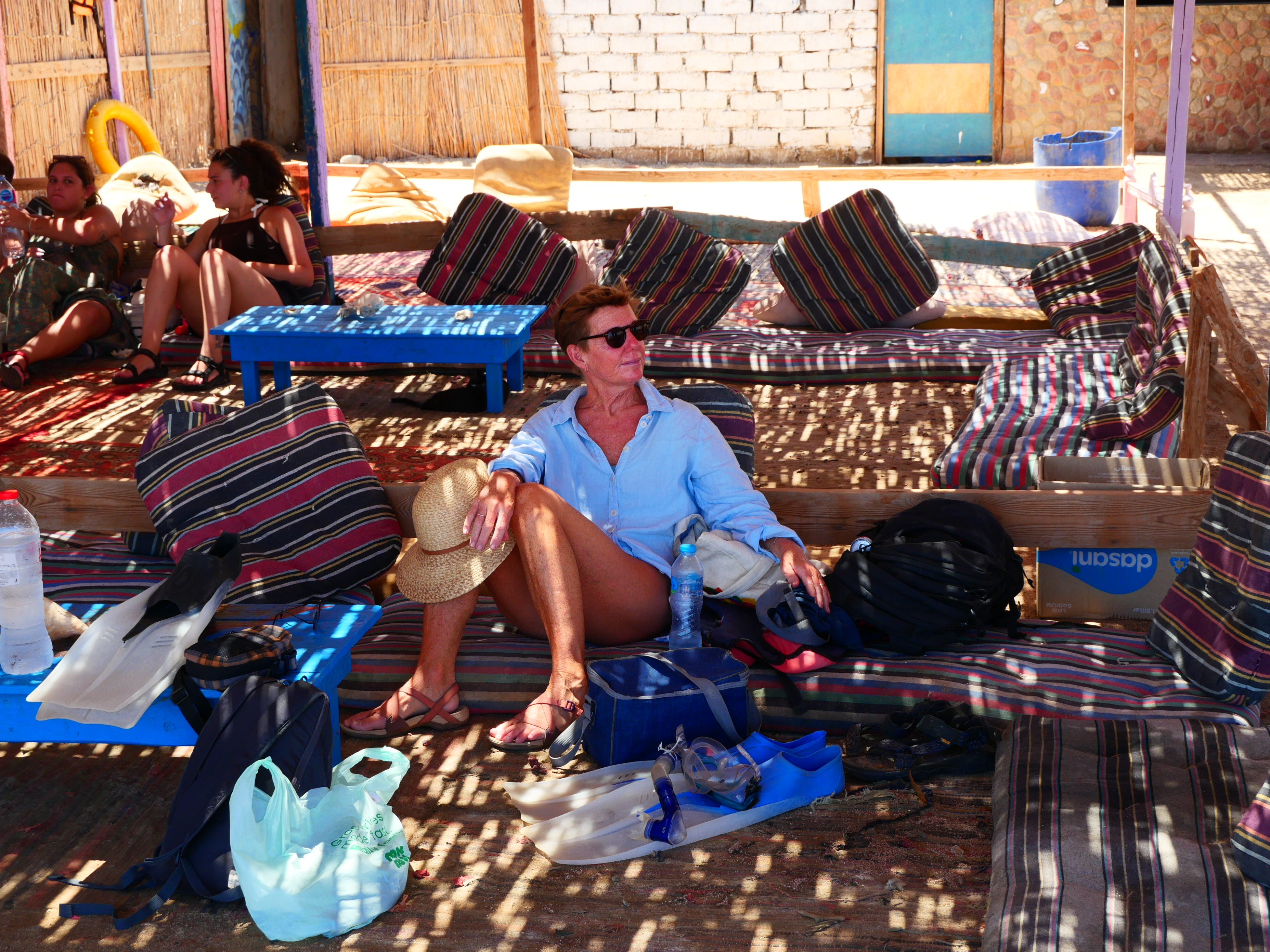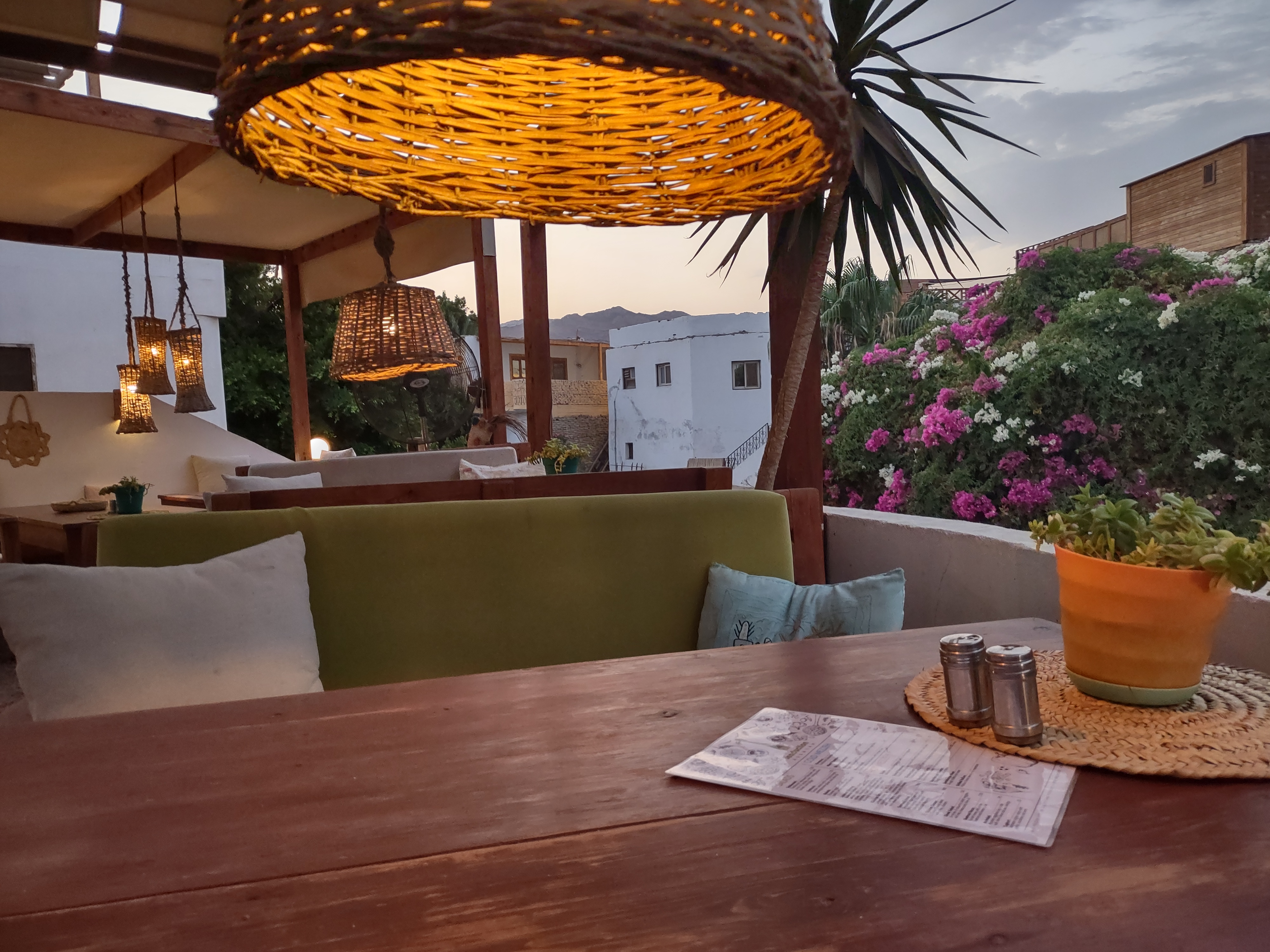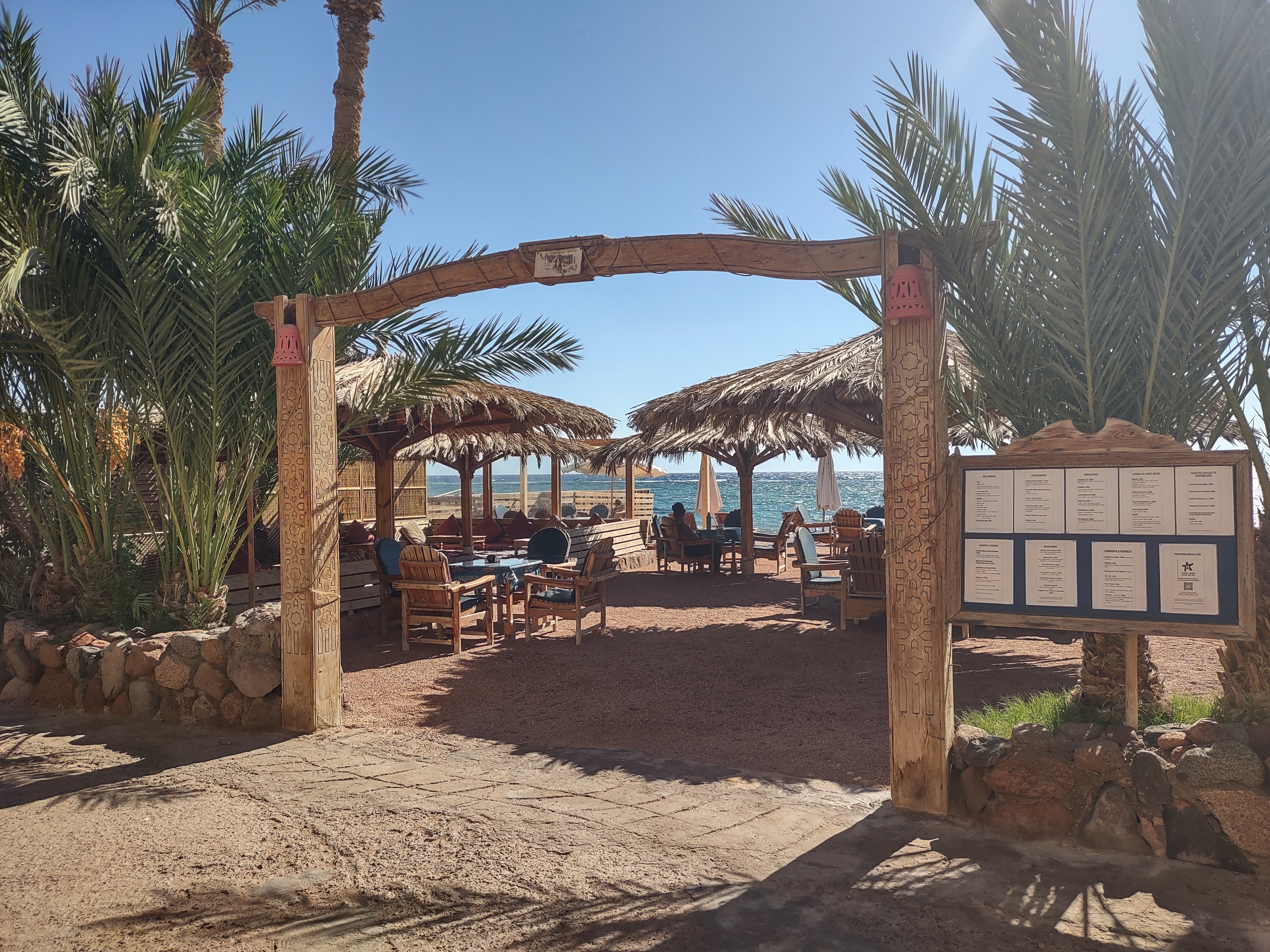 We came to Dahab looking for some deep relaxation, but it took us just a little while to find our stride feeling a bit like the story of Goldilocks and the Three Bears. Over the course of our first week in Dahab, we sampled a good number of the hang-out spots up and down the promenade, which varied quite a bit from one another both in terms of food and ambience. South of town, the beach-side lounges were nice but tended to be very Arab (meaning few or no women and no women in western bathing suits). The ones in the center of town had access to some great snorkeling but no beaches, with their sun loungers packed together side by side. They also had a tendency to play louder more obnoxious music as the day progressed.