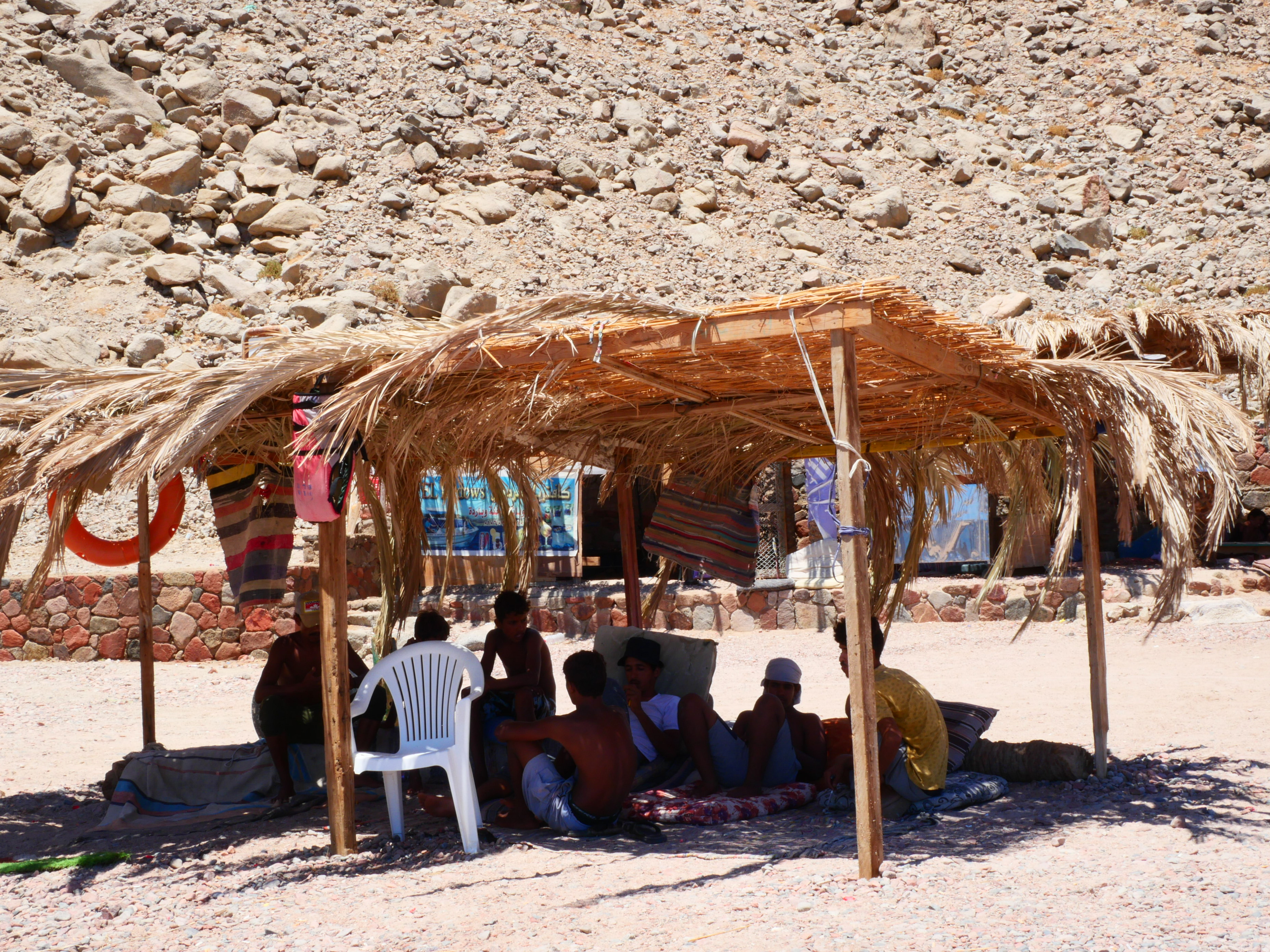 We came to Dahab knowing full well that it was going to be very hot, but this was one of those things (like Hell?) where you can’t imagine what it is really going to be like until you are there and it’s too late to do anything but roll with it. While we expected that daytime highs in Dahab might hit 100 degrees, we were a little surprised to find daily highs in the 105 to 110 degrees range and (actually worse) overnight lows often did not dip below 90 degrees. (We had expected low 80’s overnight!) We saw temperatures this high in Jordan, but it seemed much more tolerable there with cooler mornings. We were fortunate for the first couple of weeks to have humidity in the 20% range (there’s that dry heat!) but learned that this was a bit extraordinary when it returned to its more normal 40 to 50 percent range later in our stay.