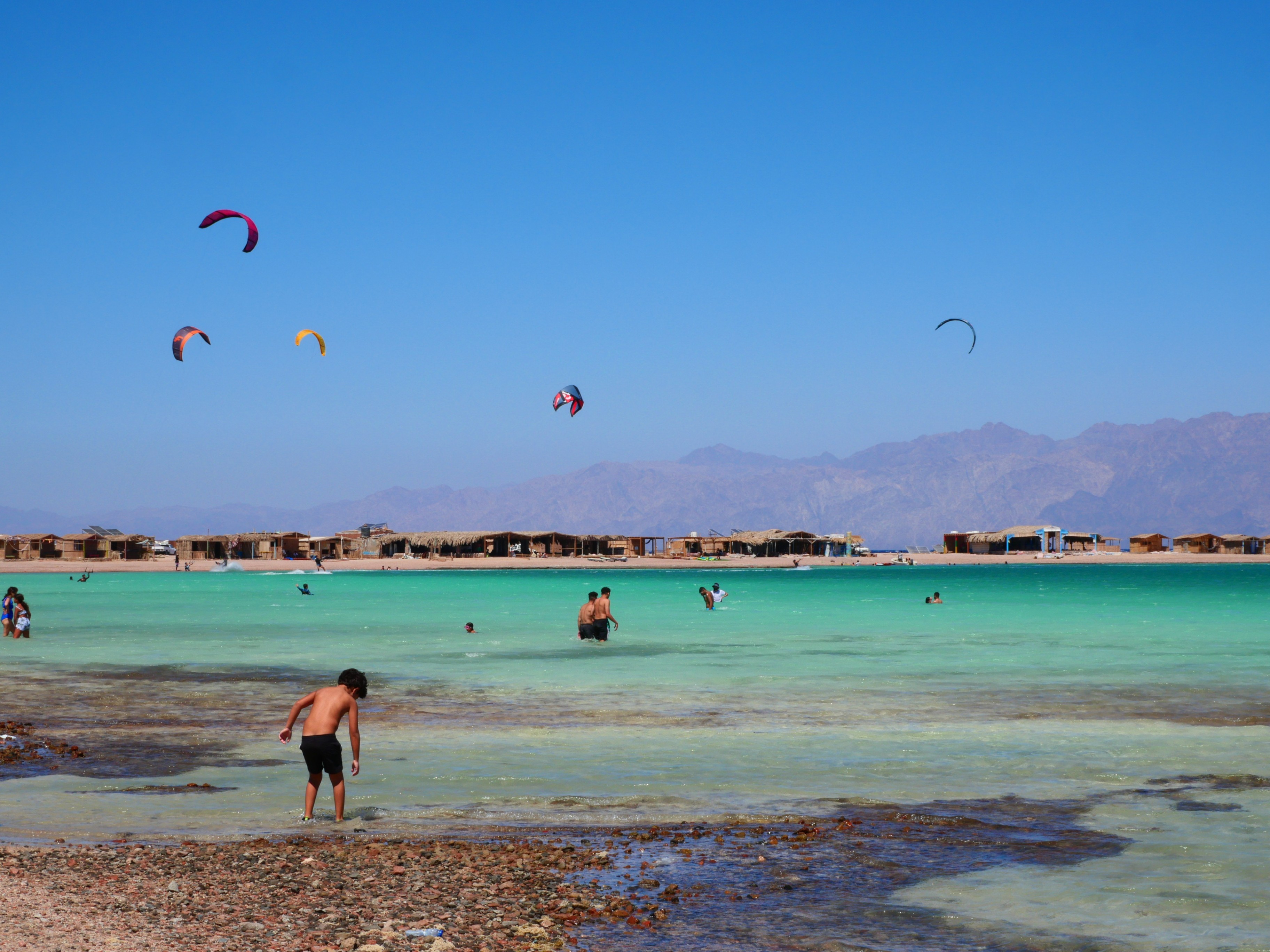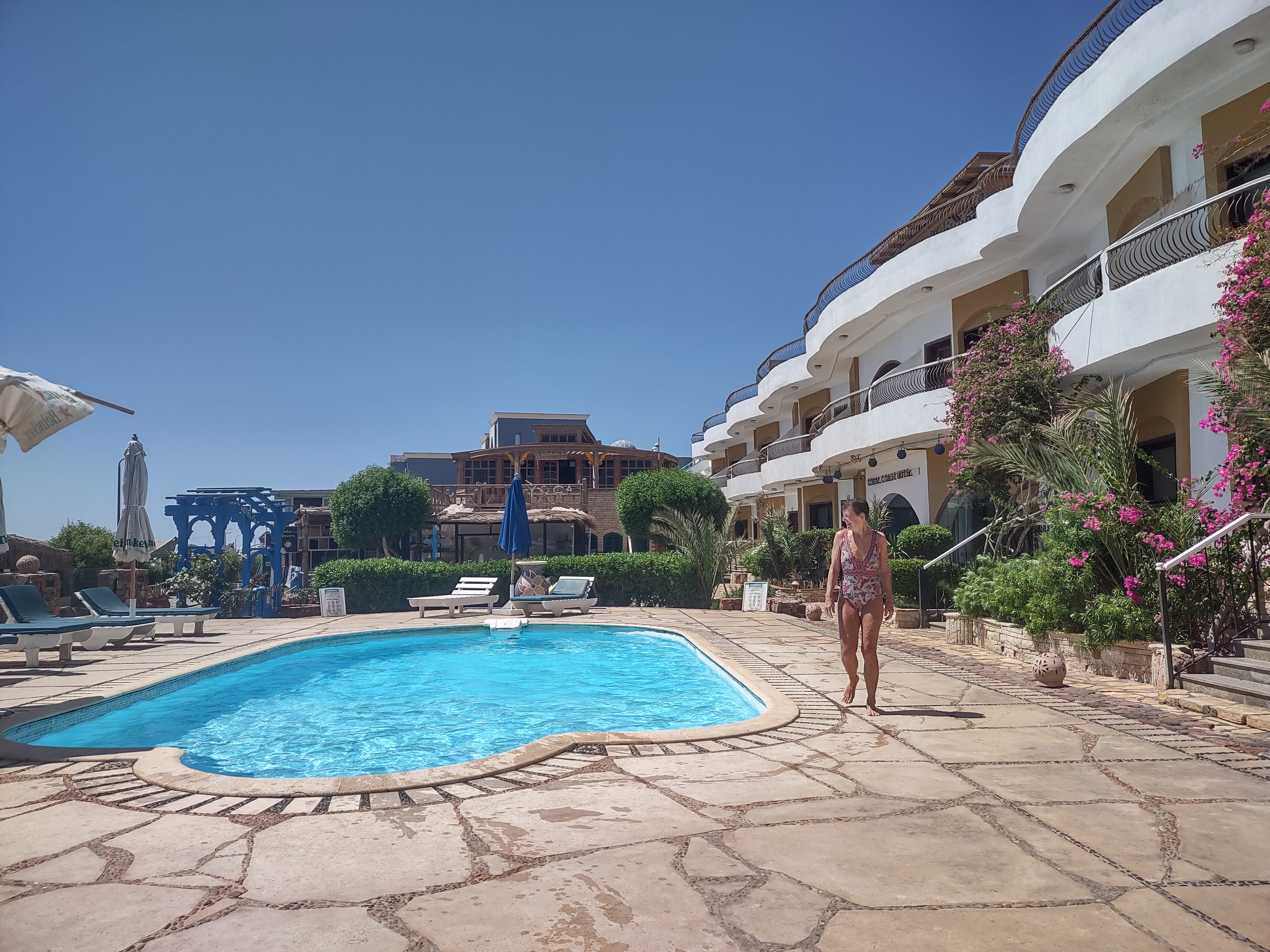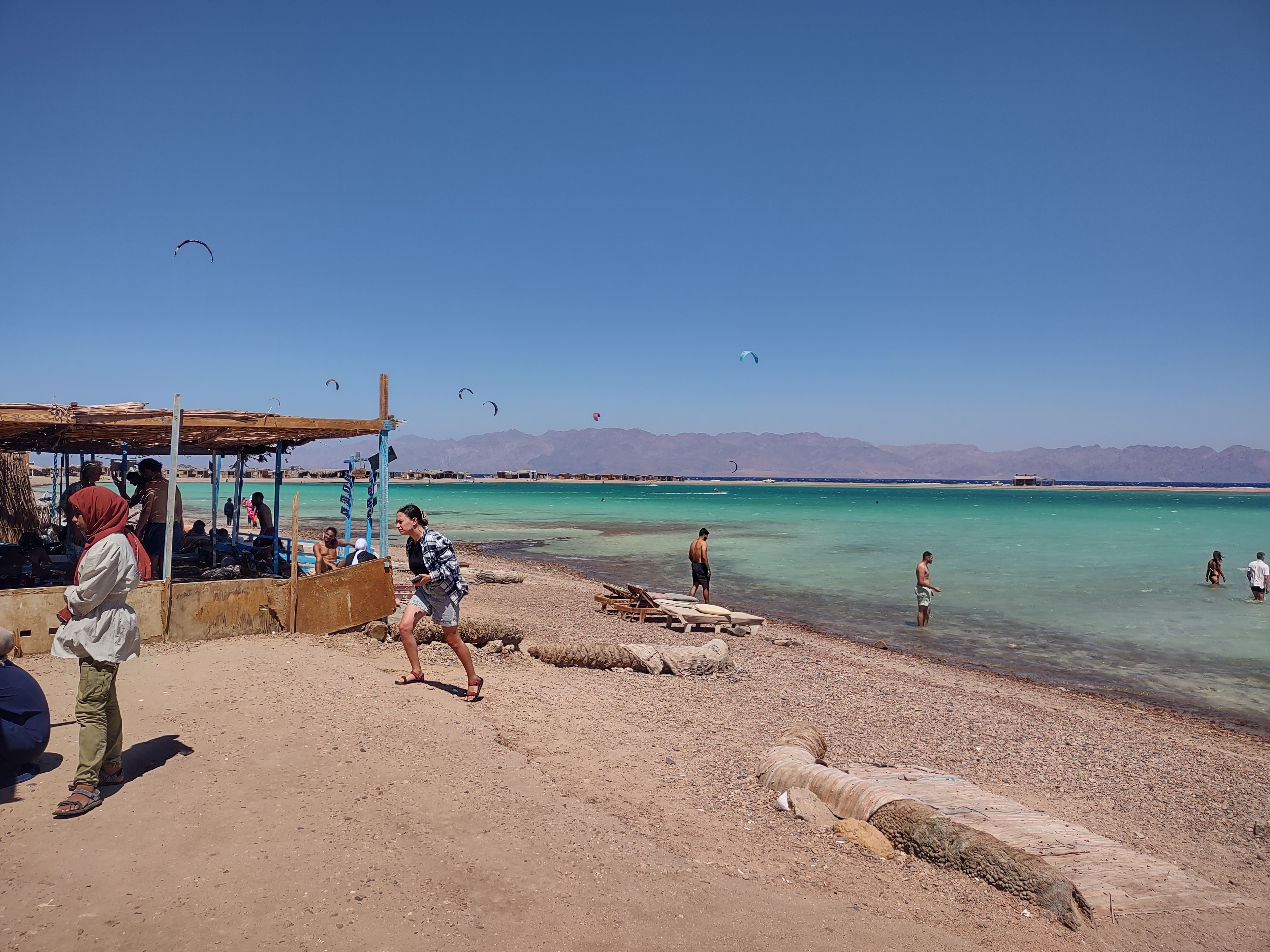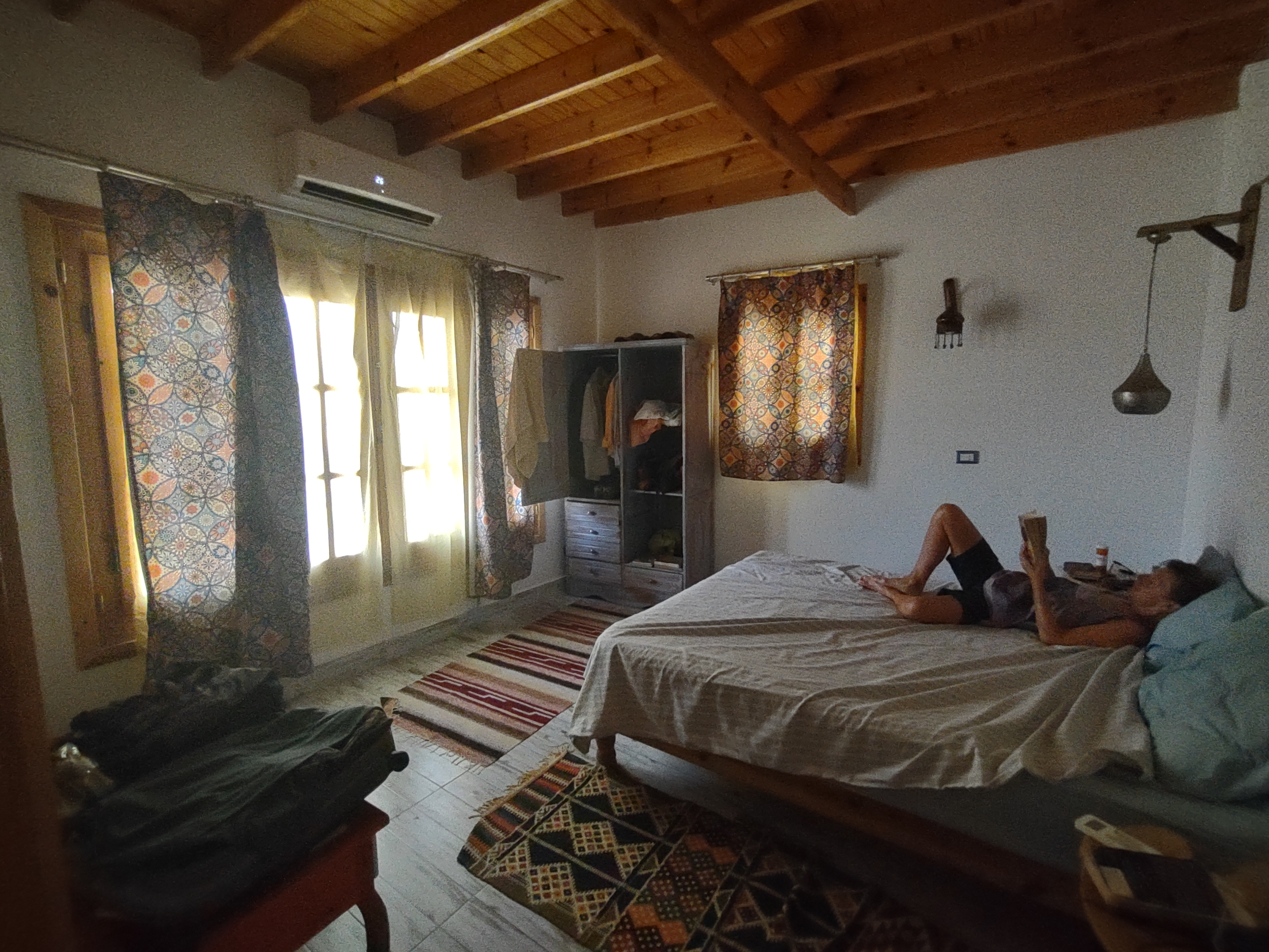 Which brought us to Egypt. We looked at the Mediterranean coast, but everything seemed to be either big resorts or very big vacation houses. We looked at the South Sinai peninsula on the Red Sea and ruled out Sharm el Sheikh, the major resort city on the peninsula, and had all but given up when we came across what looked to be a nice little affordable house near the beach in a small town called Dahab. Knowing that long-term rentals evaporate quickly, we did enough research to make us wonder how we had not heard of Dahab before and then booked it.