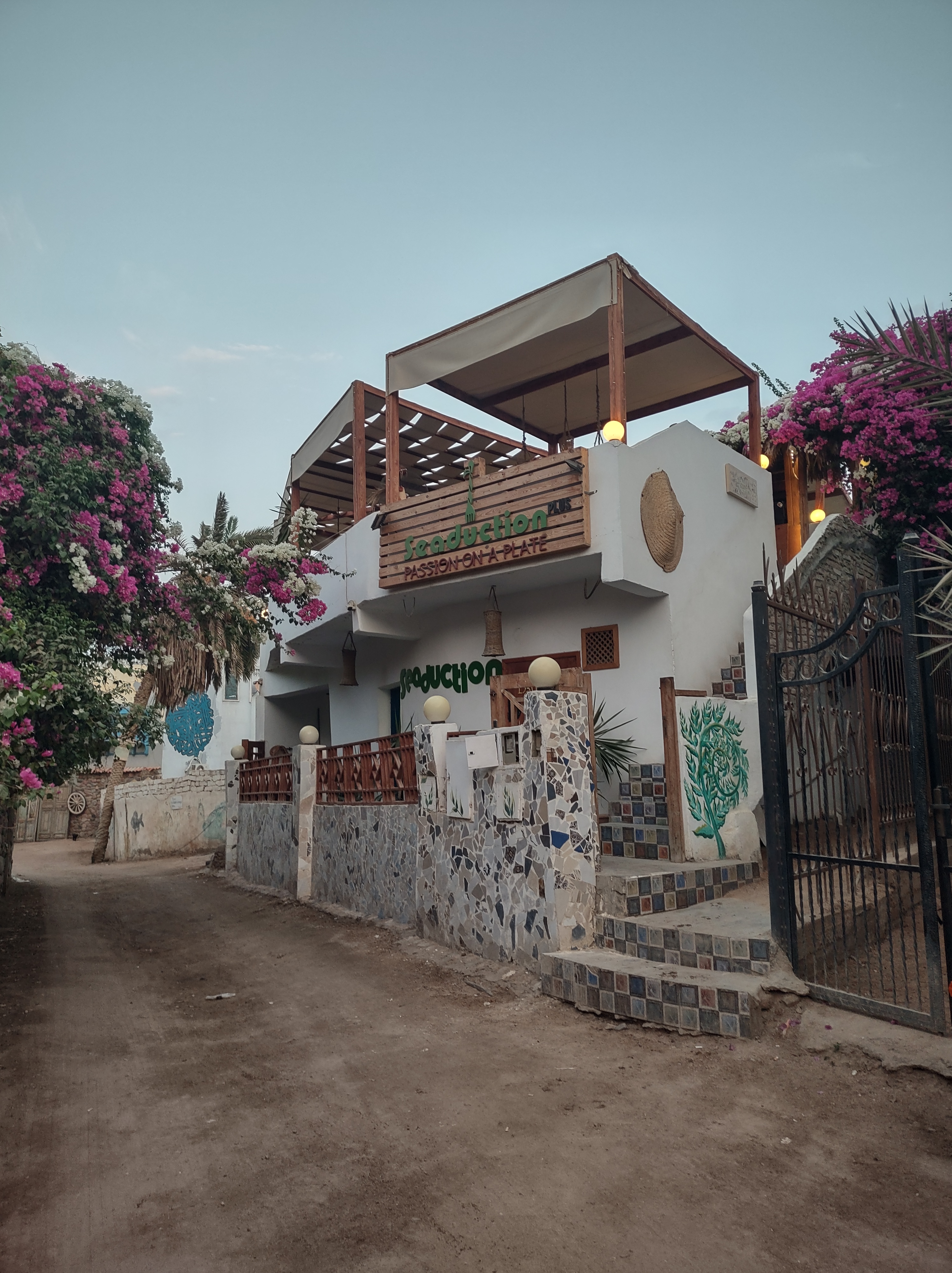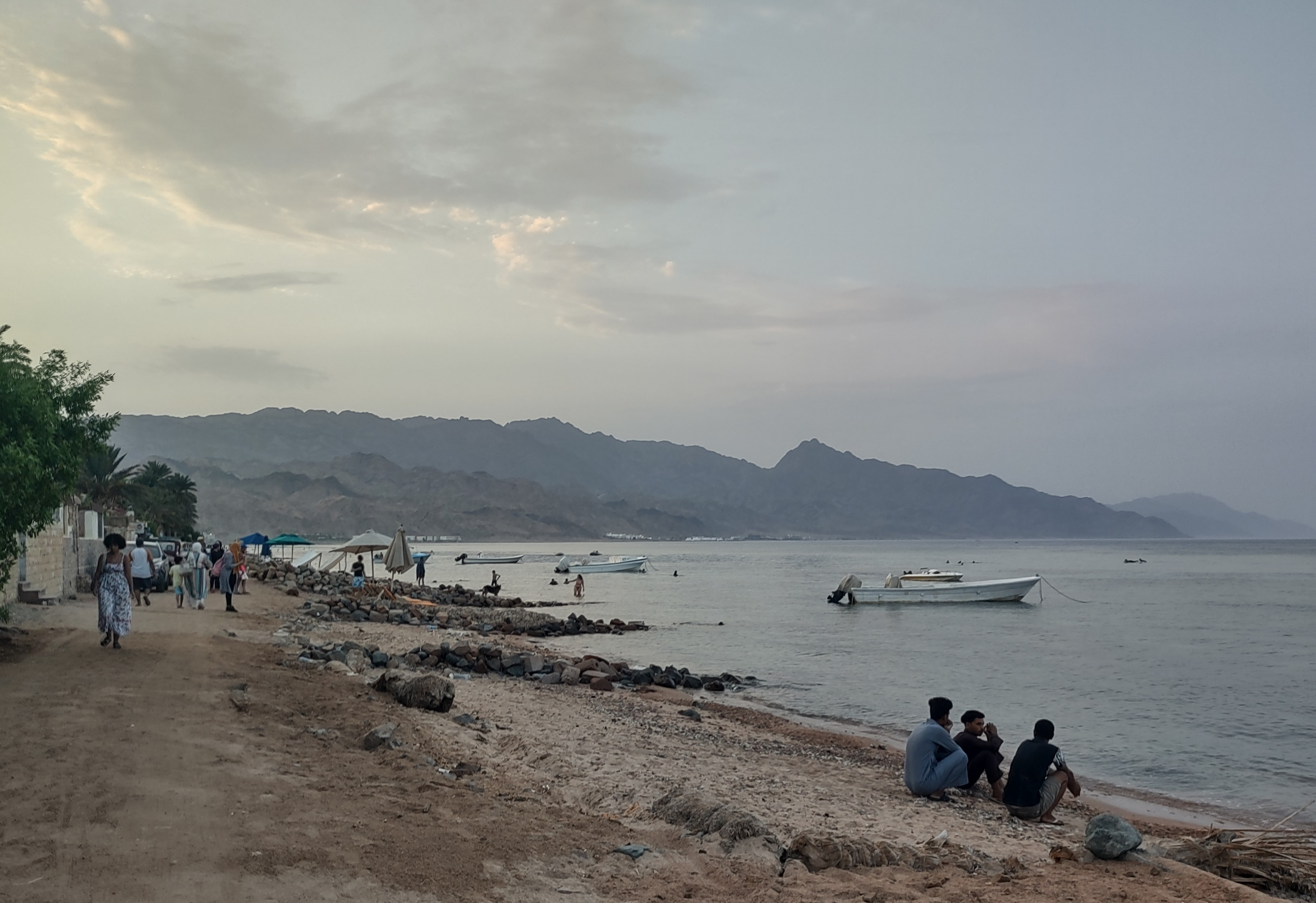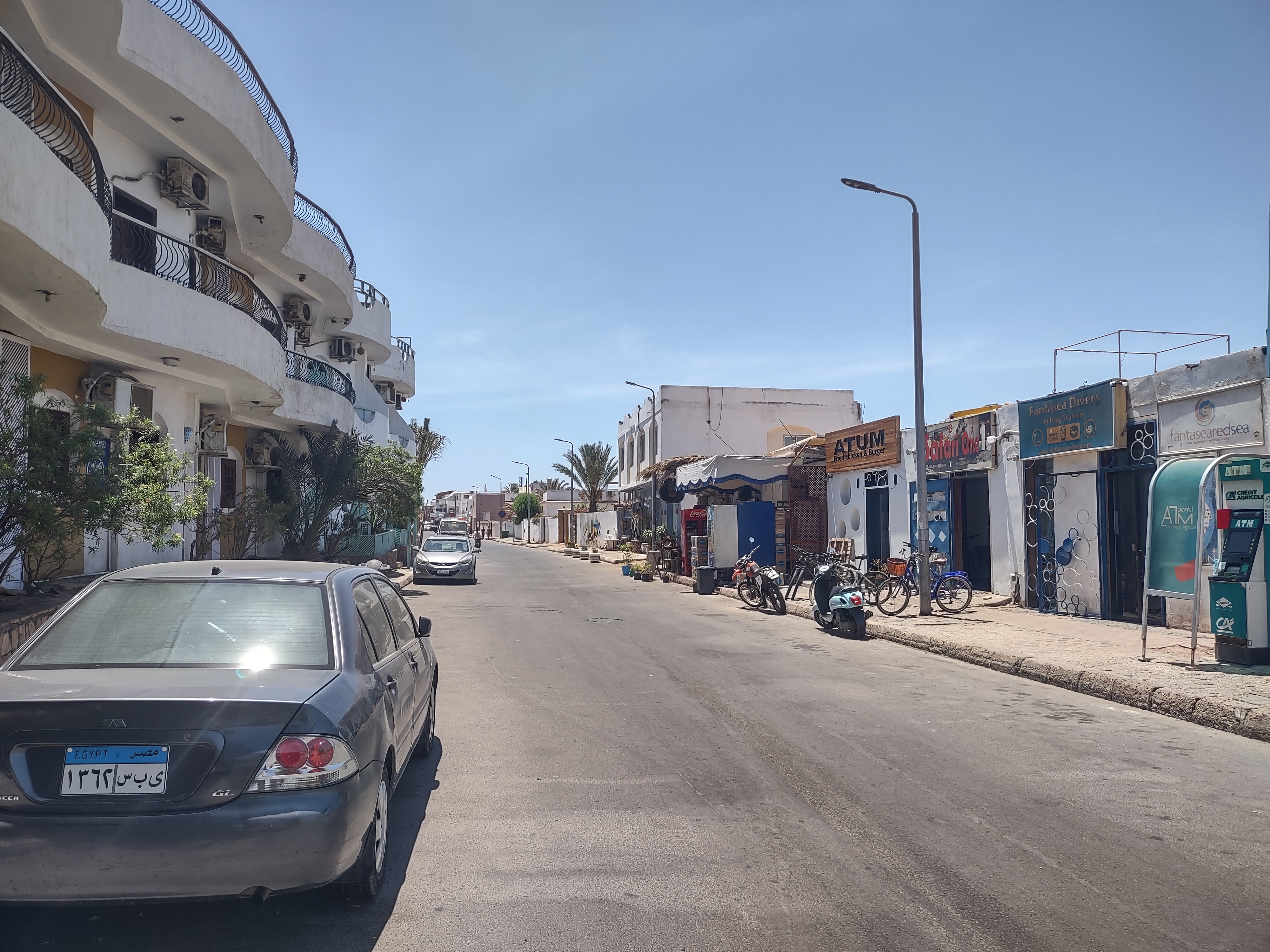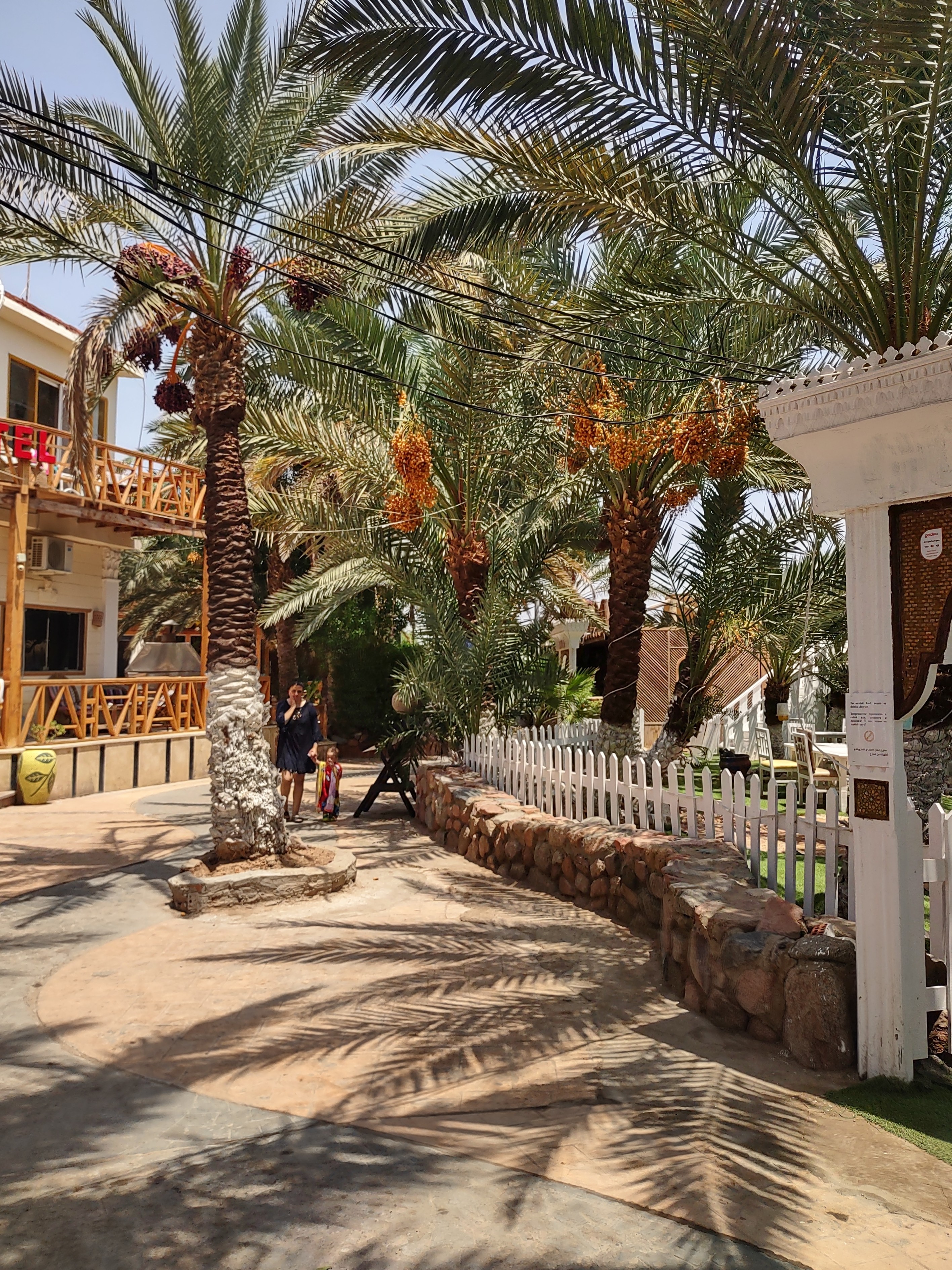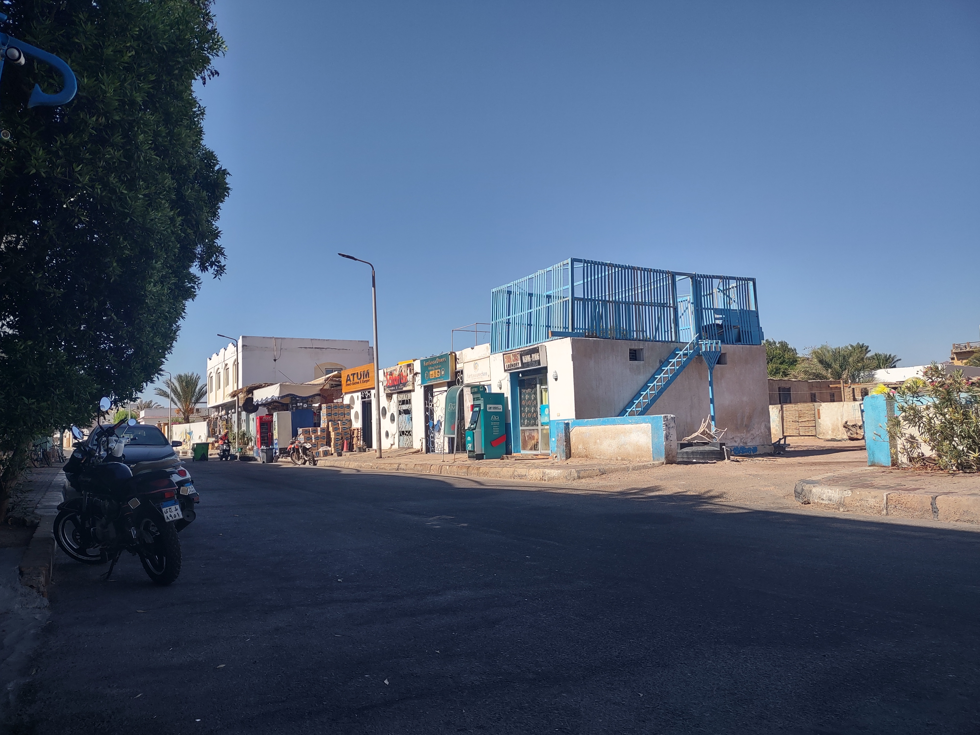 The house we rented in Dahab was located in the Eel Garden neighborhood, on the north side of town, on a small quiet alley just a block from the beach. We booked it without knowing much about Dahab or its neighborhoods (there are almost no online resources on Dahab which aren’t hotel booking sites) so we were perhaps a bit lucky and quite pleasantly surprised to find that the Eel Garden neighborhood was a pretty good fit for us, peaceful and quiet but with most of what we needed in reasonable walking distance (most especially, easy beach access). Along the Promenade, Eel Garden Beach has a nice string of small older hotels each with its own small beachfront area and, as you continue north, these transition to vacation homes and rentals and the Promenade opens up on the ocean side providing spectacular views of Saudi Arabia across the Bay and of the Sinai Mountains to the north.