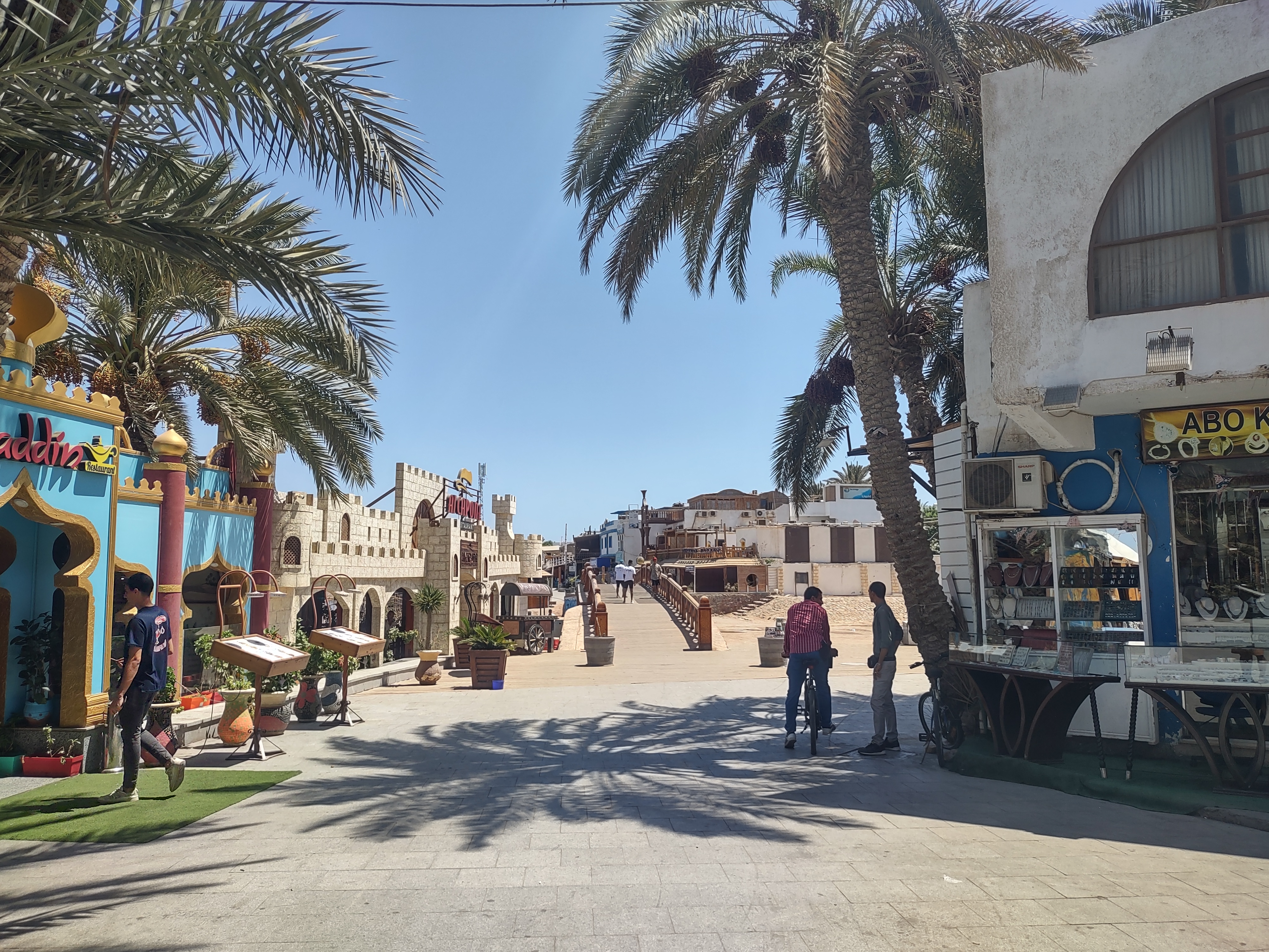 While activity was more subdued during the heat of the day, the Promenade and the streets which serve it were generally the center of activity in town both day and night. We were in Dahab during the hottest time of the year (see Hot as Hell below) which is their “low” season, but we were happy to find that, low season or not, everything seemed to be open and operating, and things were still pretty lively in the evenings. It’s difficult to know how crowded things might get during cooler months, but the town appears to have a lot of capacity with what seemed to be hundreds of hotels and restaurants. While Dahab is definitely a tourist destination, it was interesting to note that the majority of tourists were Egyptian (most whom seemed to be from Cairo) with the rest being Europeans and a few Asians, but nary an American to be found except us.