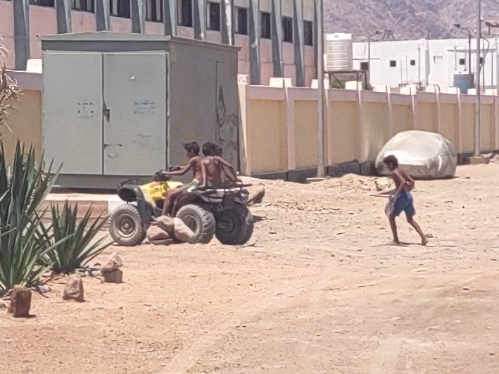 Eel Garden adjoins Assala, the older Bedouin part of town, which gave us access to quite a few local shops and restaurants within only a few blocks. Our place was near the end of a small alley off Eel Garden Road, an unpaved road with very little vehicular traffic which runs through the center of a residential area. Most of our immediate neighborhood was walled courtyard houses with little to be seen from the street, but there was a large elementary school around the corner and a kind of park and social club down the street both of which were the center of some evening activities. While there were some vacation rentals in the neighborhood, there were also many permanent residences and, while the neighborhood was generally very quiet and still during the day, neighborhood children appeared in the afternoon and played in Eel Garden Road into the evening (marbles appeared to be popular among the boys).