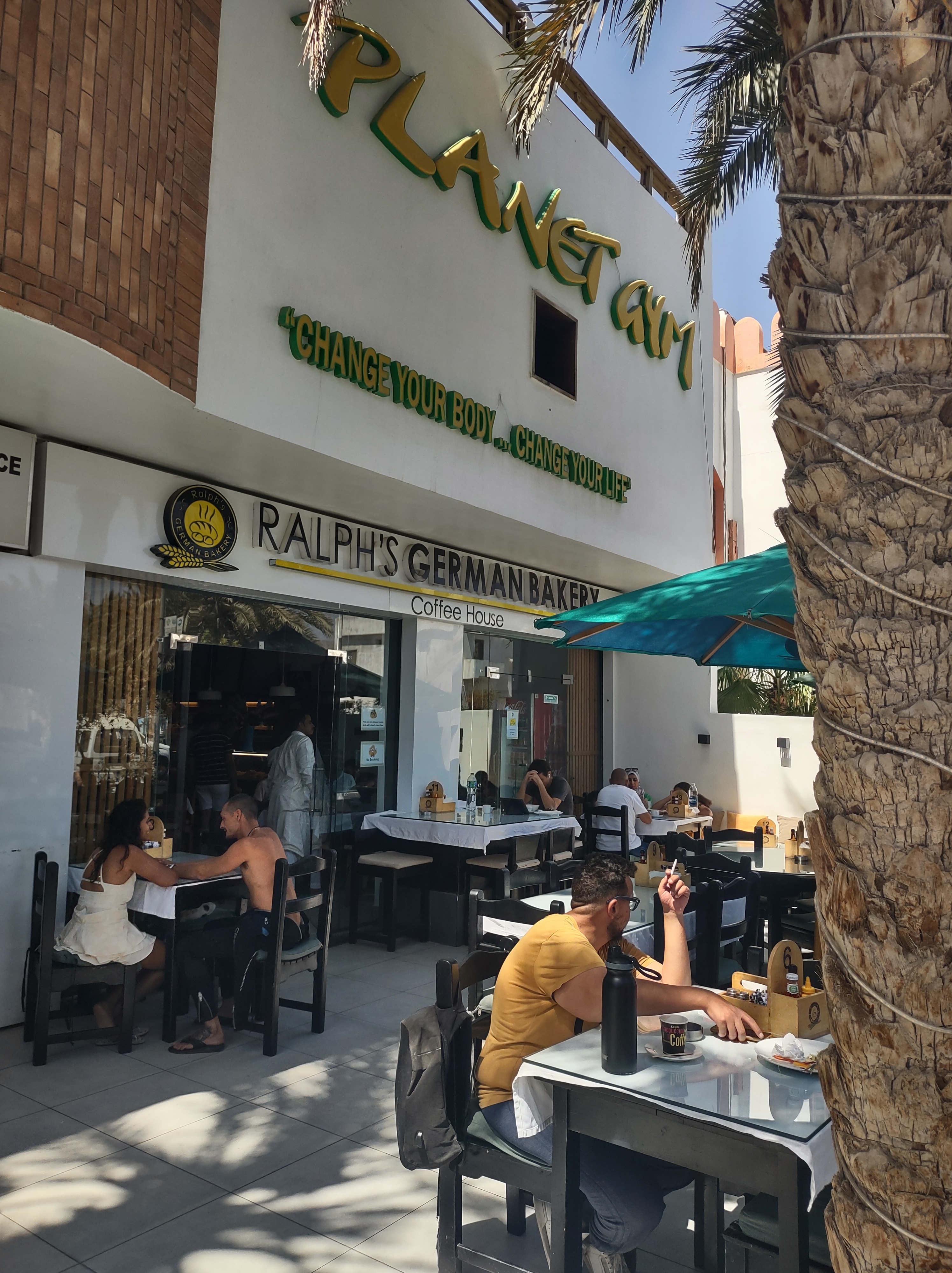 As regards drink, we again found ourselves in a house with no proper coffee making set-up and continued the unfortunate but necessary habit of Nescafe instant coffee at home, which made it even better when we could grab a good coffee or cappuccino at Ralph’s or Schoenemann’s. While there were a couple of legitimate bars in town, none of the places we ate and drank in Dahab served alcohol of any sort, so we quenched our thirsts with mint lemonade, mango lassies, and fresh squeezed juices. We were able to purchase beer and wine, as well as very cheap vodka and rum which, once we discovered the availability of freshly squeezed lemon and other juices, led to a cocktail fiesta at home.