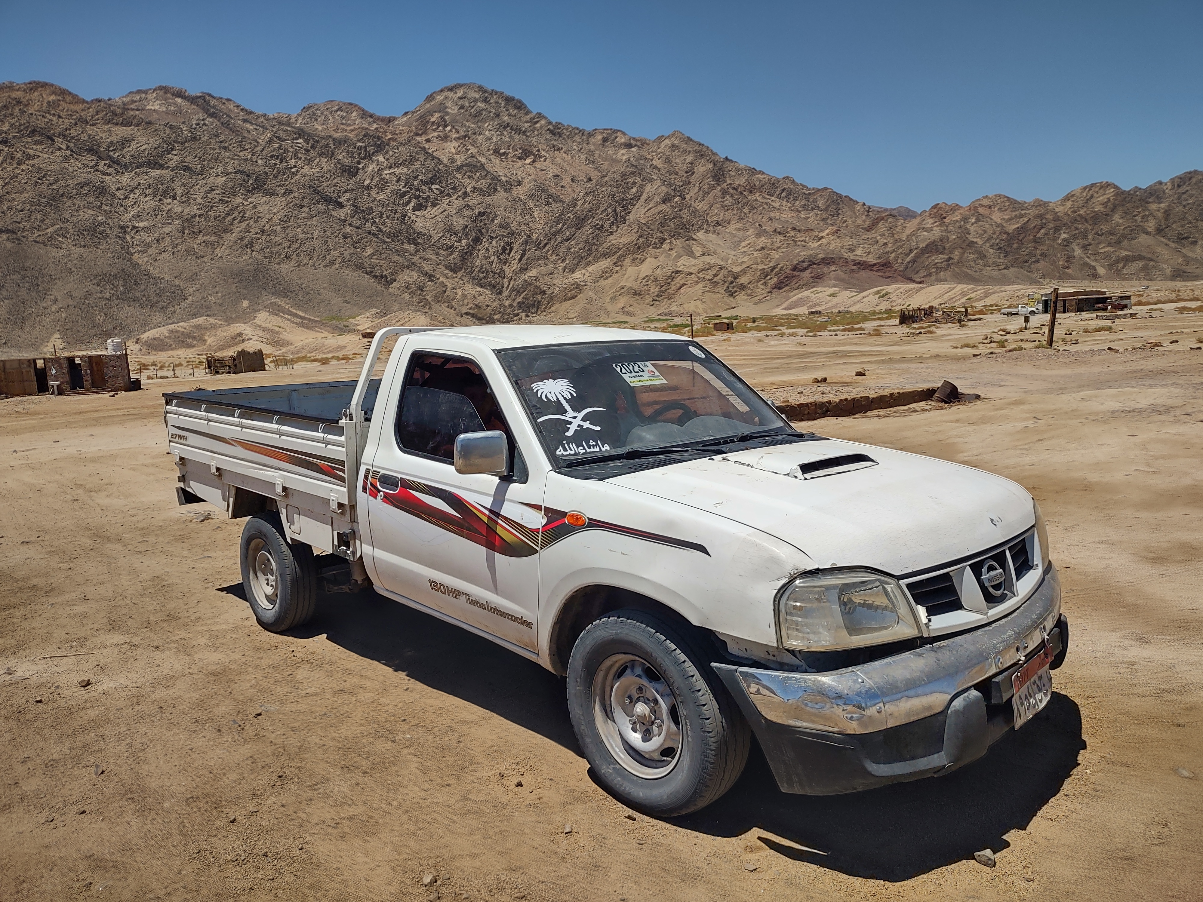 Dahab is one of those places where taxis seem to be congregated on every street corner and you have to work pretty hard to not get run over by or dragged into one of them if you are travelling the streets on foot. For clarification, in Dehab, while the term “taxi” can refer to any number of vehicles, the most common one is a vehicle called the “Luv” manufactured by Isuzu which a mid-sized four-passenger pick-up truck. We had a few laughs when we convinced one our brothers-in-law that it was a new model from Range Rover which had yet to be offered in the U.S. (it was a decal!) But, despite the proliferation of taxis, Dahab is less than 3 kilometers from north to south along the Promenade and so everything is pretty easily in walking distance with no need for taxis (except when schlepping luggage) or public transport (never even looked into it).