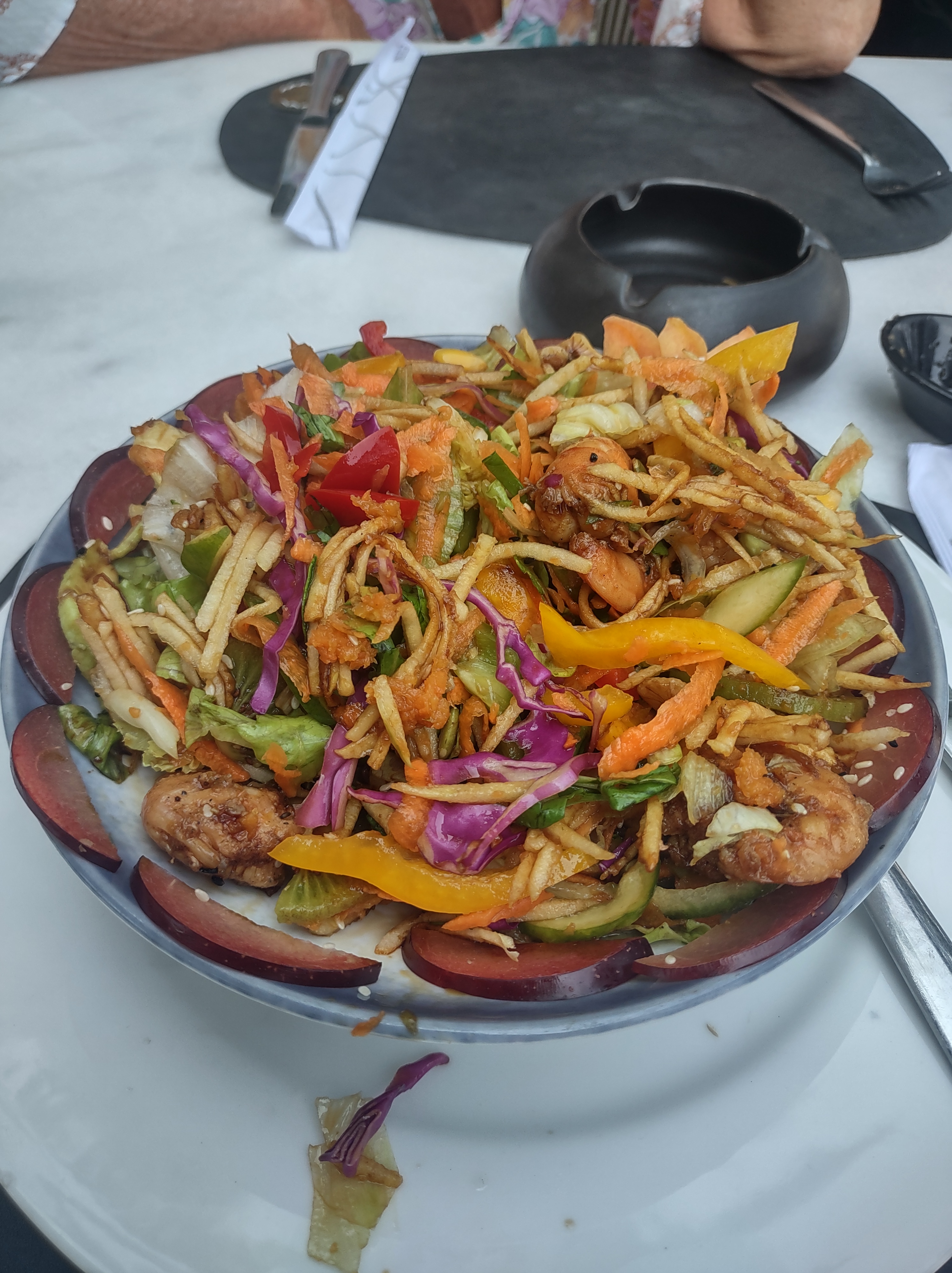 Another place we gravitated to for both lunch and dinner was a tiny place, honestly kind of a hole in the wall, called Lemongrass, a Thai restaurant pretty much directly across the street from the Lunch Box. I was attracted to the place by its name and also by the coconut lemongrass soup on their menu (I developed a love for lemongrass during our last trip to Thailand to such an extent that Colleen started growing it in her garden in New Jersey). Like Box Meal, they had a nice selection of appetizers (coconut shrimp was the best) as well as some really nice Thai shrimp and chicken dishes which had the kind of kick it was surprisingly hard to find at other places, and, oh yeah, the coconut lemongrass soup was awesome. I had it every time we went which was often enough that the proprietor, who was very kind and nice (although we never got his name) knew us on sight.