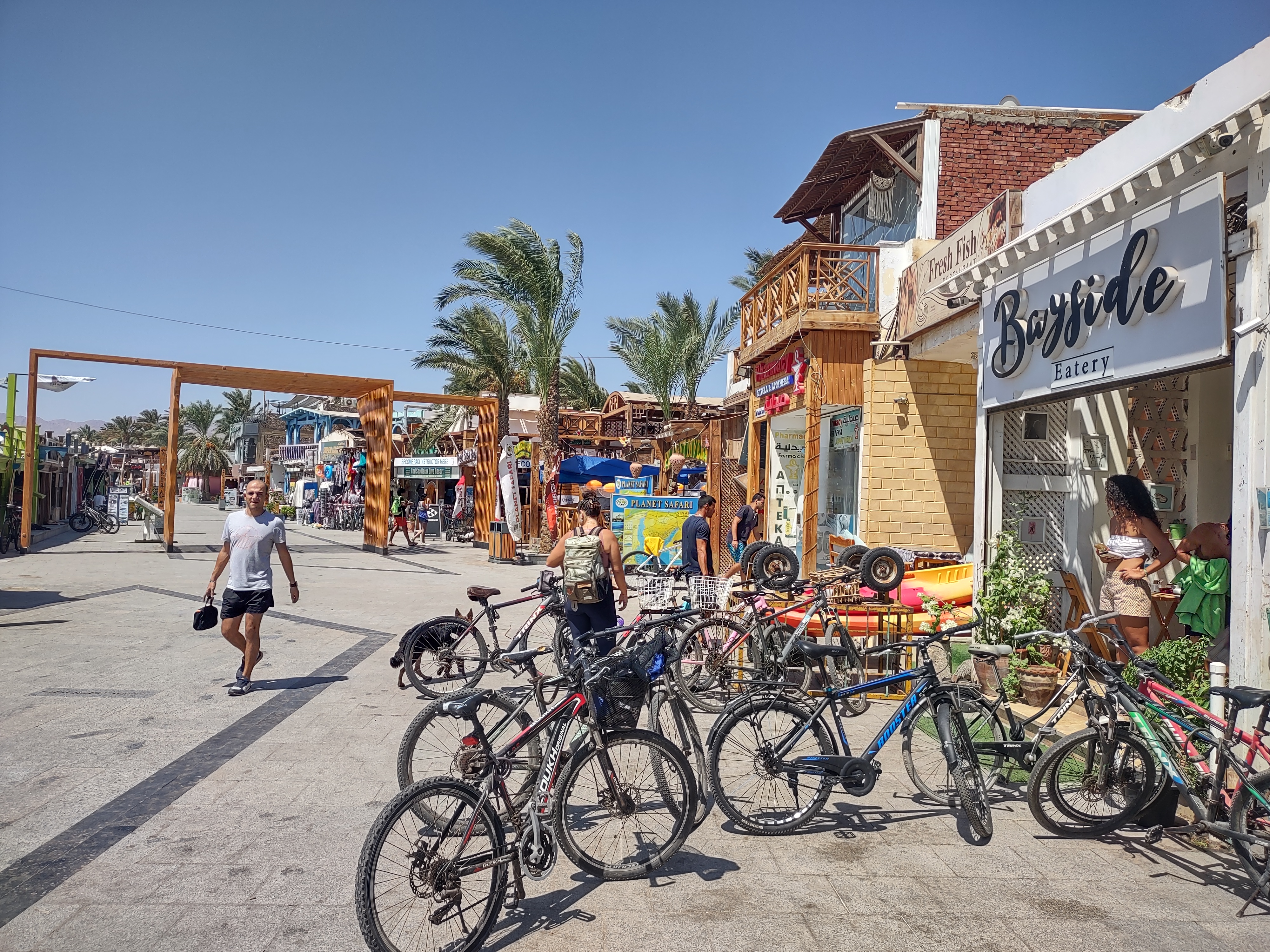 Due to spotty streetlighting and some very tight and crowded areas, we didn’t use the bikes after dark and again found things were better experienced as a pedestrian. Strolling the Promenade in the cooler evenings with a good sea breeze ended up being one of the most enjoyable things to do in Dahab.
