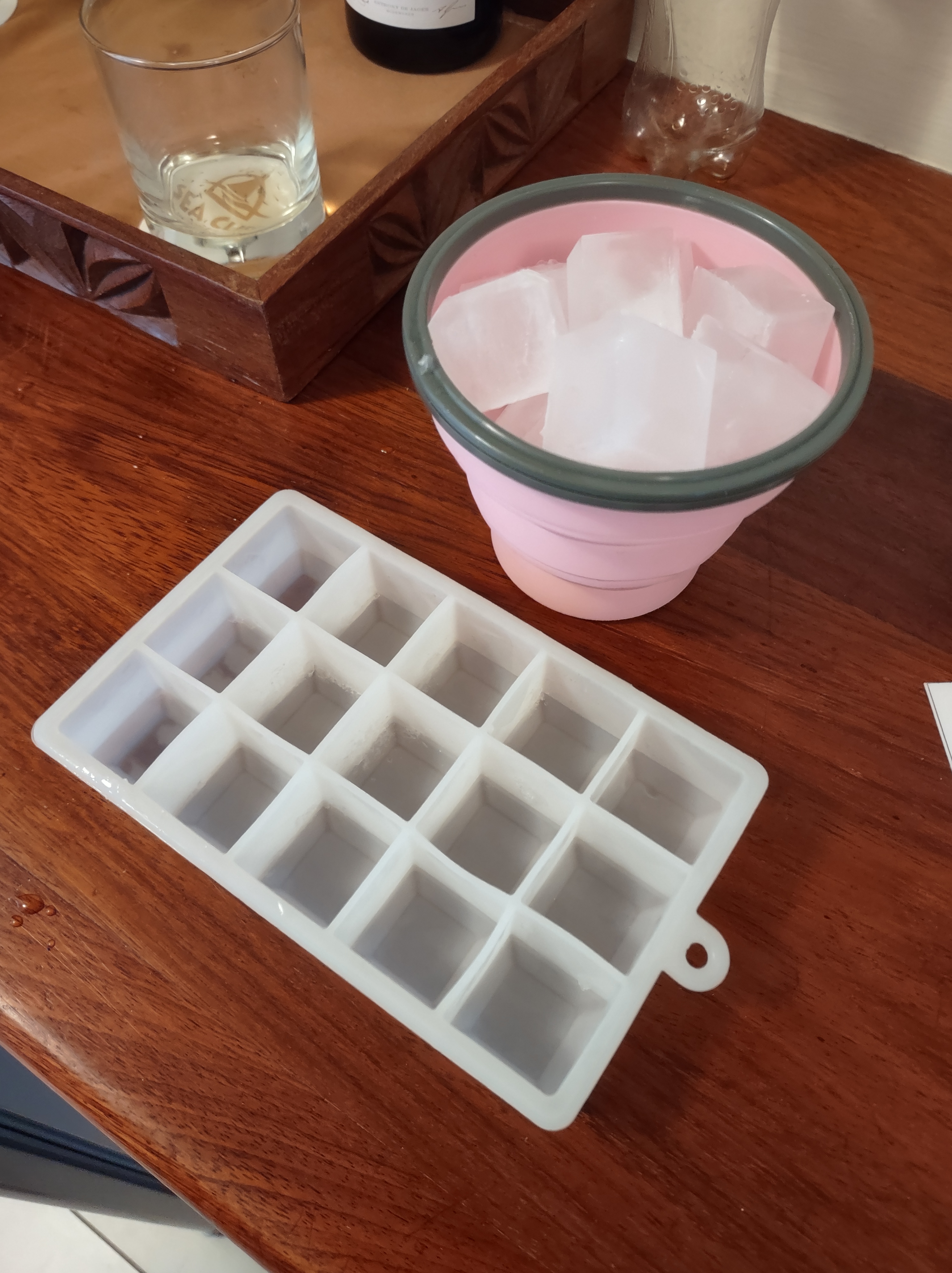 As I’ve written about before, it’s difficult to even find ice for sale in many countries (we discovered you buy it at gas stations in Buenos Aires). While we love it when we have a full-size fridge with freezer as we did in Dahab, the capacity of the more typical mini-fridge mini-freezer is a challenge for both storing and making ice and, even when they provide ice trays, these tend to be very cheap ones which make inferior sized cubes not suitable for a proper cocktail. So, after some frustrating moments early in the trip, I picked up a nice compressible silicone ice cube tray along with a collapsible ice bucket at Flying Tiger in Amsterdam, and have since, I think, raised ice making on the road to a science if not an art.
