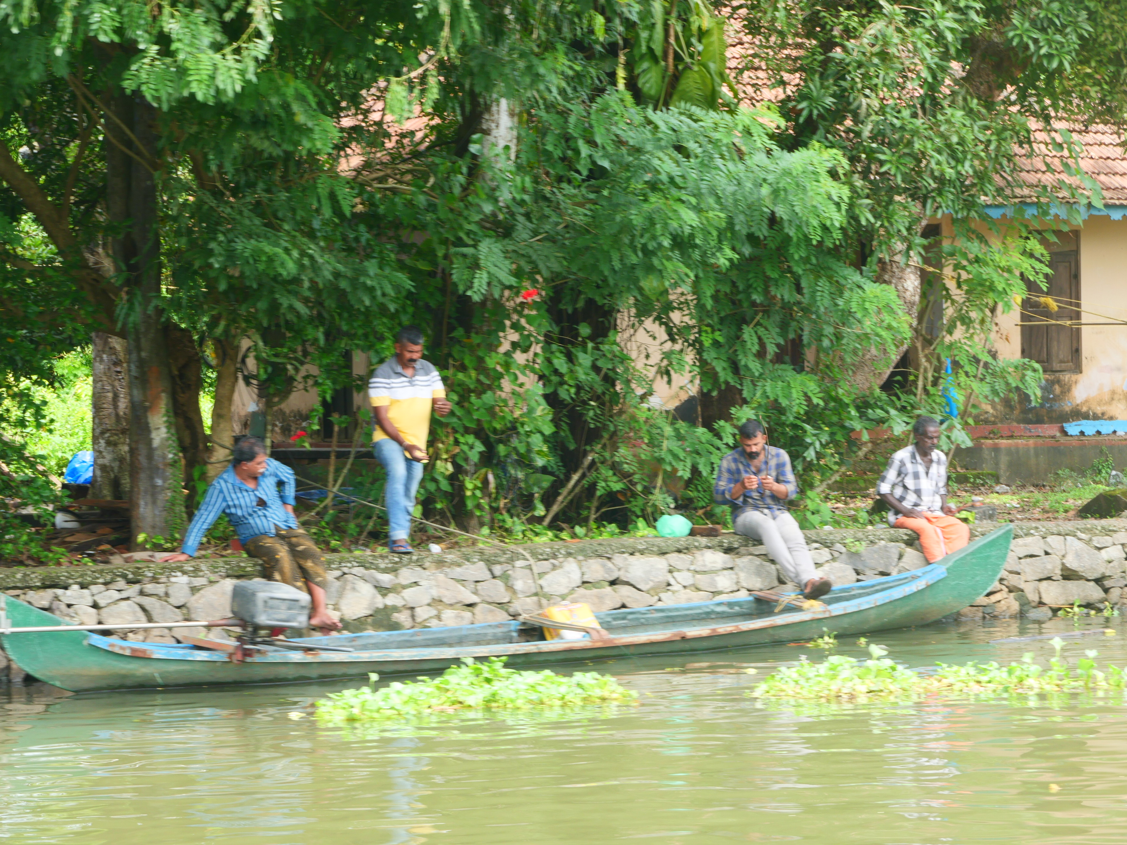 If there was one thing we came to Kerala to experience, it was a boat cruise in its world-famous Backwaters. Thankfully Swapna “knew a guy” and was able to get us set up for a private half-day cruise for a bit less than we had expected to spend. There are a variety of boats offering a variety of cruises from do-it-yourself kayaks to very large houseboats offering overnight cruises with dining and dancing. Based on some research, we went for one of the smaller boats which could make its way into some of the smaller canals and was affordable enough for the two of us to have a private tour.
