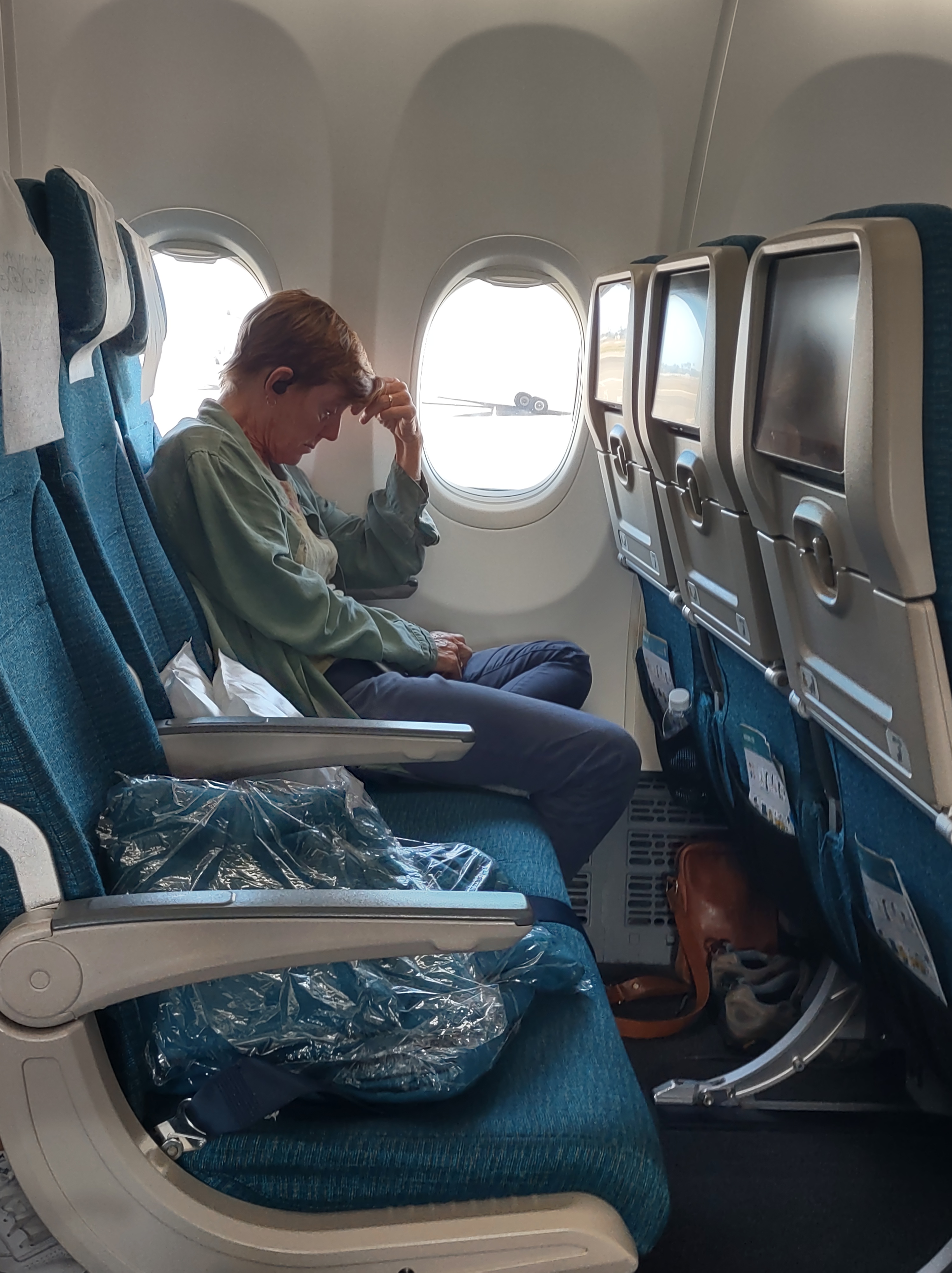 As we queued and boarded our flight, we concluded that we were the only non-Arabs on board and found that we had been seated in in the very last row of the plane in non-reclining seats. (Coincidence? Maybe…) Even more strangely, while the plane was relatively full, we noted that there were two completely empty rows between us and the rest of the passengers on the flight. (Really wondering now, were we profiled based on our names?) Not to look a gift horse in the mouth, once the cabin doors closed Colleen made a move (which I shortly followed) to one of the empty rows in front of us where we were both able to stretch out and do something closely resembling sleep for most of the flight!