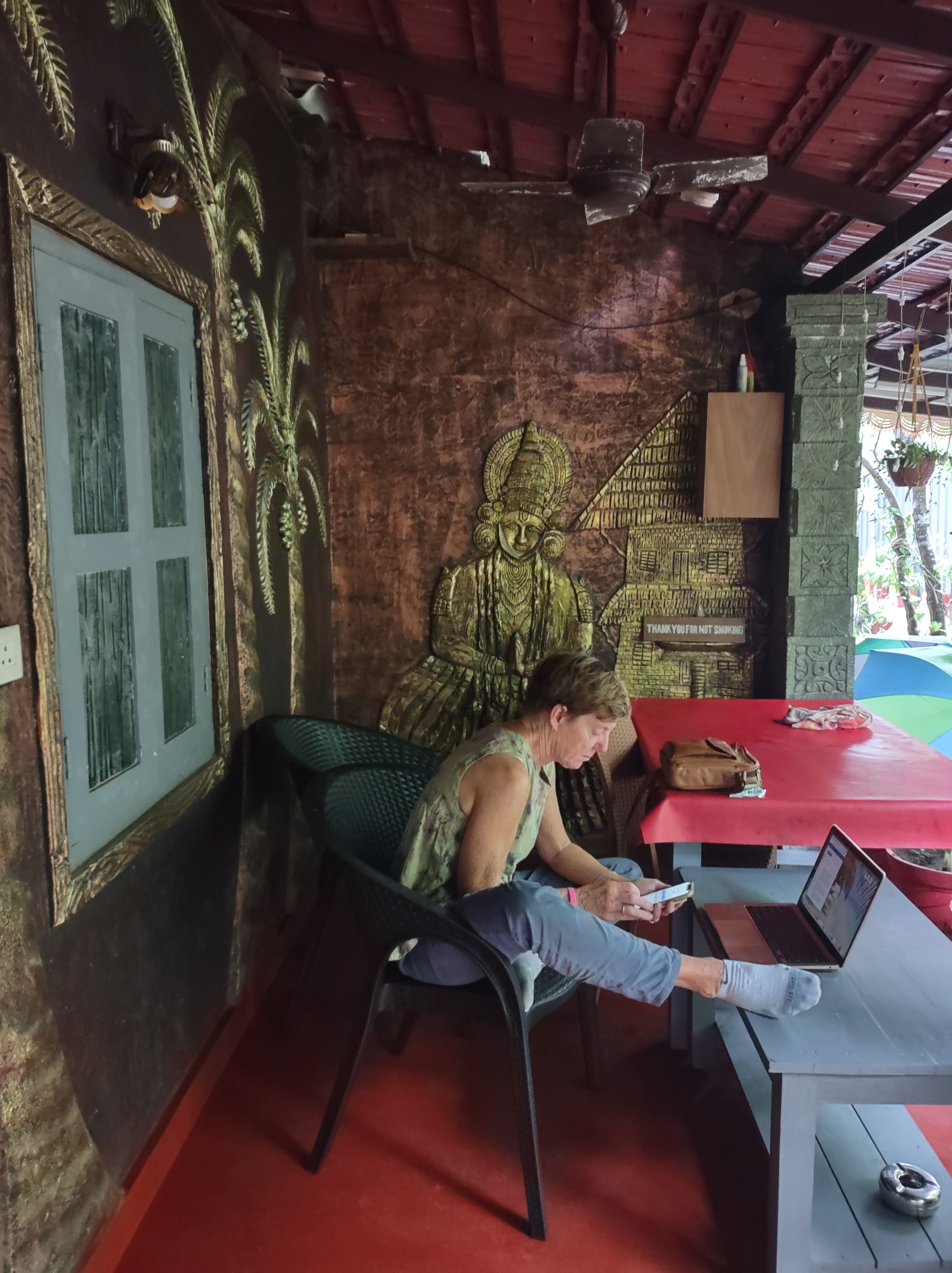 I mentioned to our host, Swapna, that I was interested in yoga if she knew of any classes or teachers nearby. She arranged for me to go the next morning to meet with someone “down the road by tuk-tuk”. So, early the next morning I headed out with Swapna to the road and sure enough a tuk-tuk pulled up and I hopped in. He dropped me the Amma Ayurveda where a man was waiting.