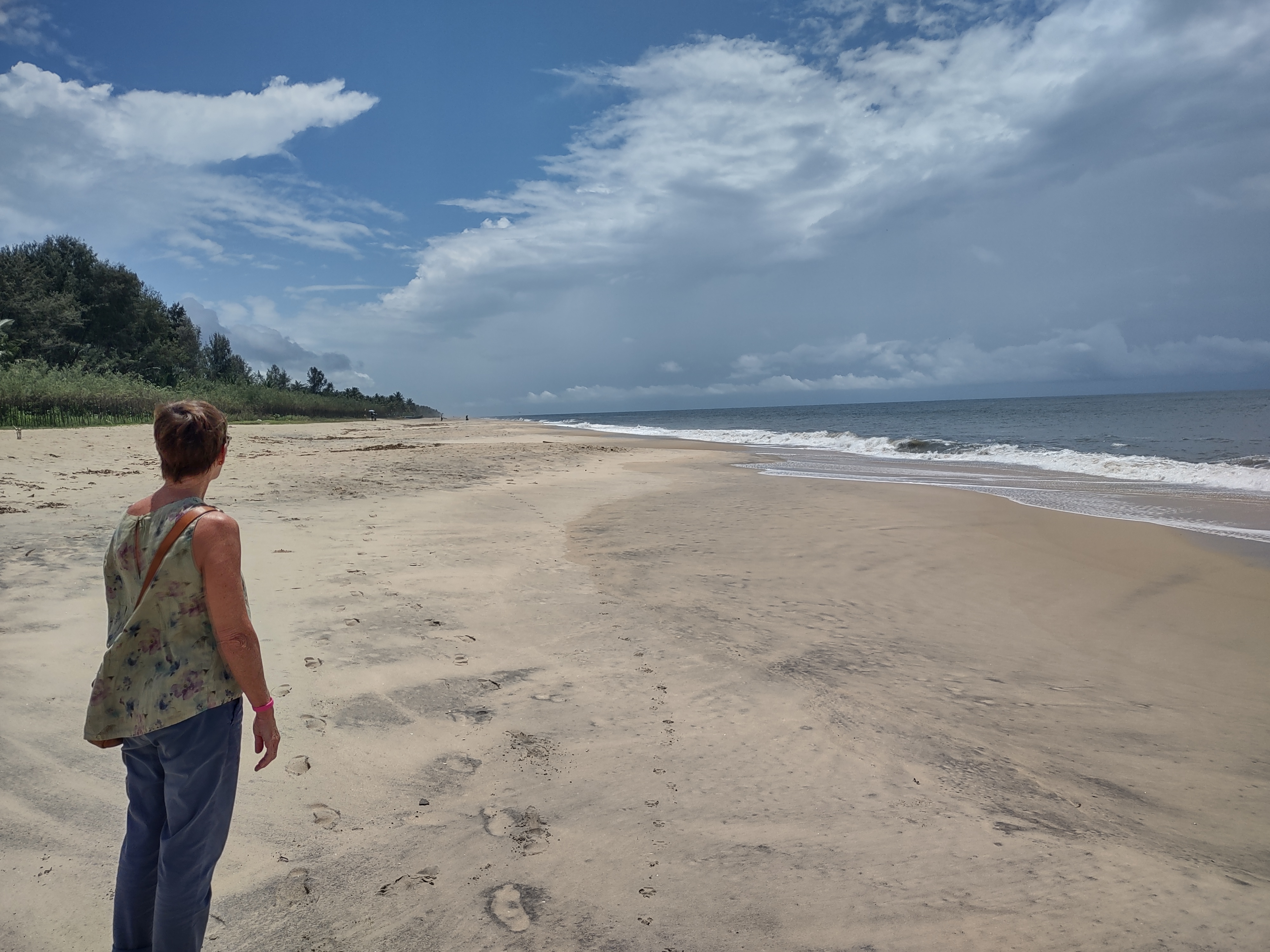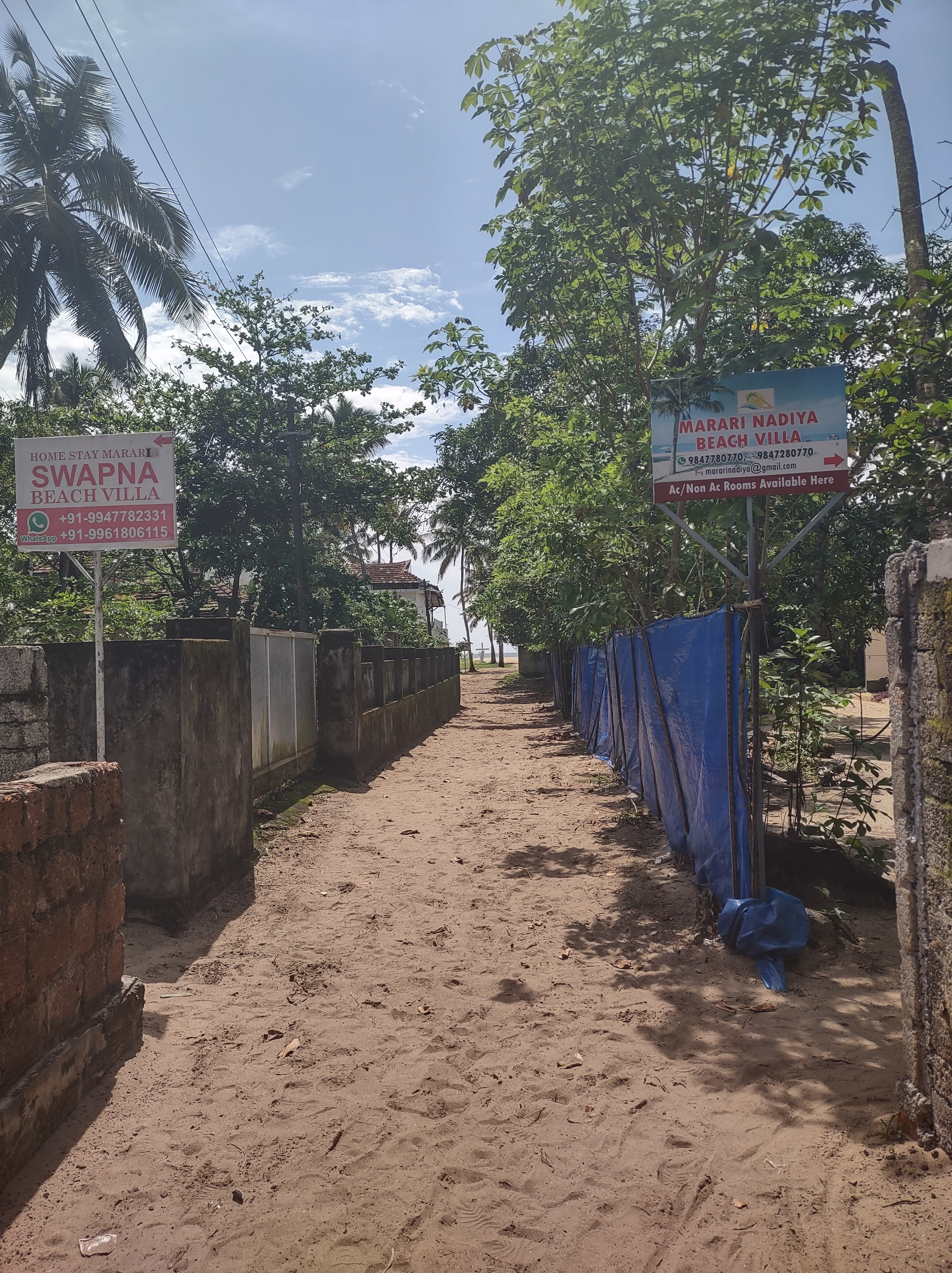 As we continued south, the larger buildings fell away and the trees and greenery took over which, combined with the high humidity and occasional rain gave things a very jungle-like feel. One thing that did surprise us was the number of Catholic churches we passed along the way, which we would learn more about later. After a couple of hours, we arrived at Marari Beach Road, a dirt track which turned into a sand path leading to our home for the next week, the Swapna Marari Beach Villas where we were greeted by our host Binoy.