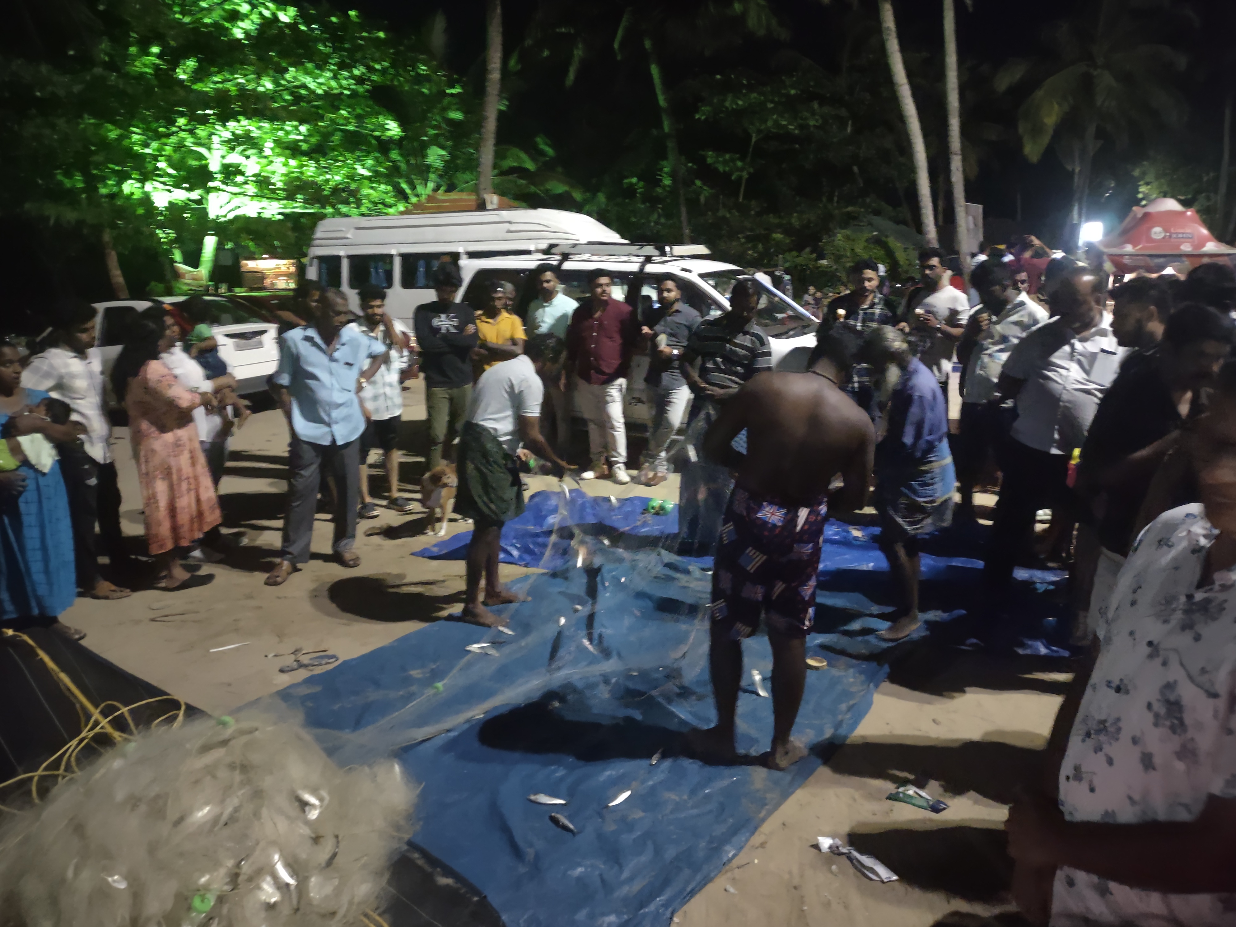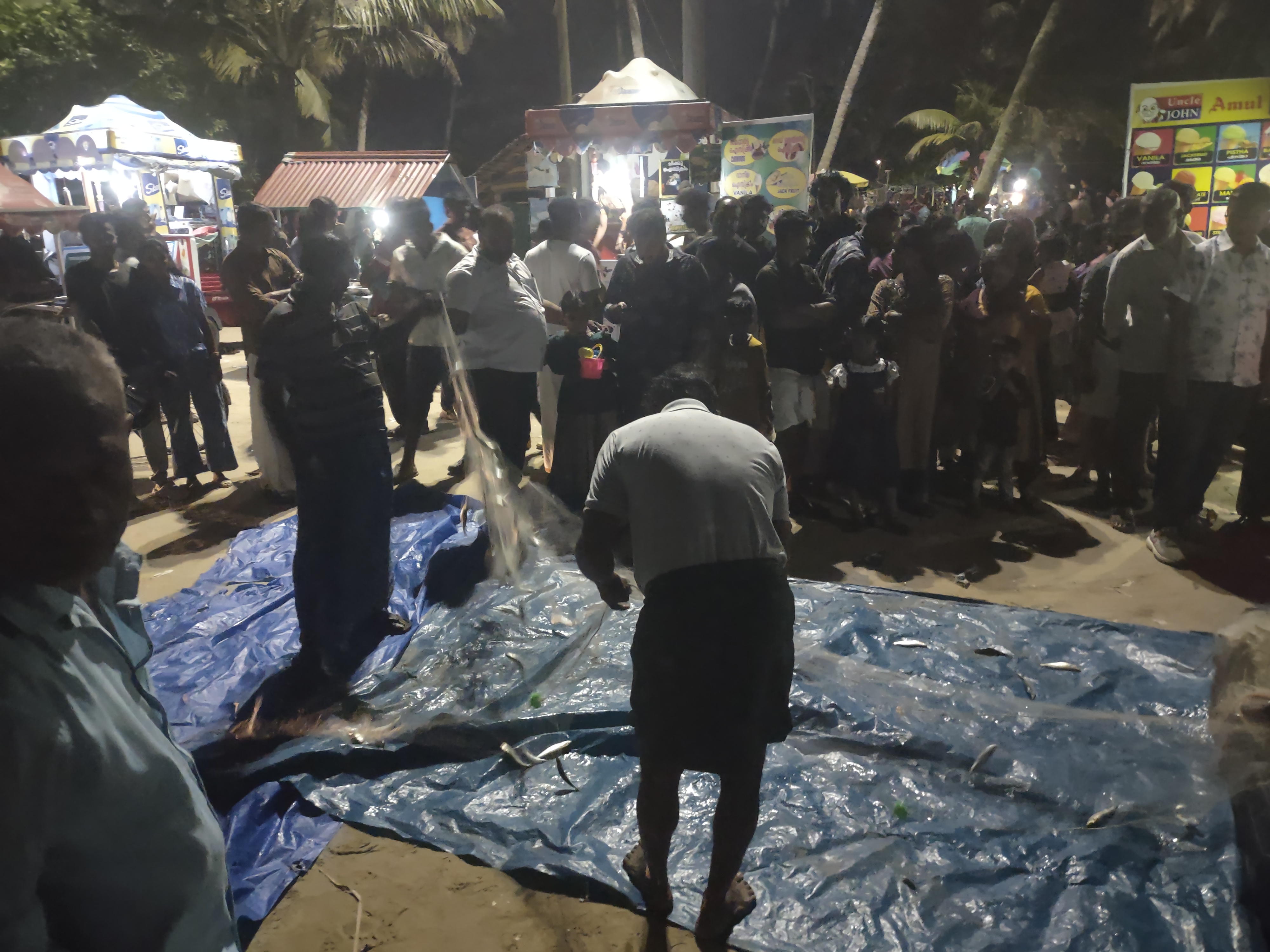 There was not much happening in Mararikulum during the day, but in the evenings local families and vacationers gravitated toward the beach to watch the sun set, stroll, and enjoy an ice cream cone or some other treat. On our first night there we discovered that one of the popular local activities was to watch the fisherman extract and sort the small fish they had caught from their nets, which always seemed to attract a crowd.