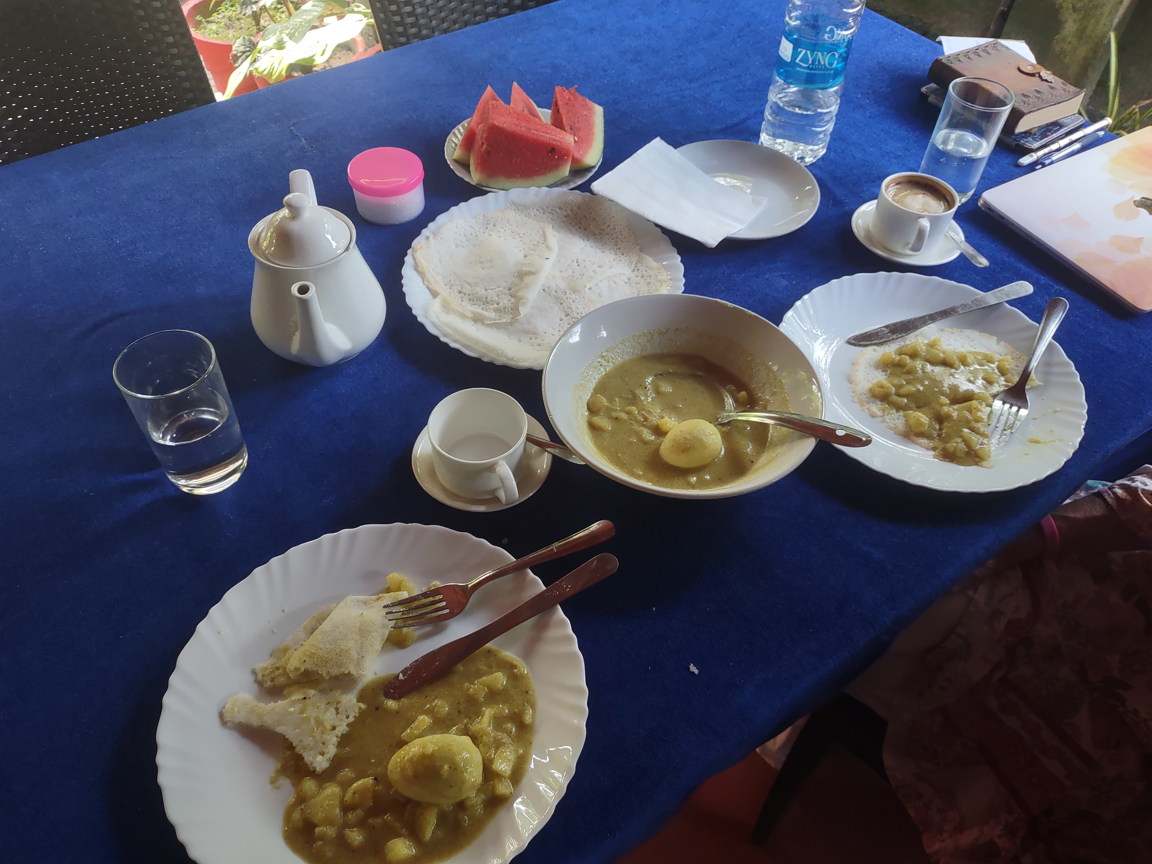 Swapna prepared breakfast for us each morning and also cooked dinner for us on a couple of occasions and, as a result, we had the opportunity to sample a wide variety of traditional Keralan cuisine. Breakfast highlights included coconut pan rolls, egg curry and hoppers (coconut laced rice flour pancakes), and “Idlis” (pronounced “id-lees”) a savory rice cake that always makes us laugh when we see it. (When practicing the alphabet with Colleen, Aquino would always say “I is for Idli!”.) Dinner entrees included chicken curry and fresh fish grilled Kerala style along with a variety of sides including something called “ladyfingers” which turned out to be okra (one of my favorites), but prepared in a completely different fashion. All in all, a great introduction to southern Indian/Keralan cuisine!