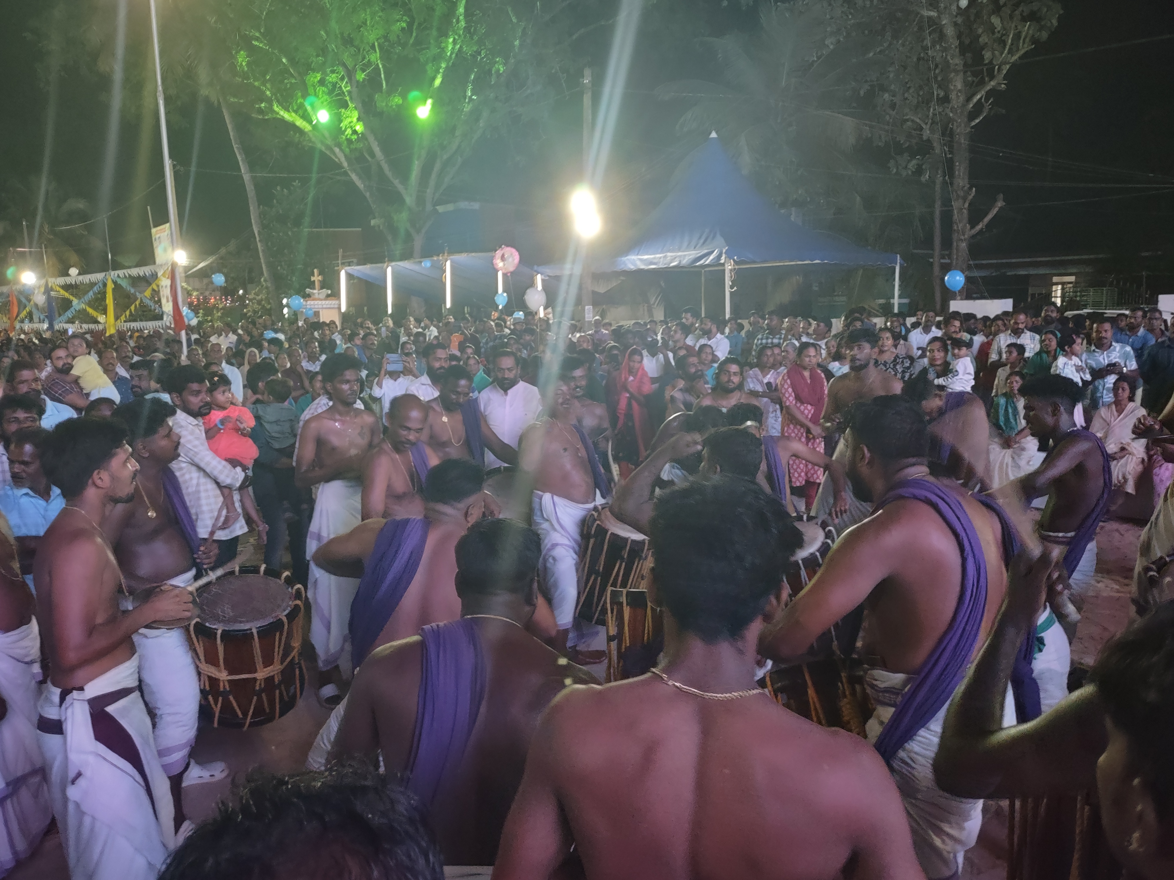 As the fireworks ended a group of men garbed in traditional dress with drums of various shapes and sizes, emerged from the crowd and gathered in a cluster, then began an intense fervent drumming which quickly had the crowd clapping and chanting along.