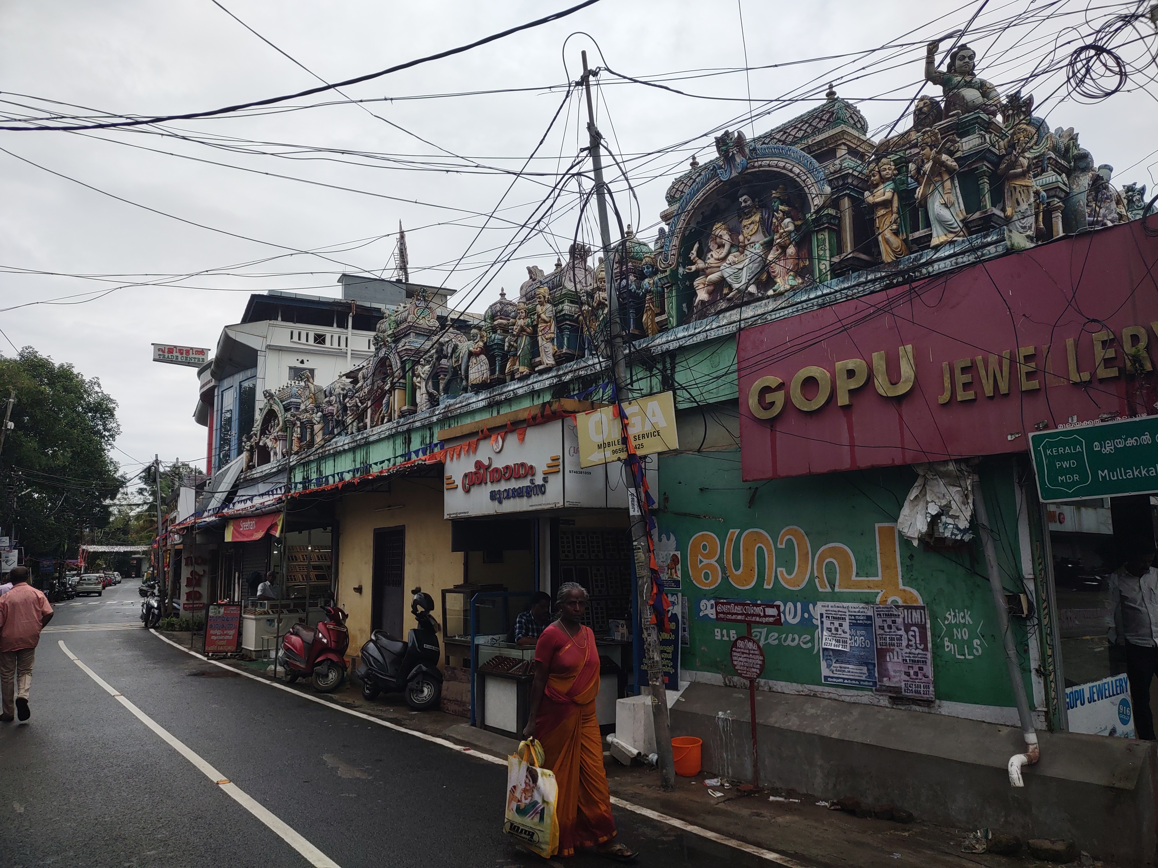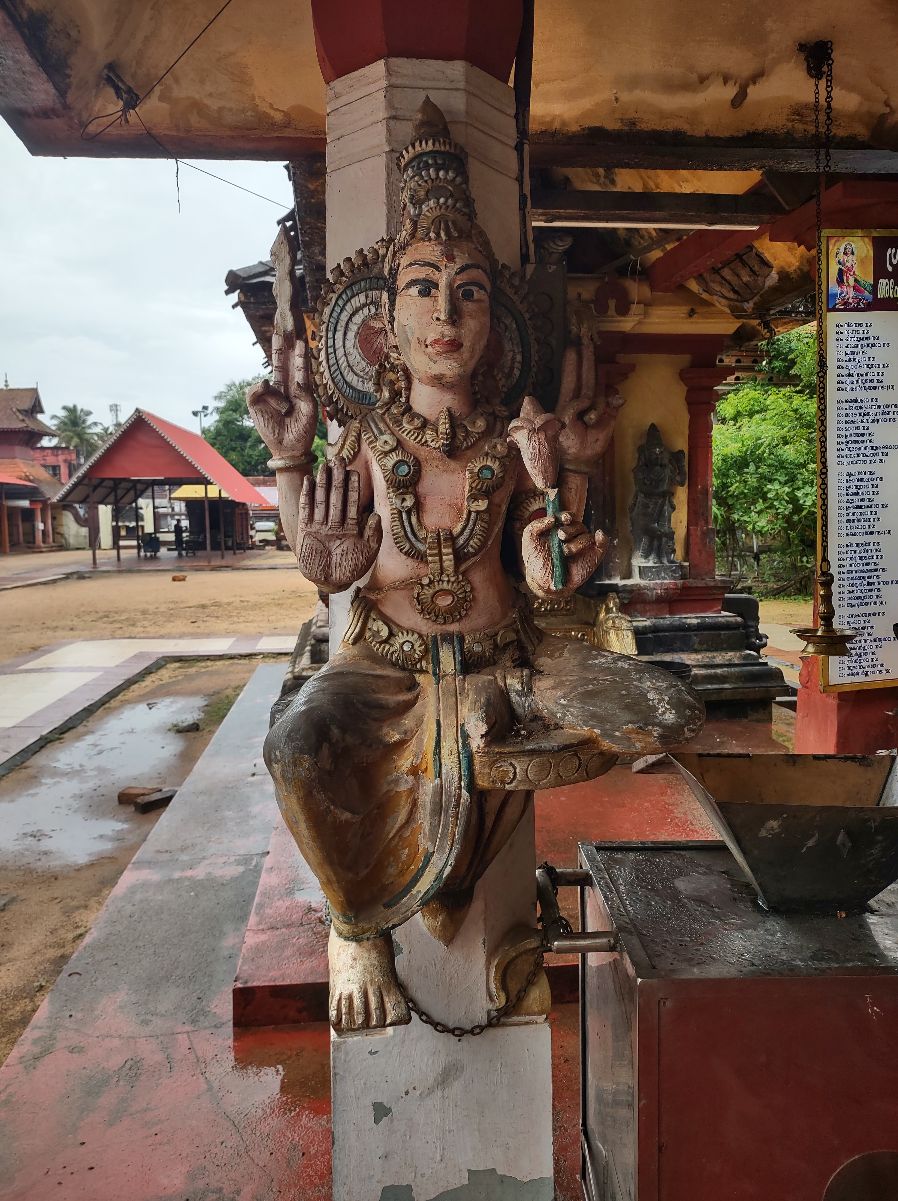 We also visited our first Hindu temple (presumably the first of many) in Alappuzha, the Mullakkal Temple which is dedicated to the goddess Durga, an aspect of the mother goddess, whom we expected to see again at the Durga Puja festival in Kolkata. This was my first time visiting a Hindu temple (Colleen had visited some Buddhist temples during her time in Sri Lanka in 2021) and I was honestly feeling a bit hesitant about the whole thing (there are a lot of rules you have to follow!).