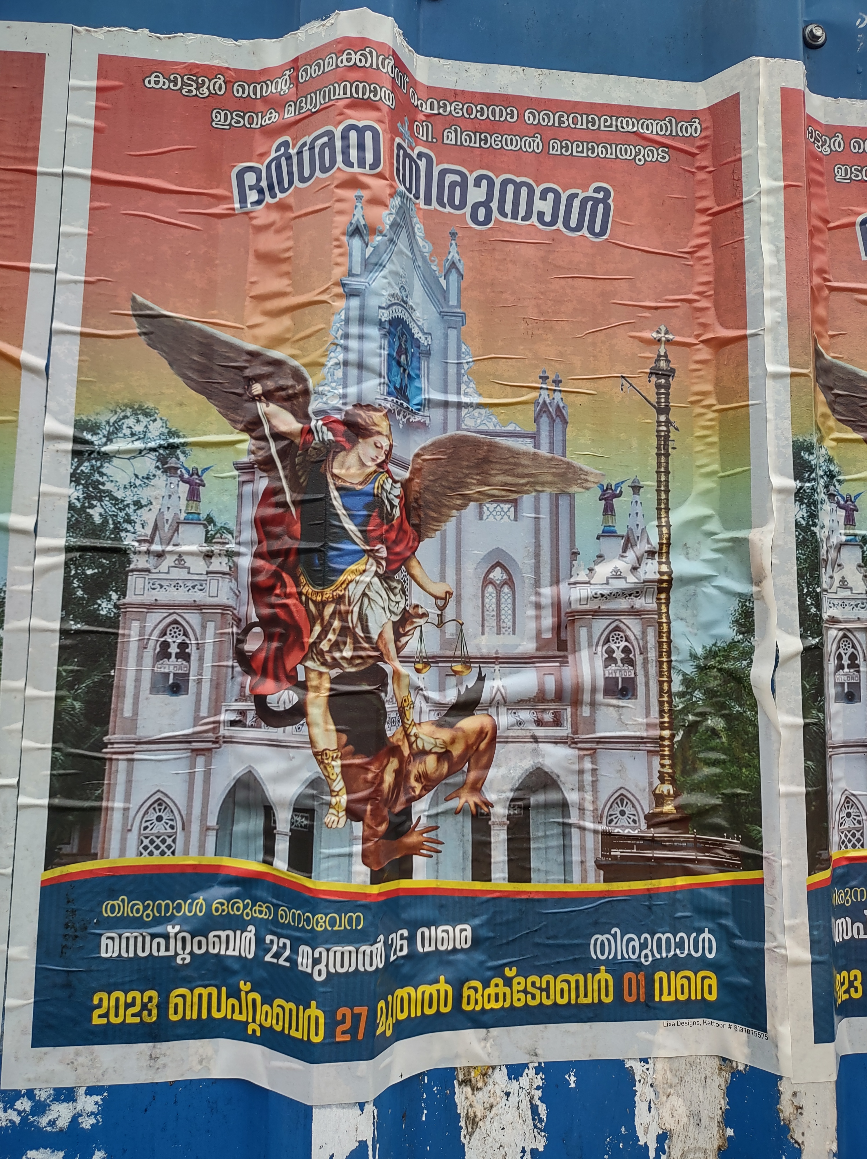 We were able to learn quite a bit about the practice of Christianity in India from Swapna and Binoy and, based on what we had already seen of the churches, were very curious to learn whether the practice of Christianity in India incorporated any of the rites and rituals of Hinduism. Although we didn’t attend mass at St. Augustine’s, Swapna and Binoy invited us to join them at an annual festival at St. Michael’s church in Kattor (a nearby village where Swapna grew up), which would be in celebration of St. Michael’s feast day.