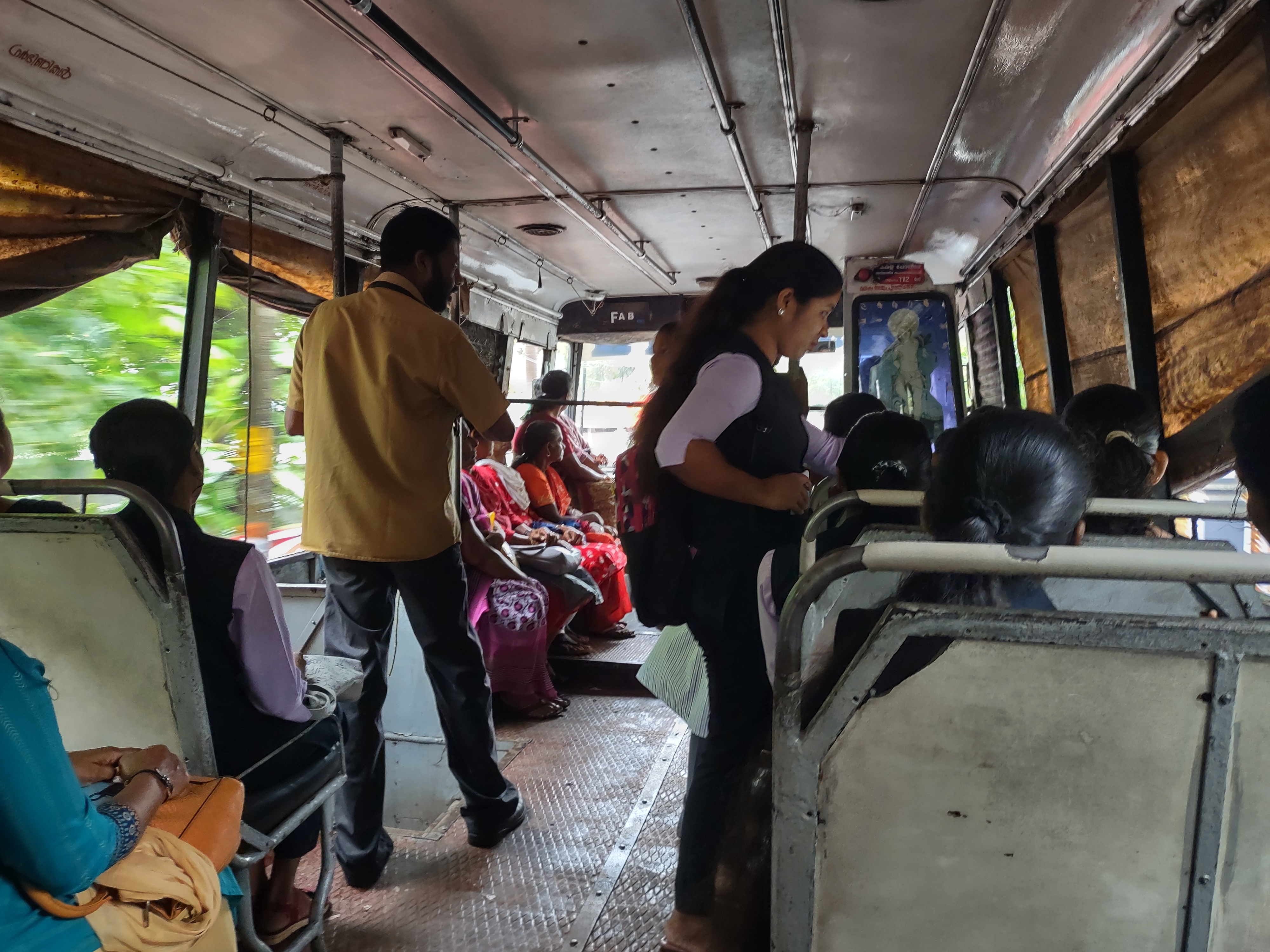 For our third trip into Alappuzha, we decided to go wild and take the local bus in and out. As we were getting on the bus near the end of the line in the mid-morning, the ride into town was uncrowded and quite pleasant. But we caught our return bus from the central bus station in Alappuzha during rush hour and so got a more realistic feel of public transport in India. (Sorry, I couldn’t get my hands to my pocket, so no photos of that leg!) Truth be told, it actually didn’t feel much different than the New York City subway during rush hour.