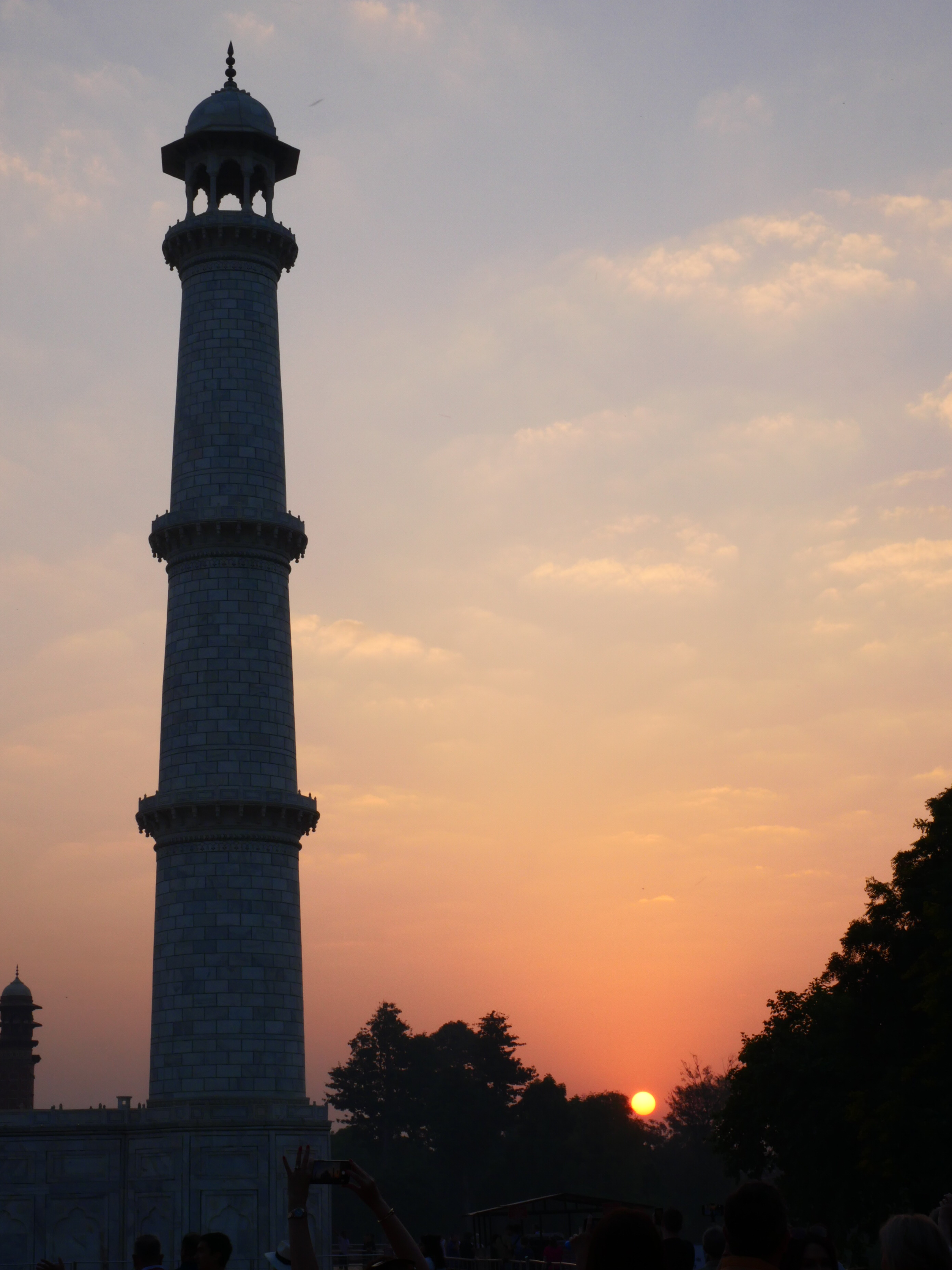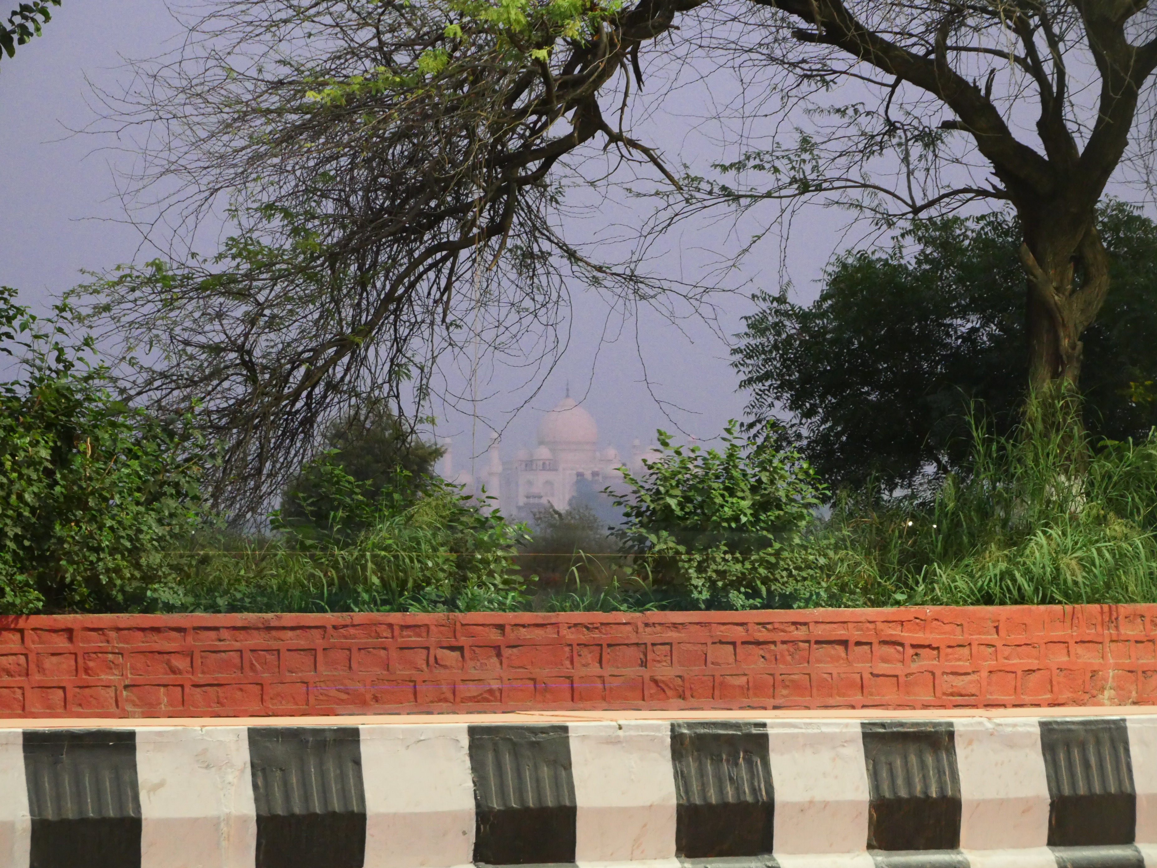 So, after checking in to our hotel, we met our guide (Tarmenda) and took an abbreviated evening tour to get oriented for the next day which would start very early. We drove to the Agra Fort, which was closed, and got a look of the fort and the tower where Shah Jahan was supposedly imprisoned until his death. Interestingly enough, we caught a glimpse through the trees of the Taj Mahal just up the river where we would find ourselves in just a few hours.