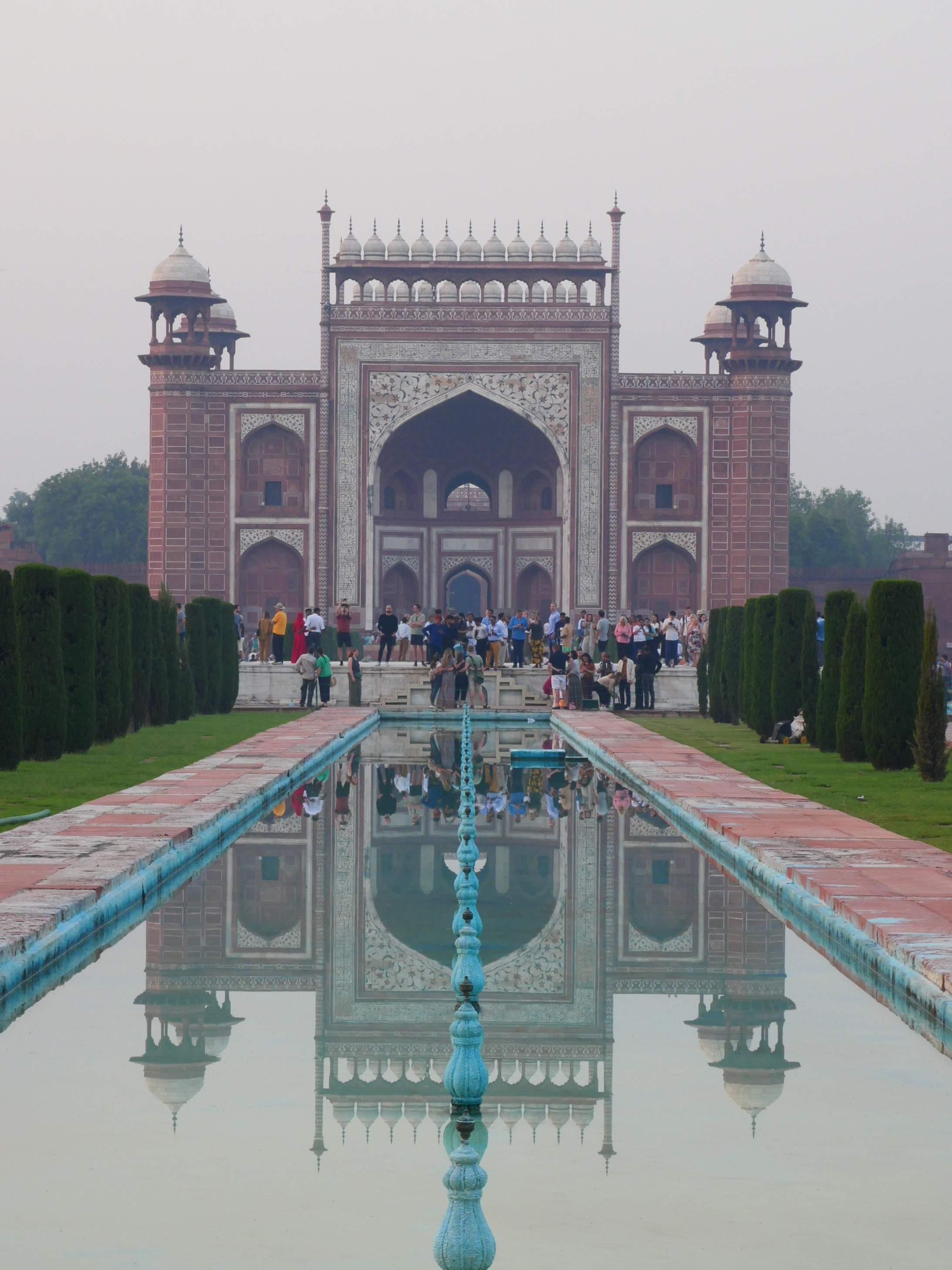While the Taj Mahal building itself is incredibly beautiful (really verging on surreal), its placement on the river and everything around it – the gatehouse and walls, the huge garden and reflecting pools, the ornate red temples which flank it – all serve to emphasize its massive scale and its pure and simple beauty.