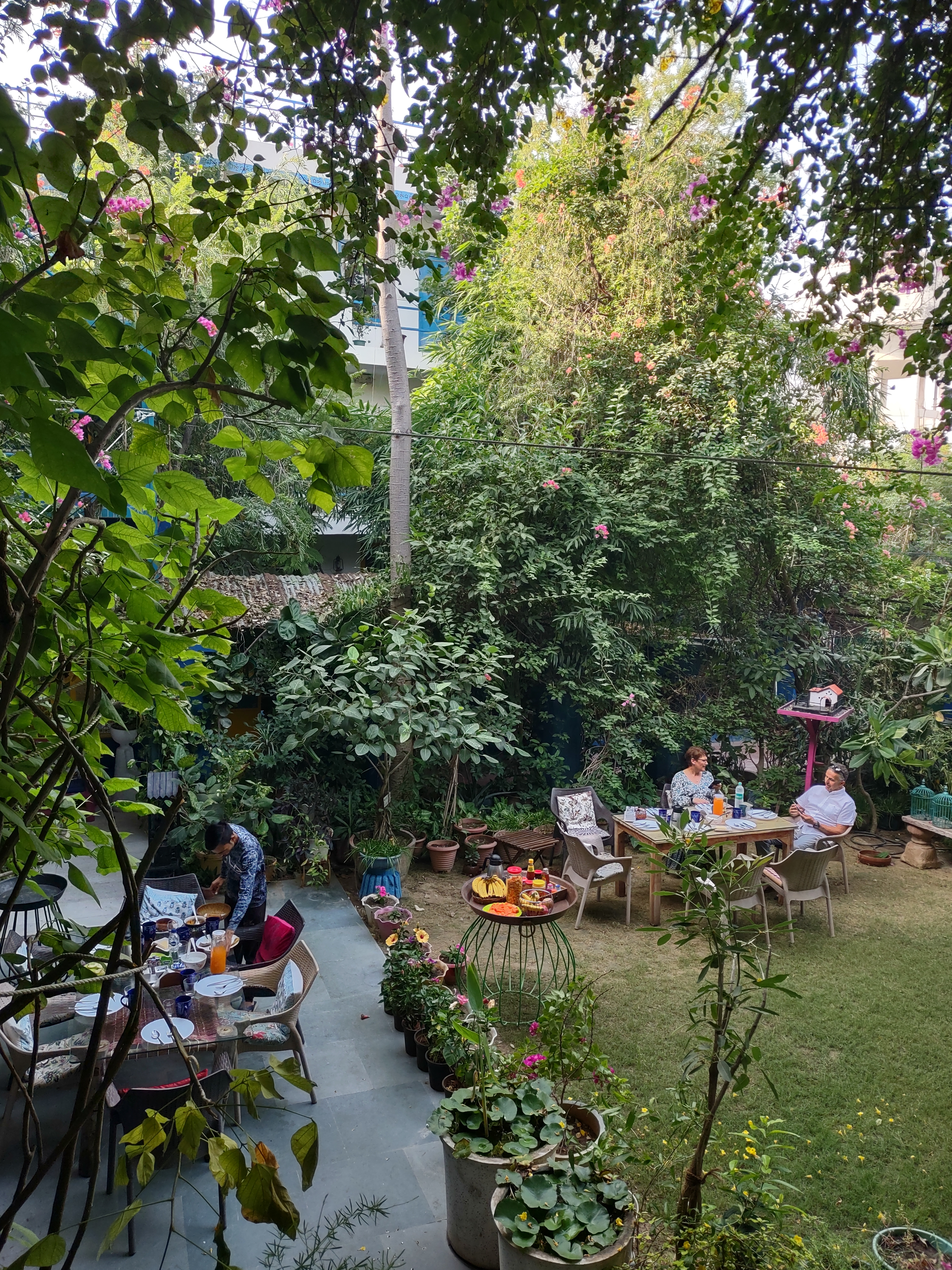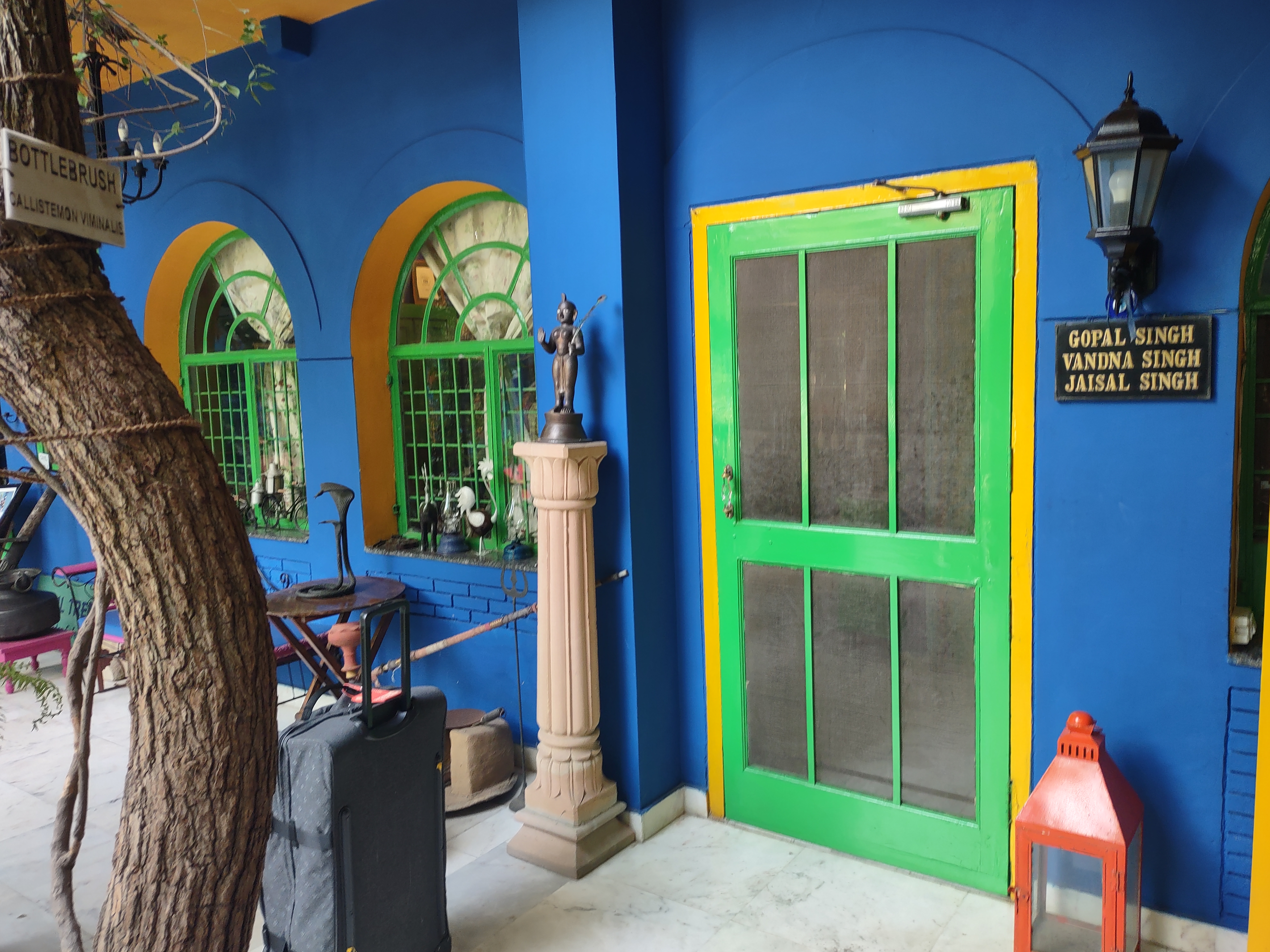 The Coral Tree was a sort of rambling funky bohemian kind of place with a nice garden and a color palette of strong primary colors accented by some interesting art work. Our room “Semal” (which means Silk) and where we spent very little time was spacious and clean with a large statue of Ganesh just outside keeping an eye on things. The hotel had a great on-site restaurant which was quite good. We had dinner there our first night (really great not to have to trudge back out!) as well as breakfast after visiting the Taj Mahal the next day (included in our room rate).