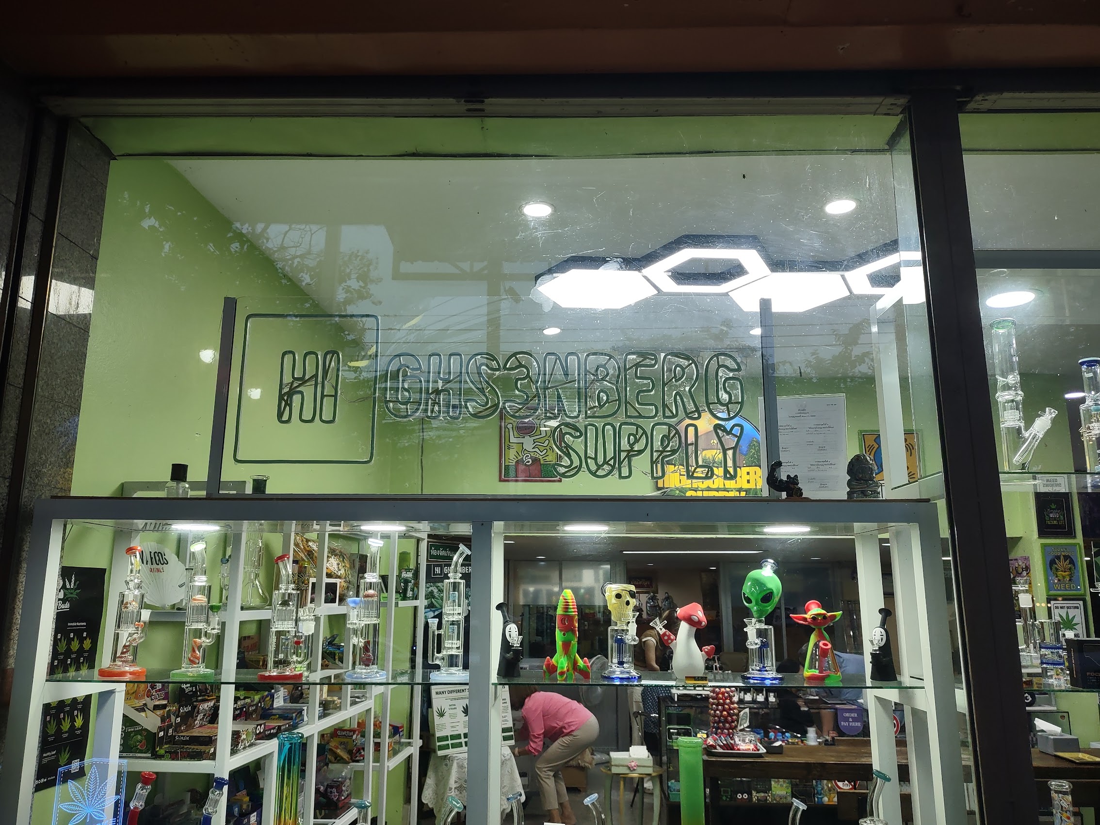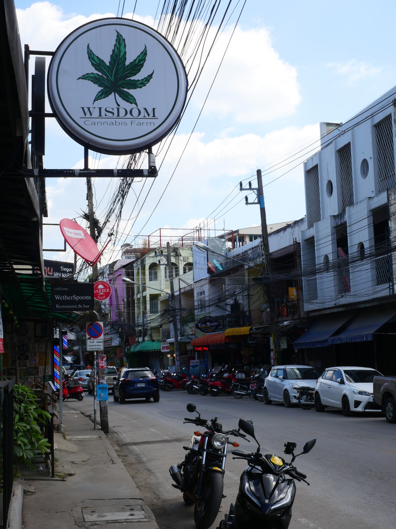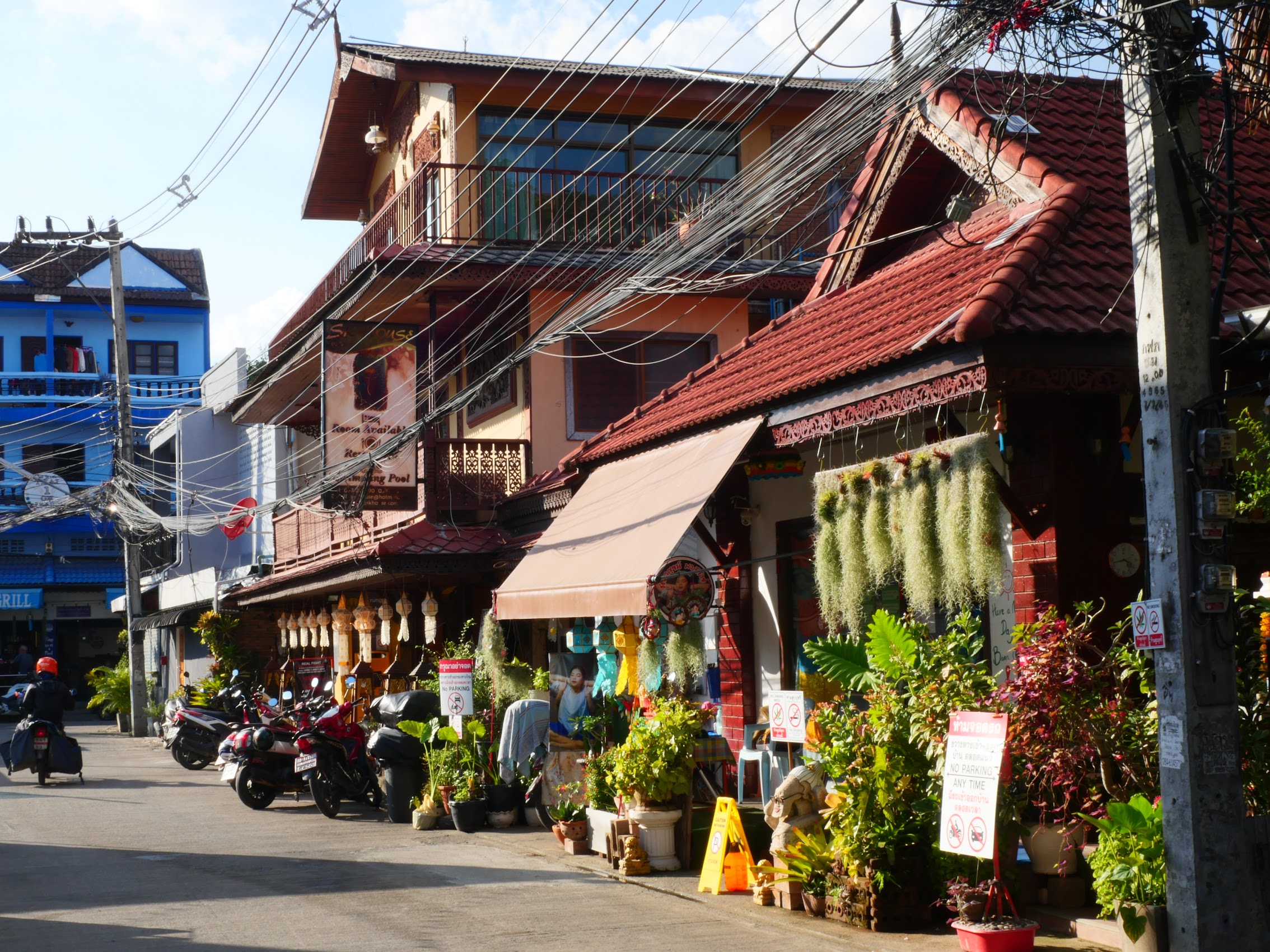 As we had seen elsewhere in Thailand, there were also a lot of marijuana shops which seemed to fit right in with the expat-bohemian-tourist vibe of the place. While some of the shops catered more toward cheap touristy items (“tchotchkes” as our friend Jirair would say), there were also a lot of shops with beautiful hand-crafted items, and we did our share of window and actual shopping. The mix of shops also included many of a more spiritual nature, many with a bent toward holistic or natural health and healing, as well as a good number of spas and yoga studios.