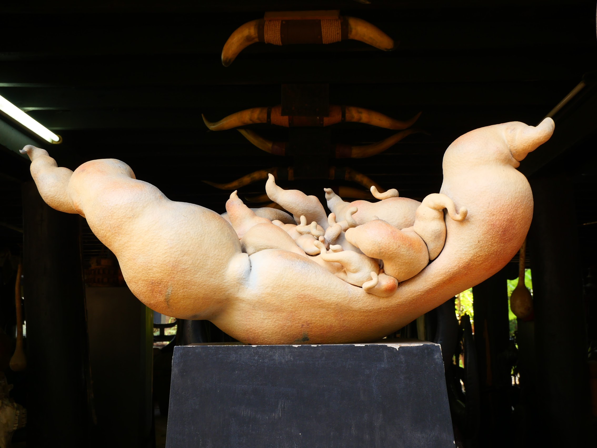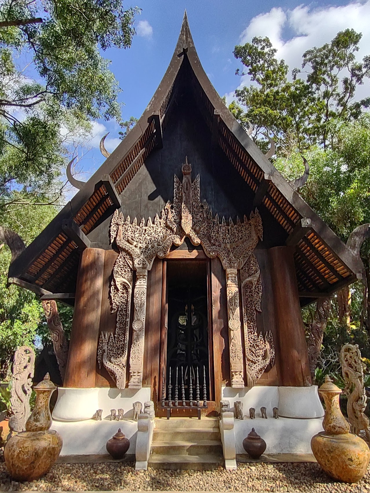 The last stop on our day trip was a place called the Ban Daam (Black House) Museum, a private art museum created by national artist Thawan Duchanee. The museum is in essence a small village of both traditional Thai and unconventional (at times verging on disturbing) structures, constructed over the last 40 years, which are furnished with and feature much of the artist’s unique wood carvings. As a body of work, pretty amazing, but also a bit bizarre (if not creepy) at times.