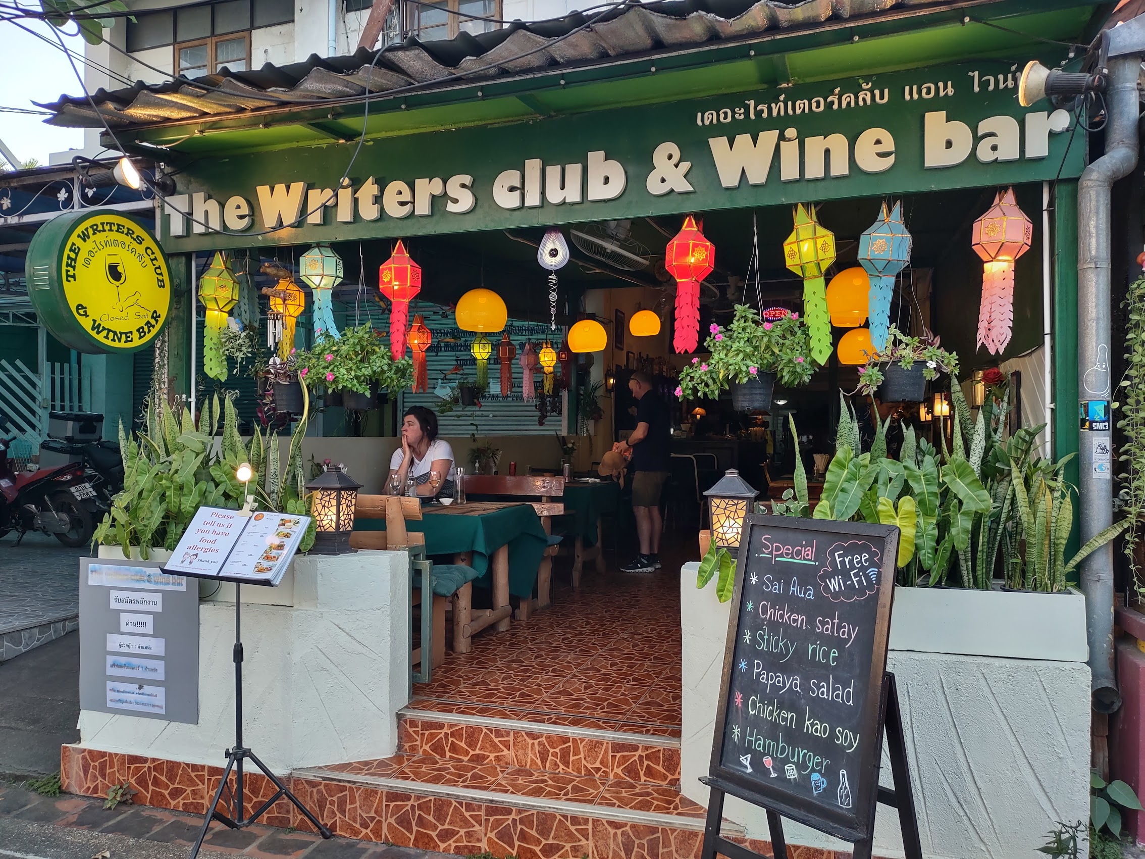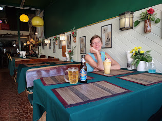 We did find a couple of noteworthy cafes and restaurants along the way. We stopped for a drink and a bite one day at an interesting place called the Writer’s Club and Wine Bar which, as the name might suggest, had the feel of an ex-pat hangout. Better yet was the Old City Inn next door to it which had a limited but nice craft beer menu (but, to Colleen’s disappointment, no sour ales). Both were located on Rachadamnoen Road, the central east-west street through the old city and proved to be excellent places to sit and people watch.