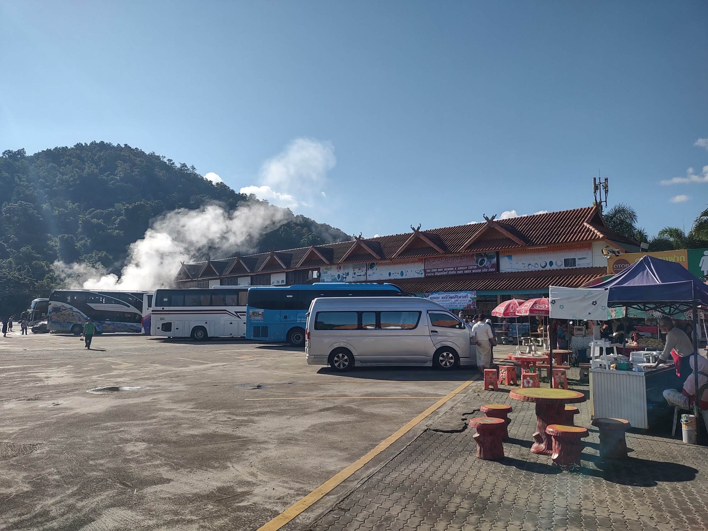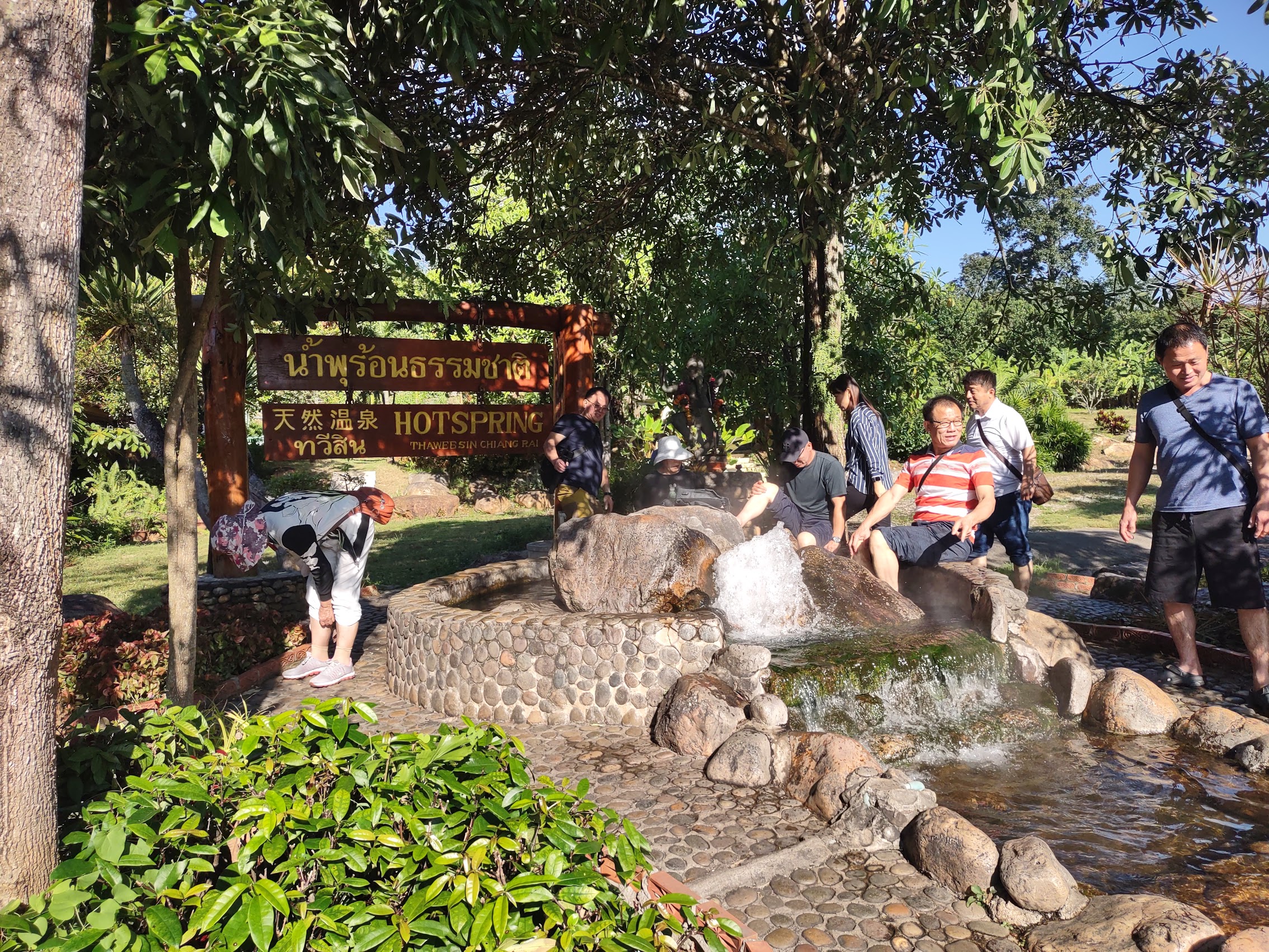 We booked a day trip to Mueang Chiang Rai, the northernmost major city in Thailand, about 3 hours northeast of Chiang Mai. Although long, the ride into the country was beautiful. Along the way we stopped at some hot springs and stopped to dip our feet in some very hot water (Tip: Go for the pools furthest away from the hot spring!)