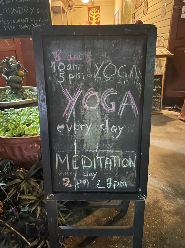 I’m discovering that it is “feast or famine” with yoga. So much has happened in the last two weeks including such a fun and interesting week with our friends from home and some time recovering from what was likely Covid, but yoga had not happened. So, upon arriving in Chiang Mai I identified at least one nearby place that advertised daily yoga classes on their rooftop. We scouted it out our first night as we walked around and I headed in for the 8am class the following morning at the Bodhi Tree.