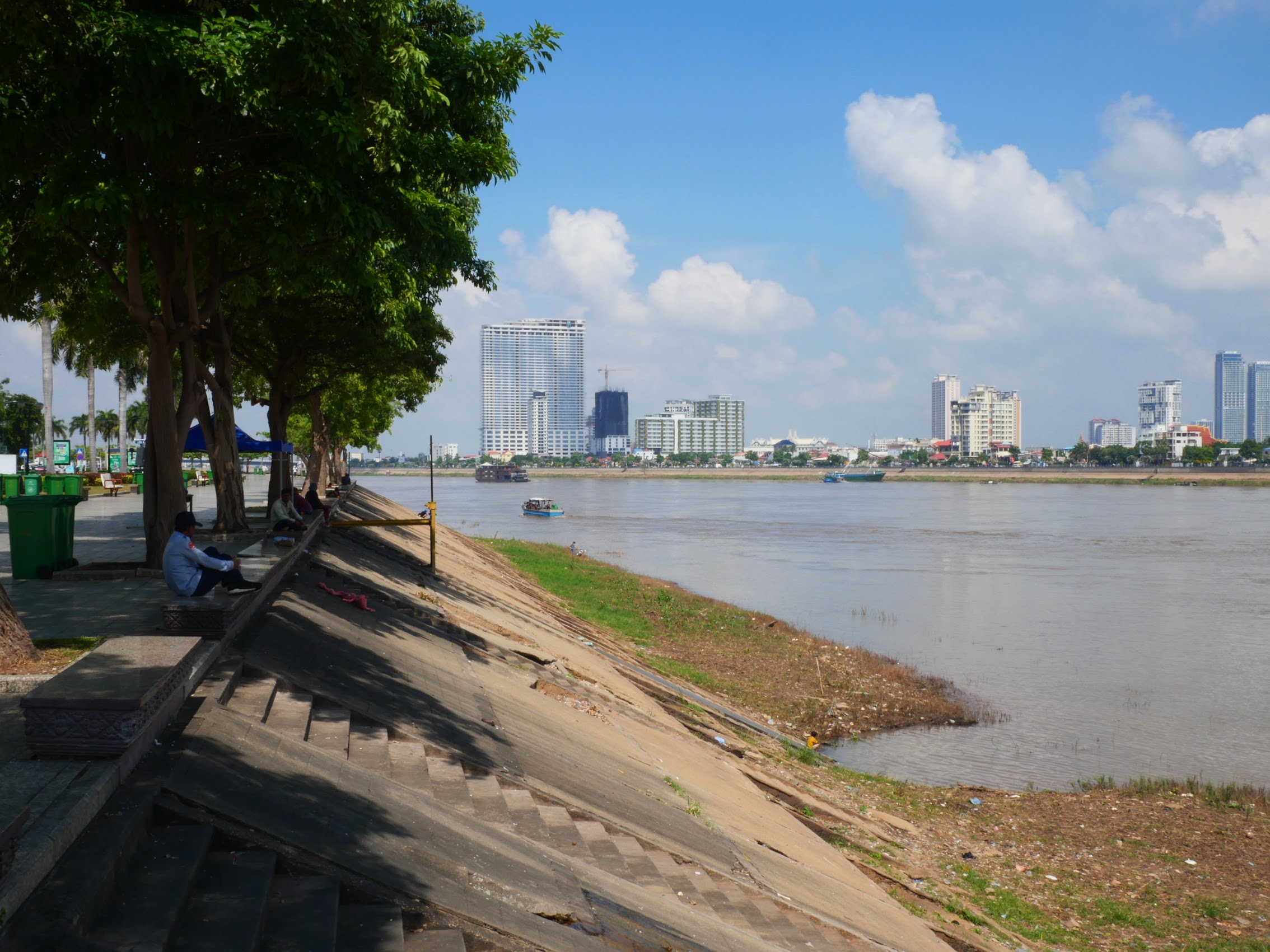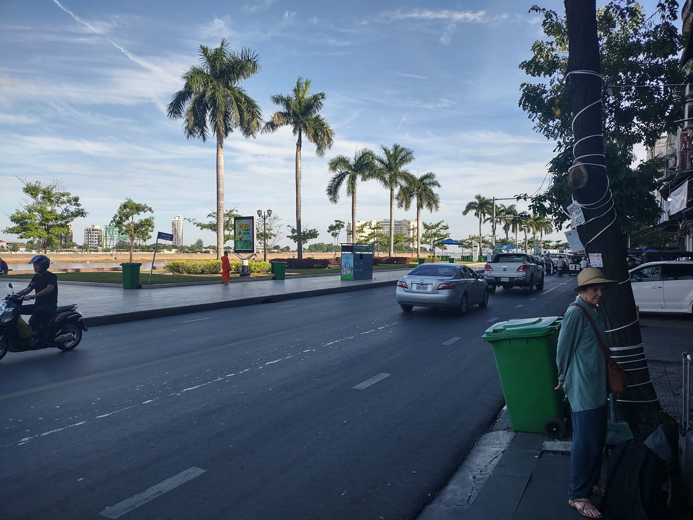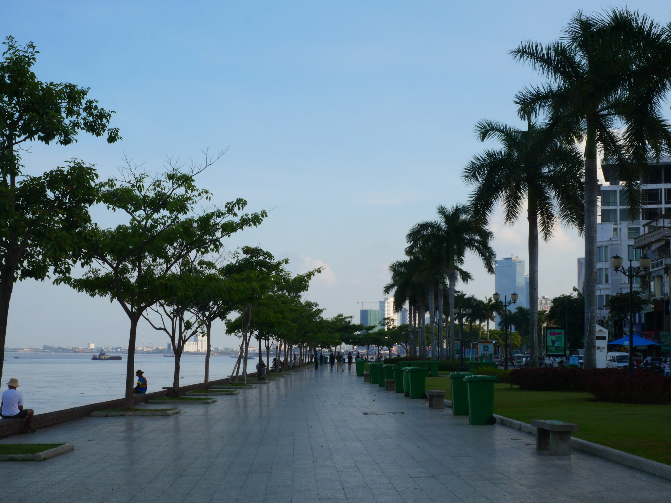 As we had arrived in the afternoon and would only be in Phnom Penh for three days, we headed out to explore the neighborhood around our place. We started south along Preah Sisowath Quay, which is a great walking street with the Tonle River and the Sisowath River Park running down one side and an eclectic assemblage of old and new buildings running down the other side, a haphazard mix of small shops, businesses, restaurants, and apartments.