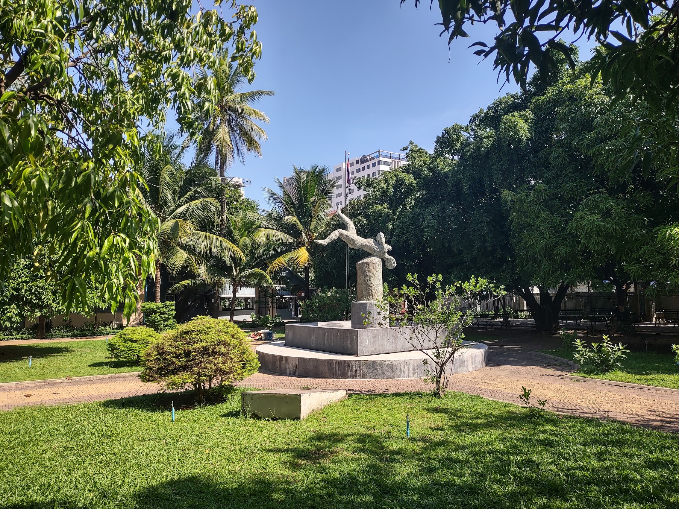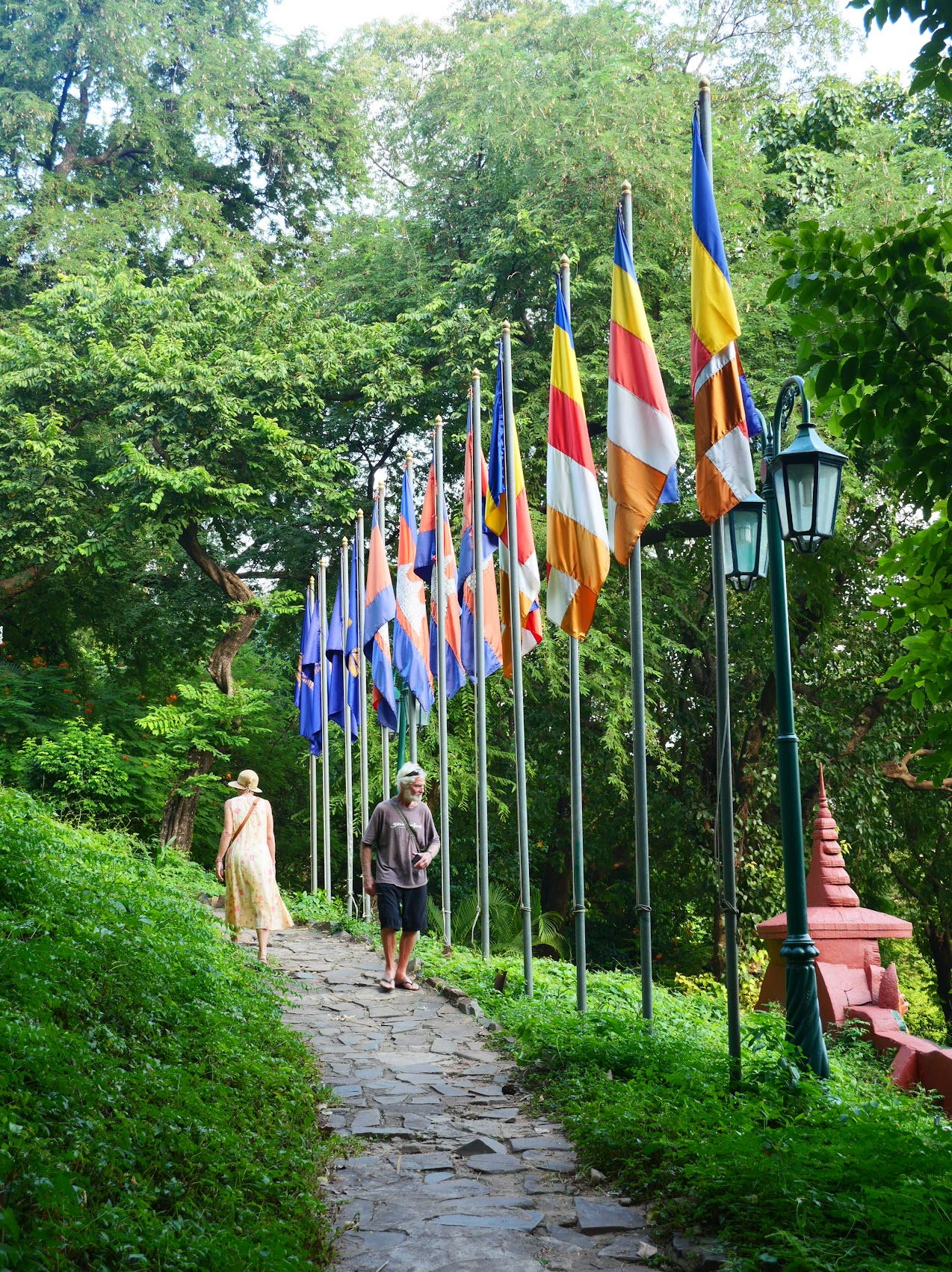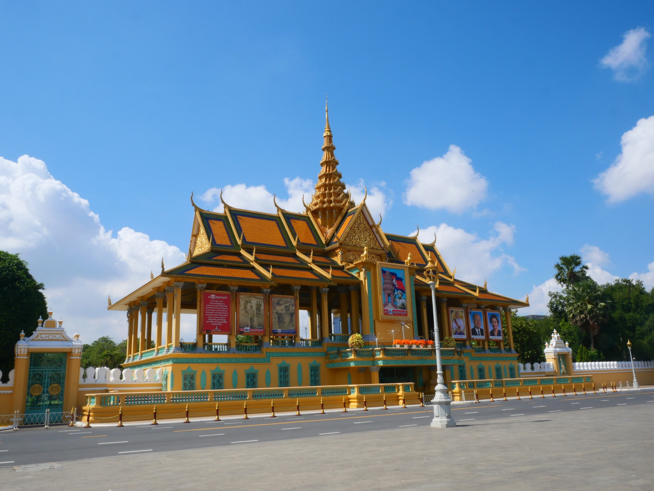 We continued south to the Royal Palace which was, unfortunately, closed, but everyone assured us that it would be open later in the day. (From various YouTube videos we have viewed, this appears to be the perennial state of the Royal Palace which is ostensibly supposed to be open to the public.) Undeterred, we saw what we could from beyond the gates and strolled through the large public events plaza and pavilions which extend from the Palace to the river.