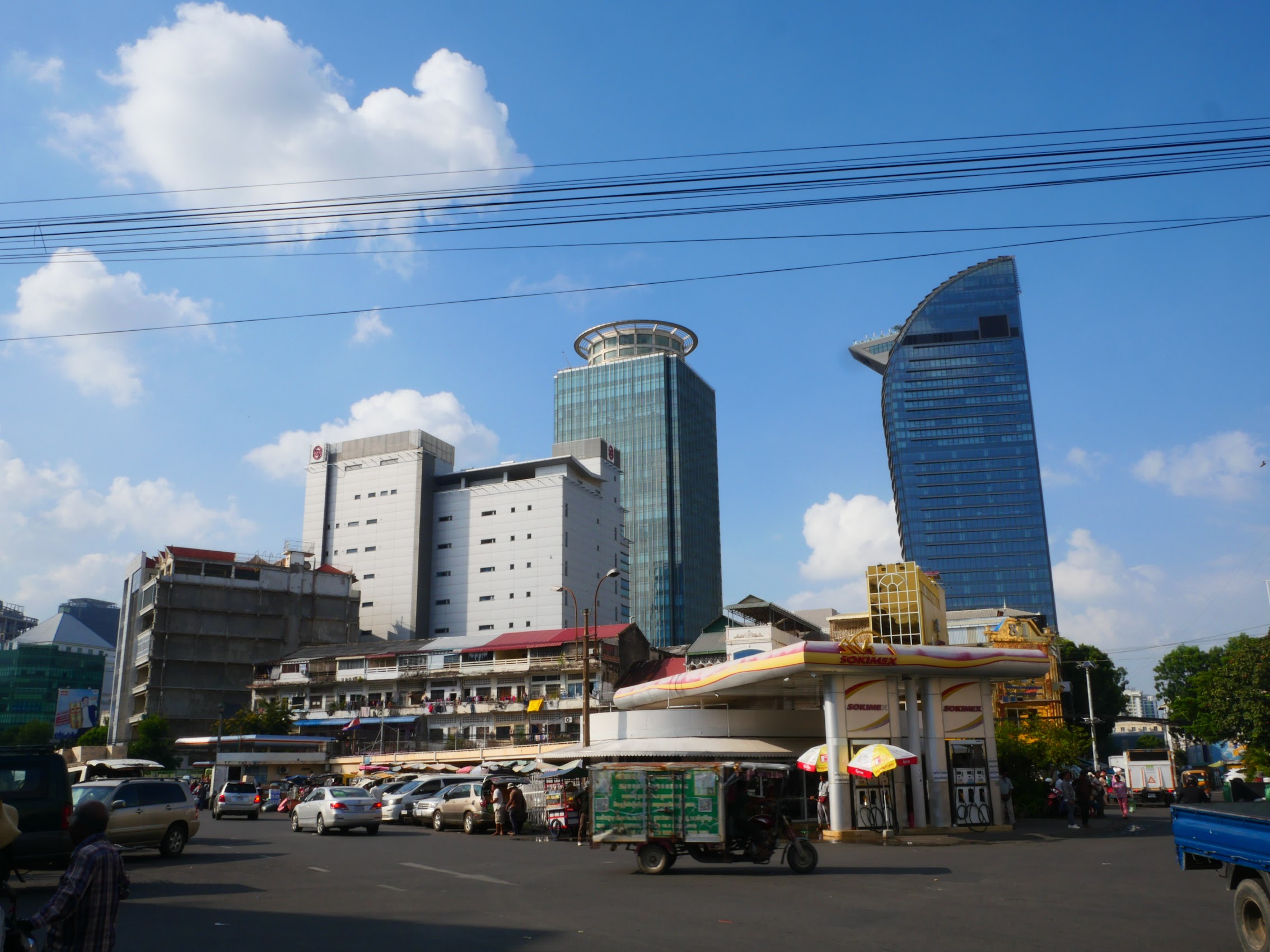 From the Royal Palace, we continued south and west to the Independence Monument, erected in 1958 to commemorate Cambodia’s independence from France in 1953. The Monument itself was a little underwhelming, but, when viewed with the modern high-rise towers of south Phnom Penh in the background, it is a pretty spectacular site.